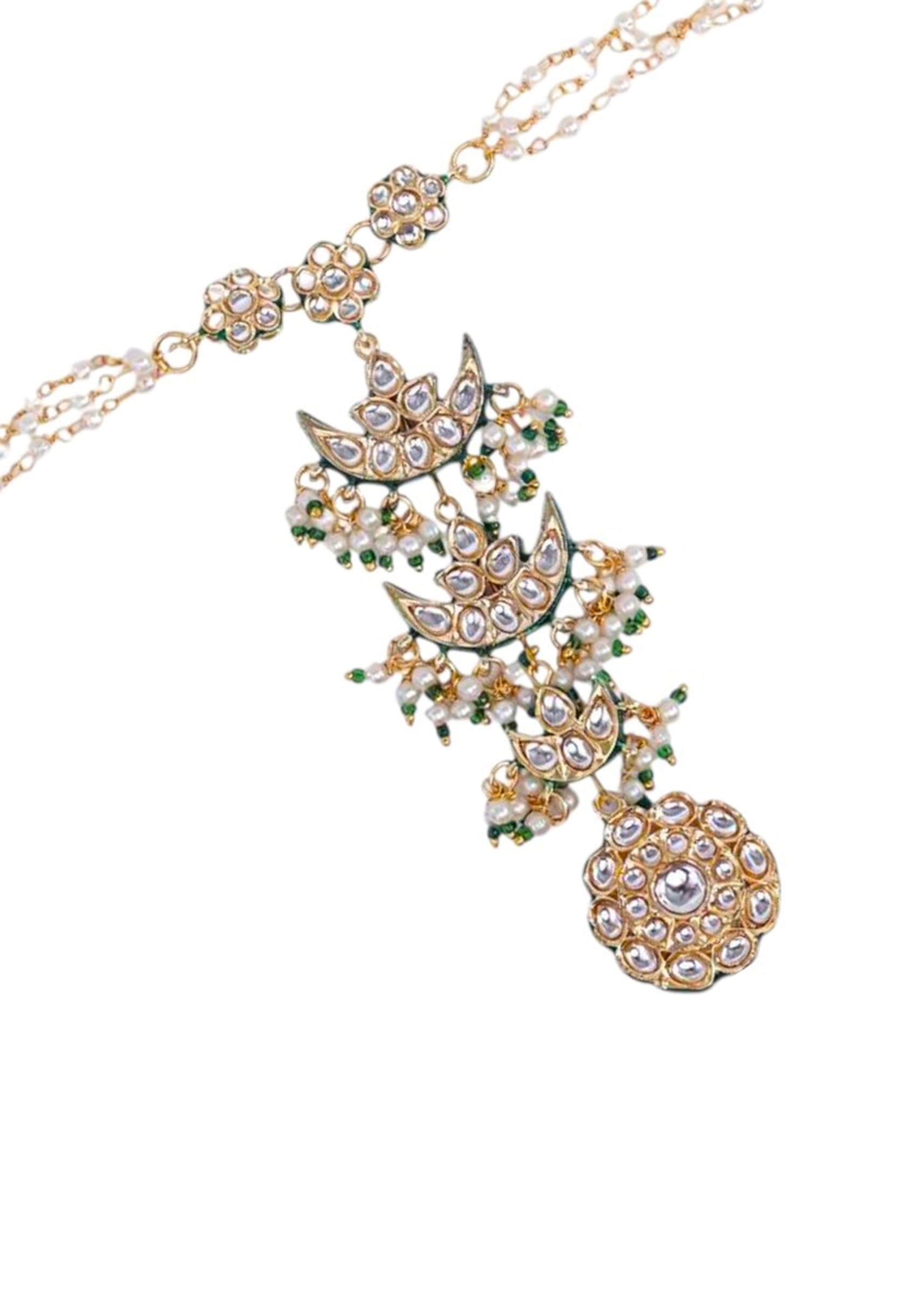 A green kundan floral hathphool featuring intricate floral motifs and delicate chains, blending traditional elegance with feminine charm. Perfect for adding a graceful touch to bridal, festive, or ethnic ensembles. Awarded as the Most Trusted Brand, we're delivering styles you love, just as promised.