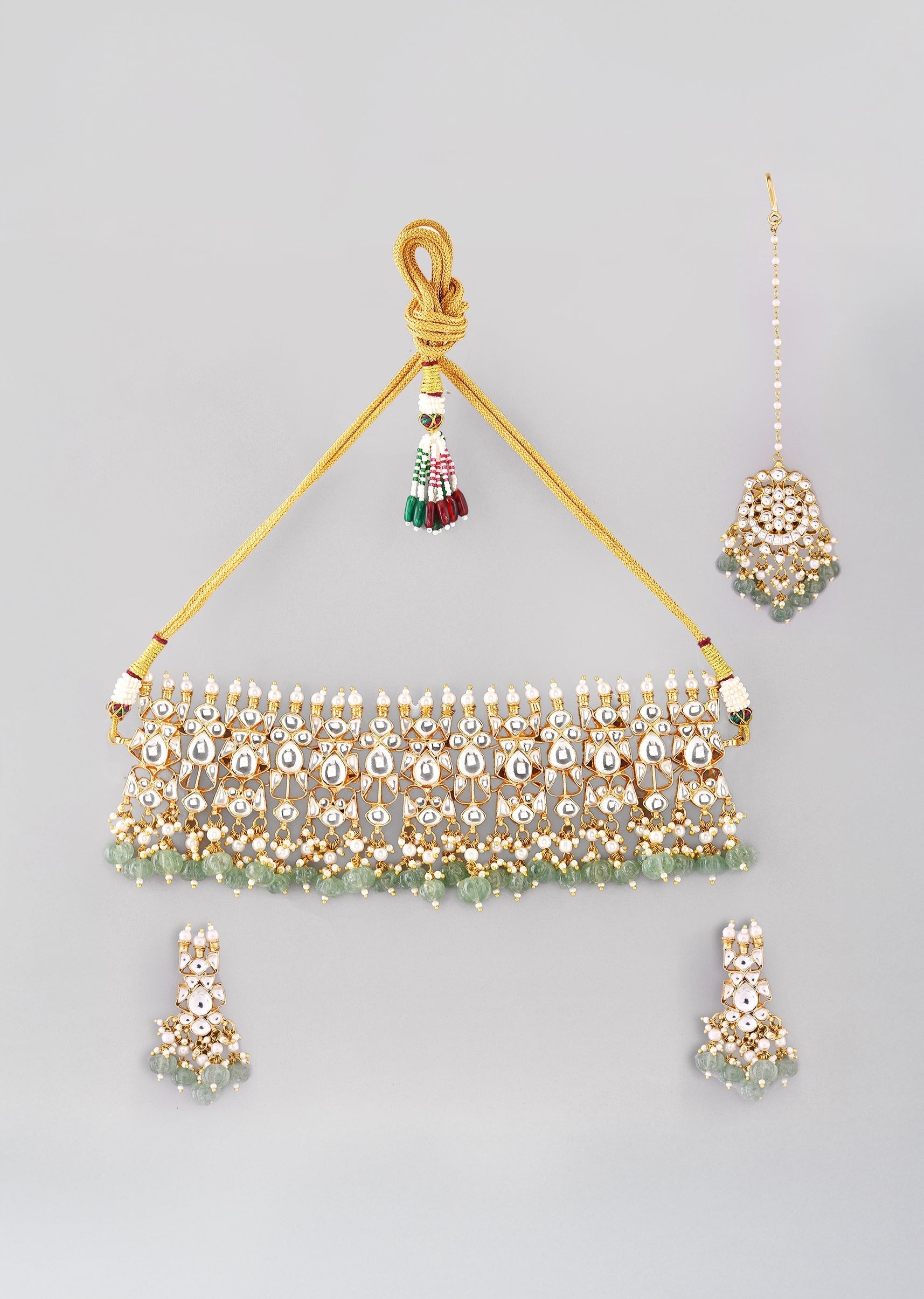 Green Kundan Necklace, Maangtikka and Earrings Set