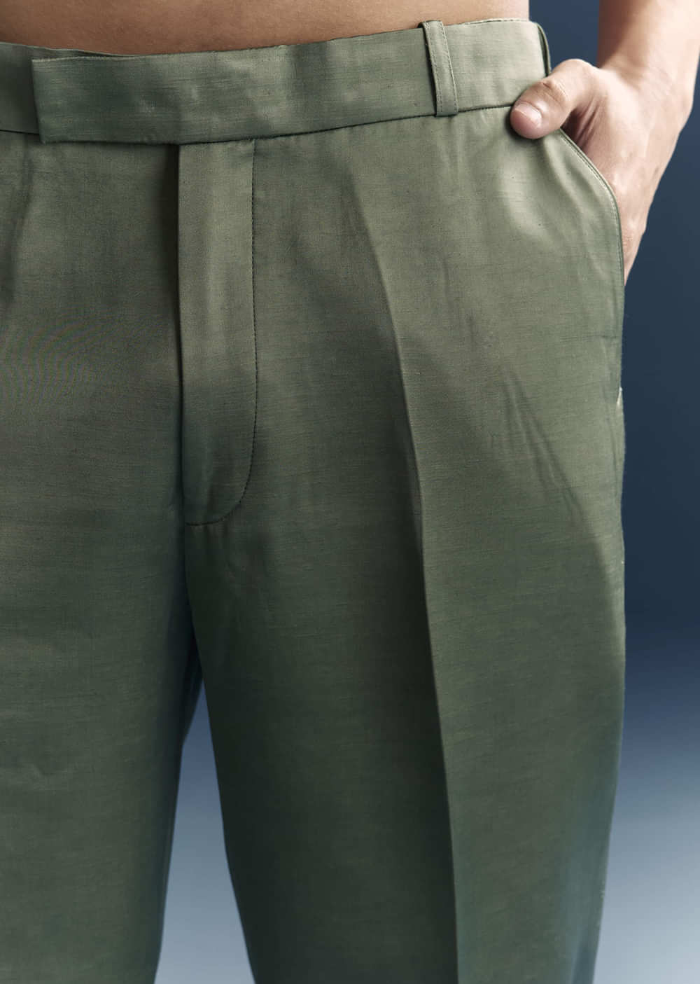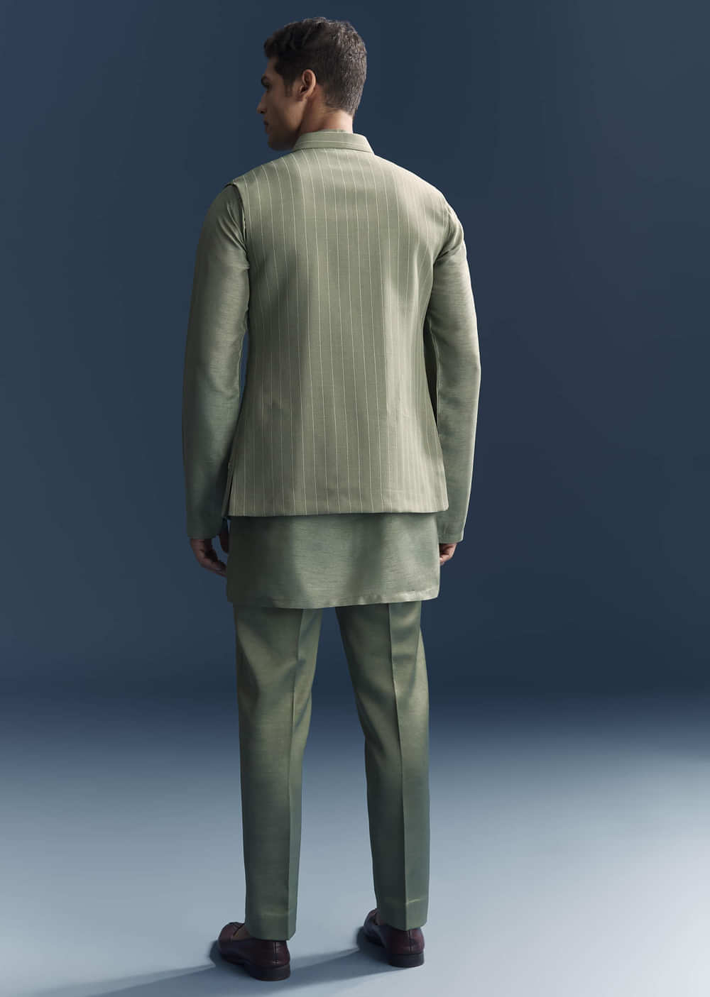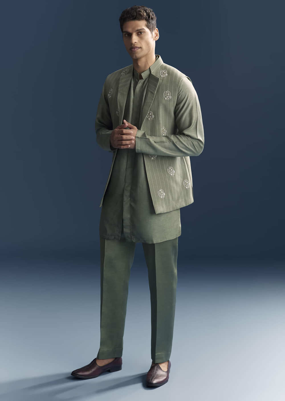 Green Kurta Jacket Set For Men With Hand Embroidery