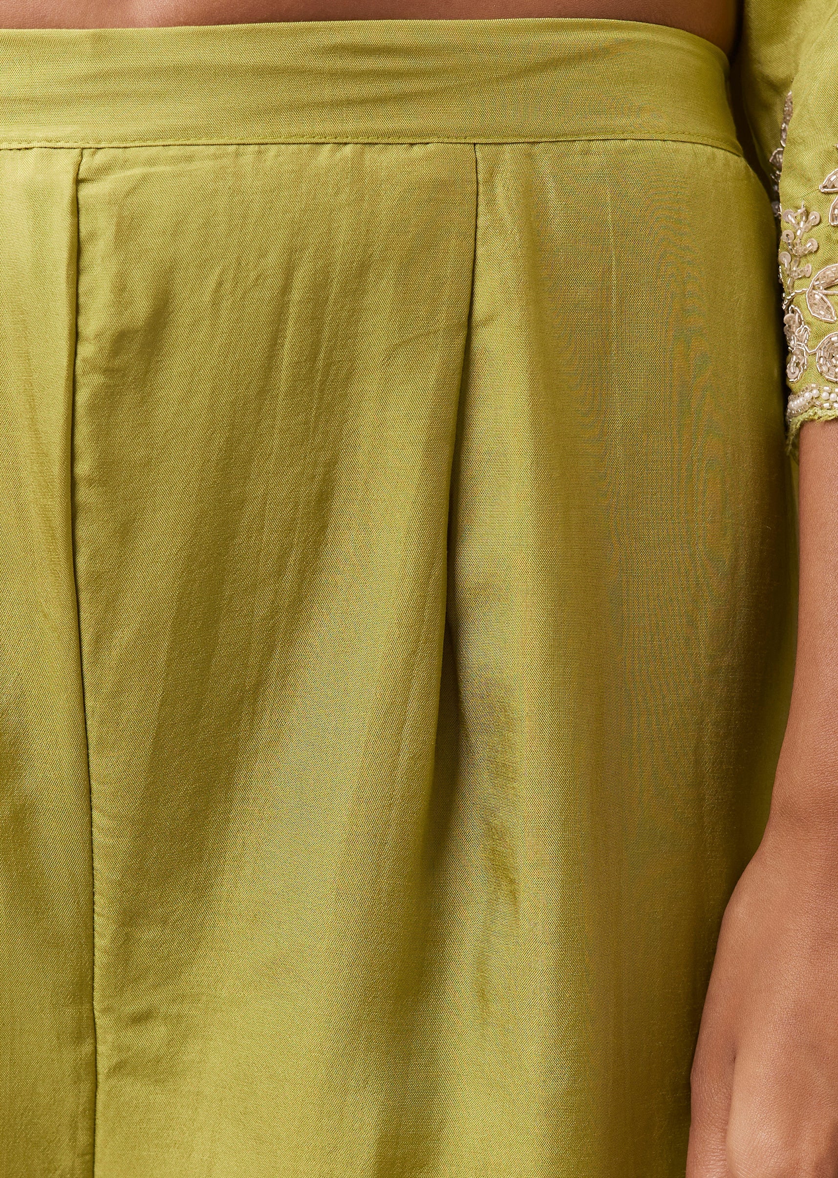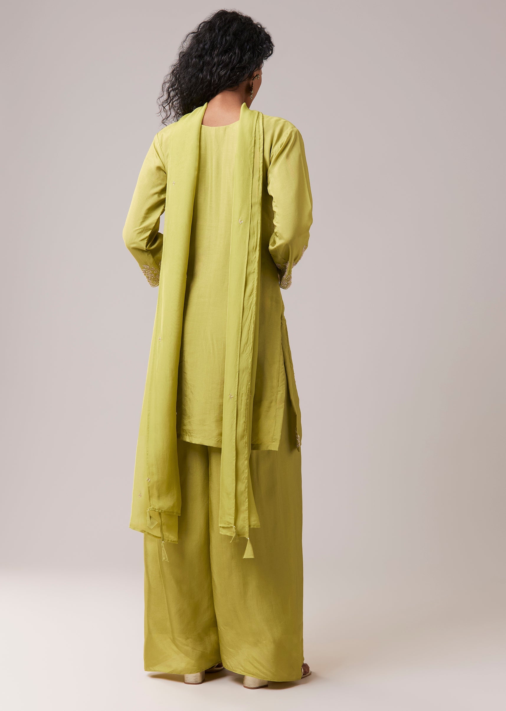 Green Kurta Palazzo Set in Silk with Cutdana Work