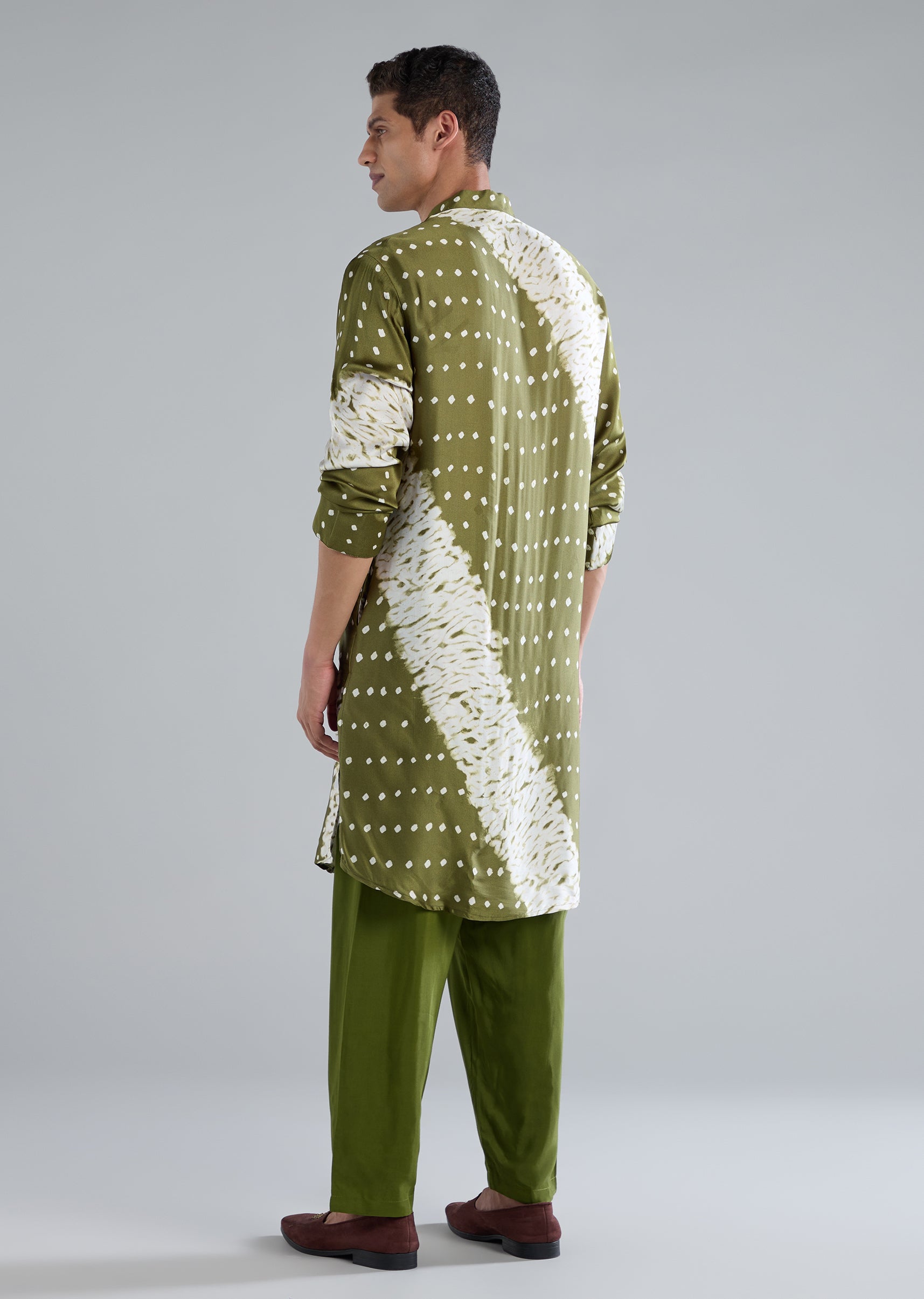 Green Kurta Set With Handmade Bandhani And Shibori Prints