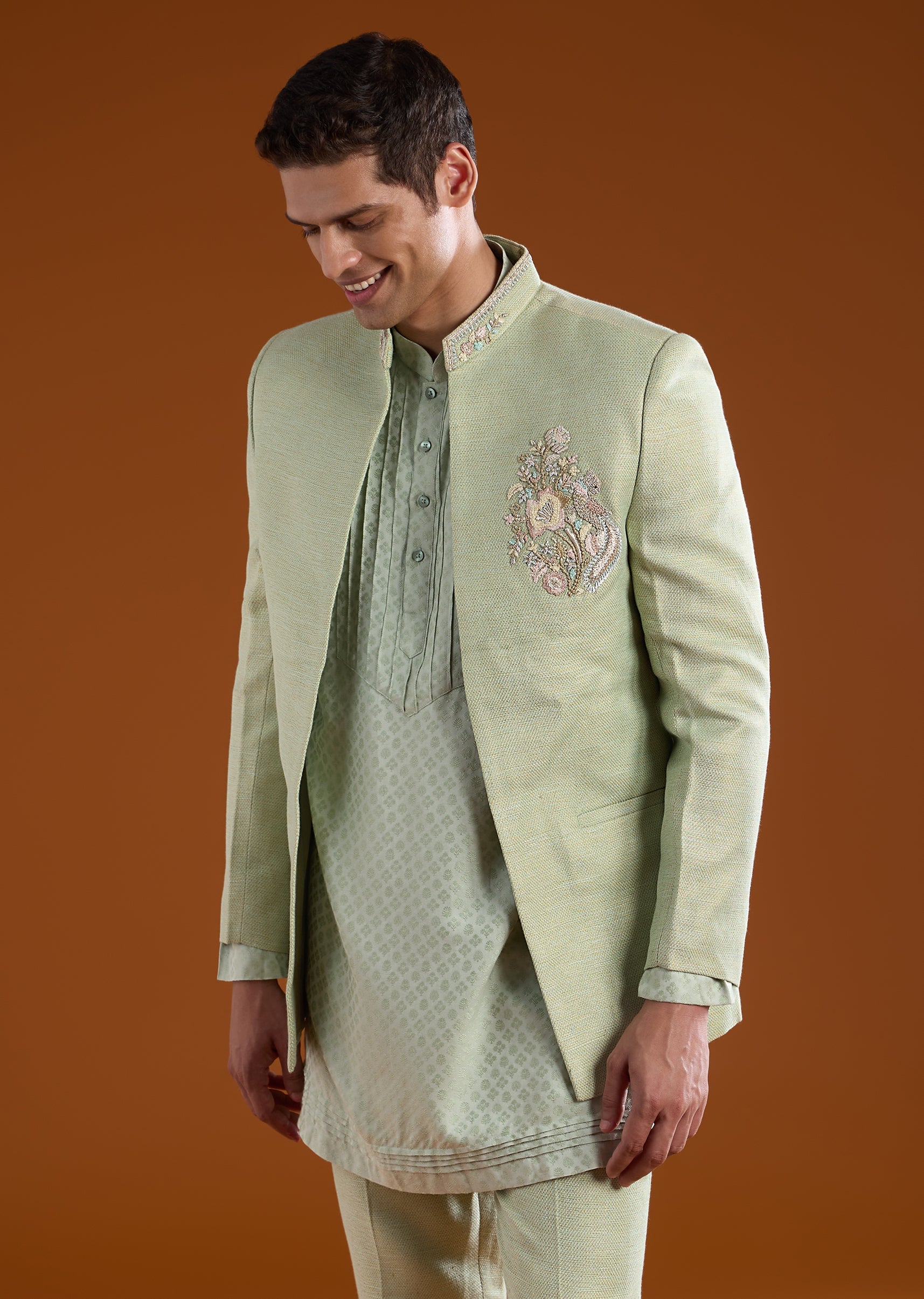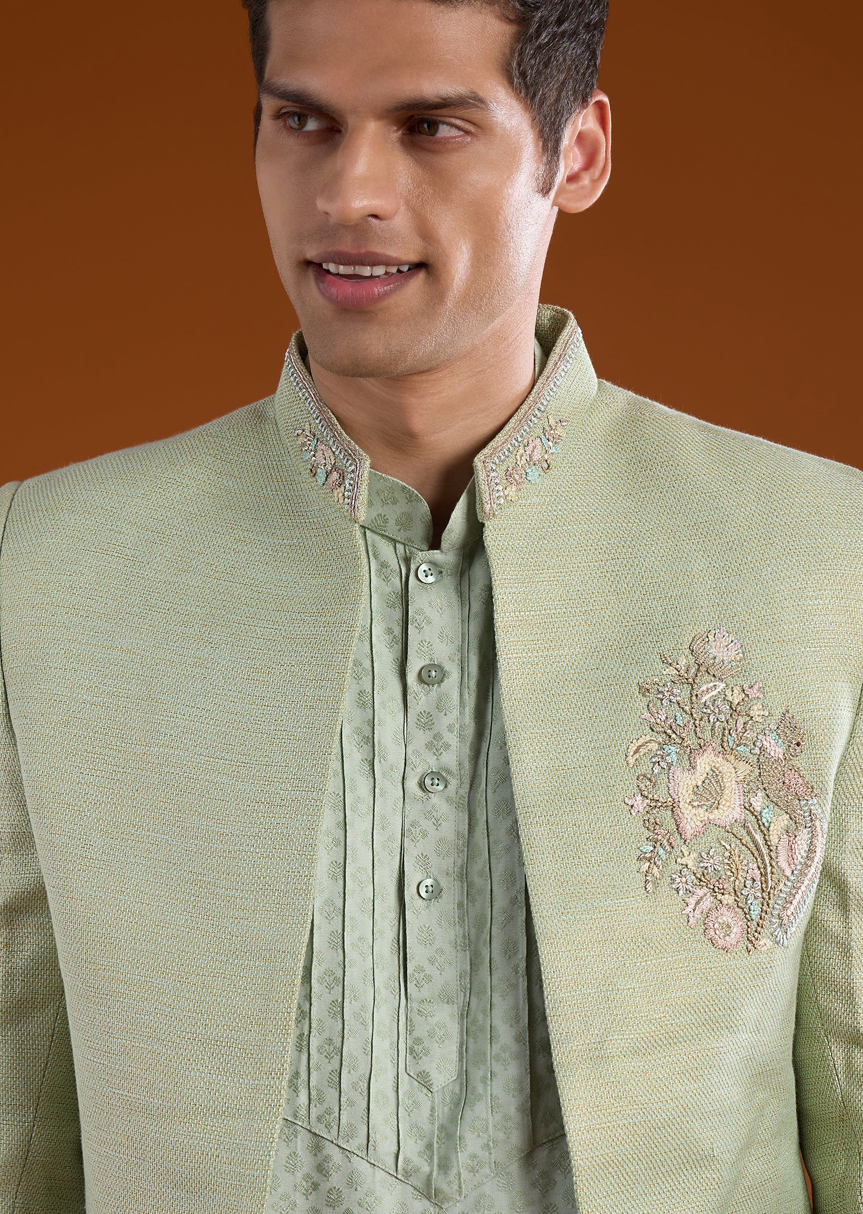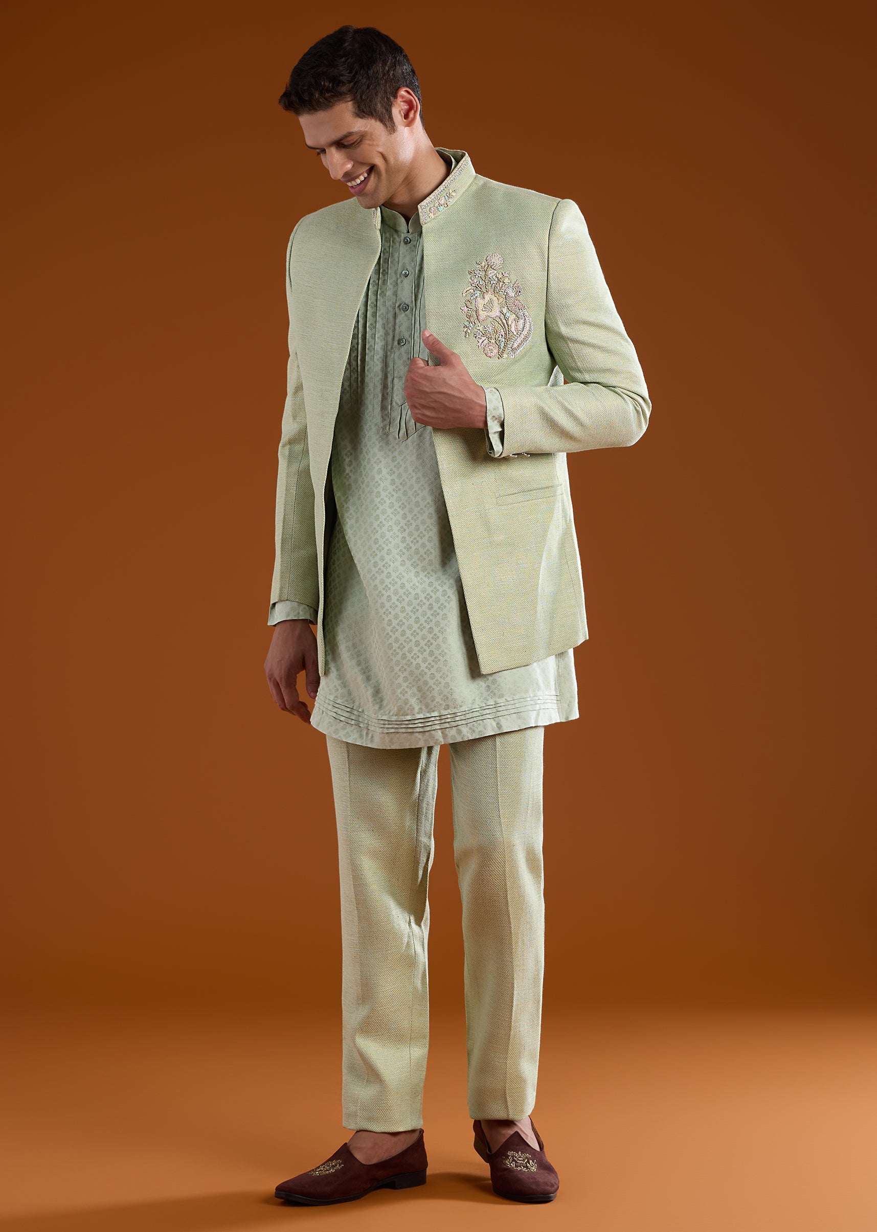Green Matka silk and Embroidered Jodhpuri Kurta Sets