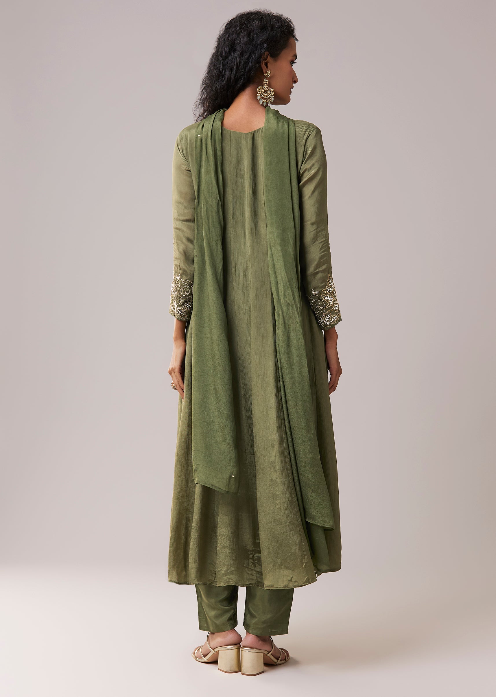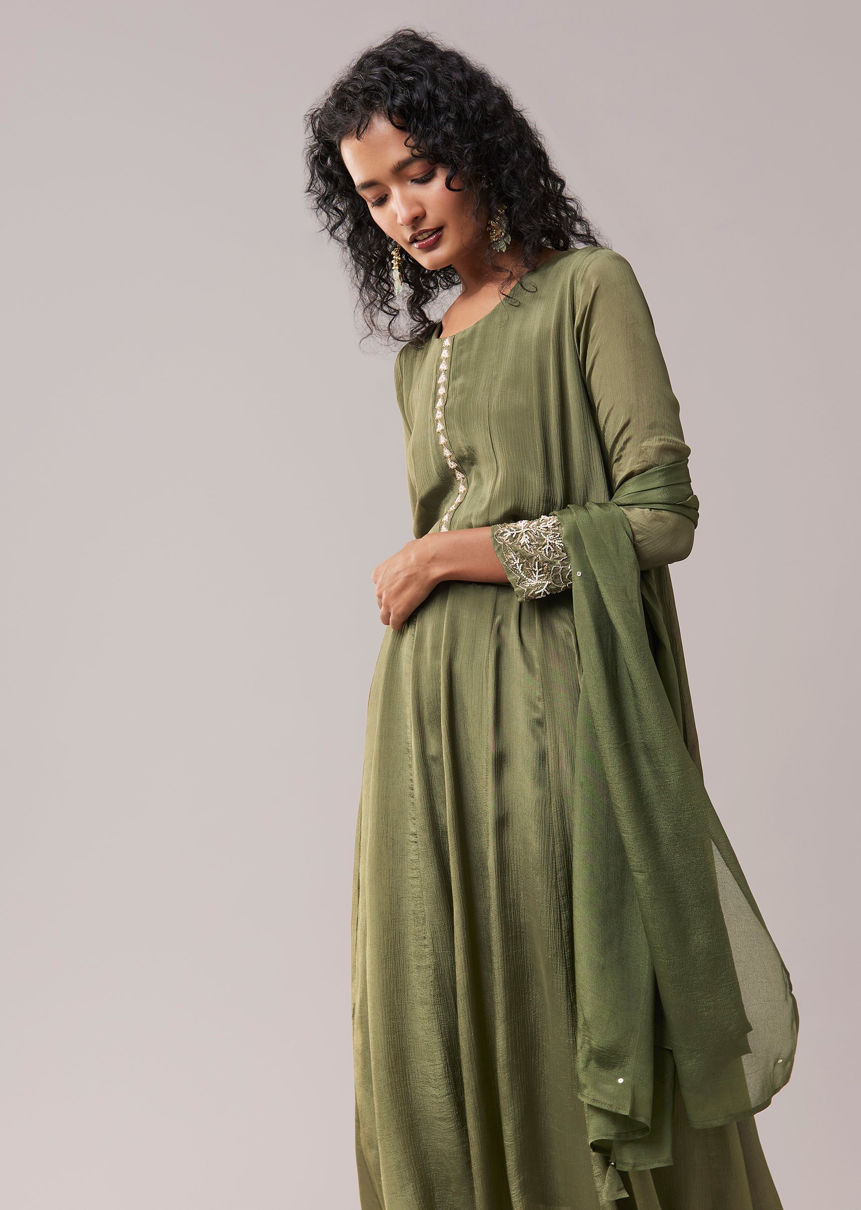Green Moti Work Silk Embroidered Anarkali Set