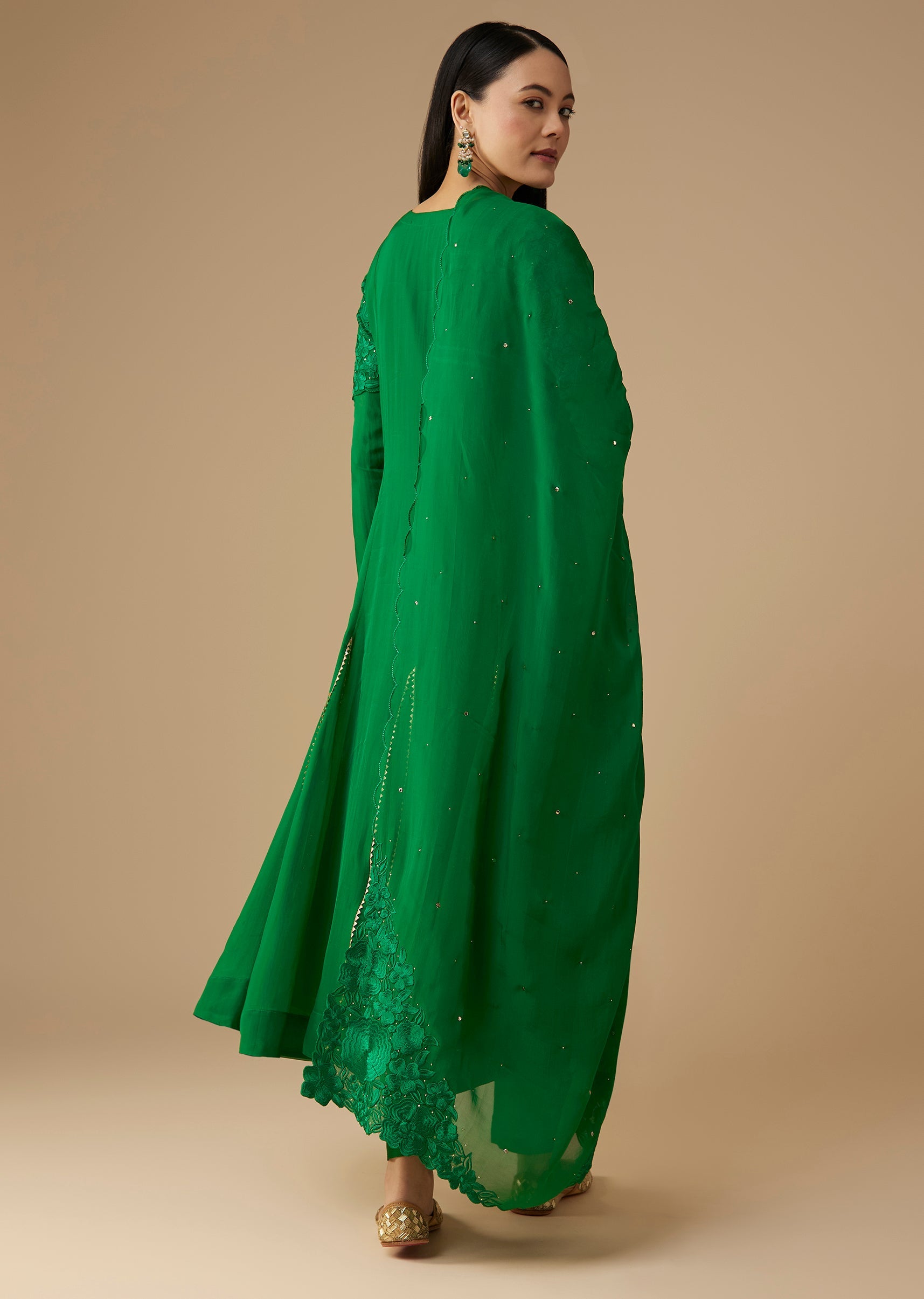 Green Mukaish Work Anarkali Set