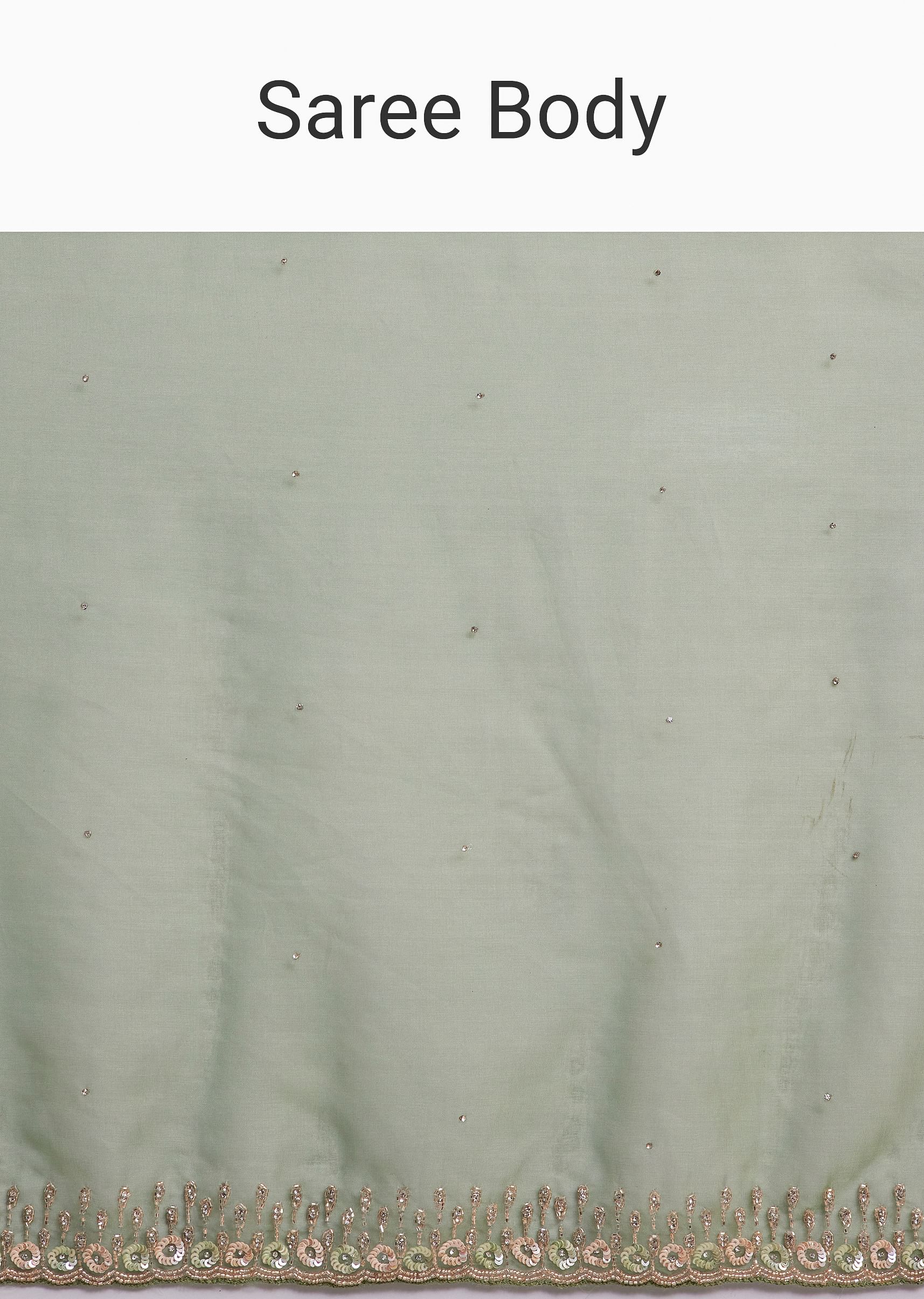 Green Organza Saree With Sequins And Cutdana Embellished Border