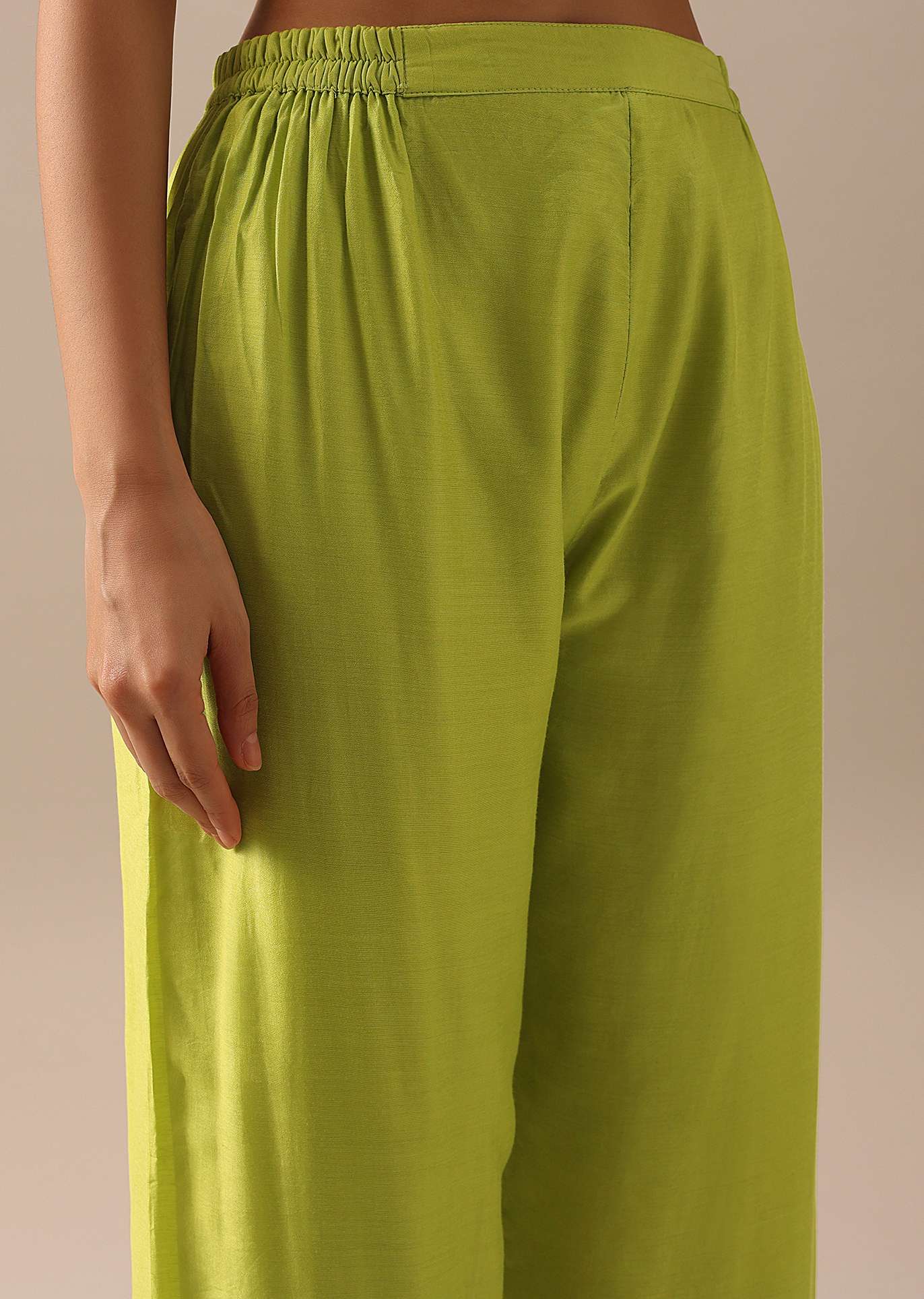 Exude style and sophistication by wearing this opulent Kurta pant set, fabricated from chanderi fabric. Ornated with zari, cutdana, sequin, and beads, the kurta comes with three-quarter sleeves. Flaunts of... More Product Details