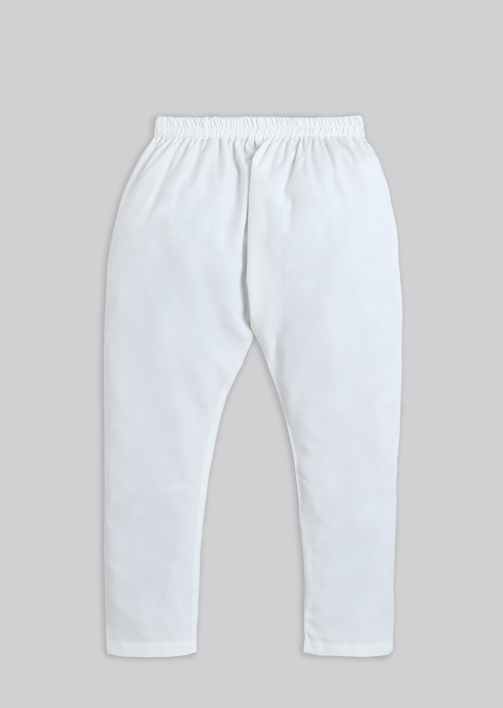 A festive silk kurta set in green with motif-floral print detailing, styled with a mandarin collar, 3/4th sleeves and front buttons. Paired with matching pants for celebration-ready dressing. Awarded as the Most Trusted Brand, we're delivering styles you love, just as promised.