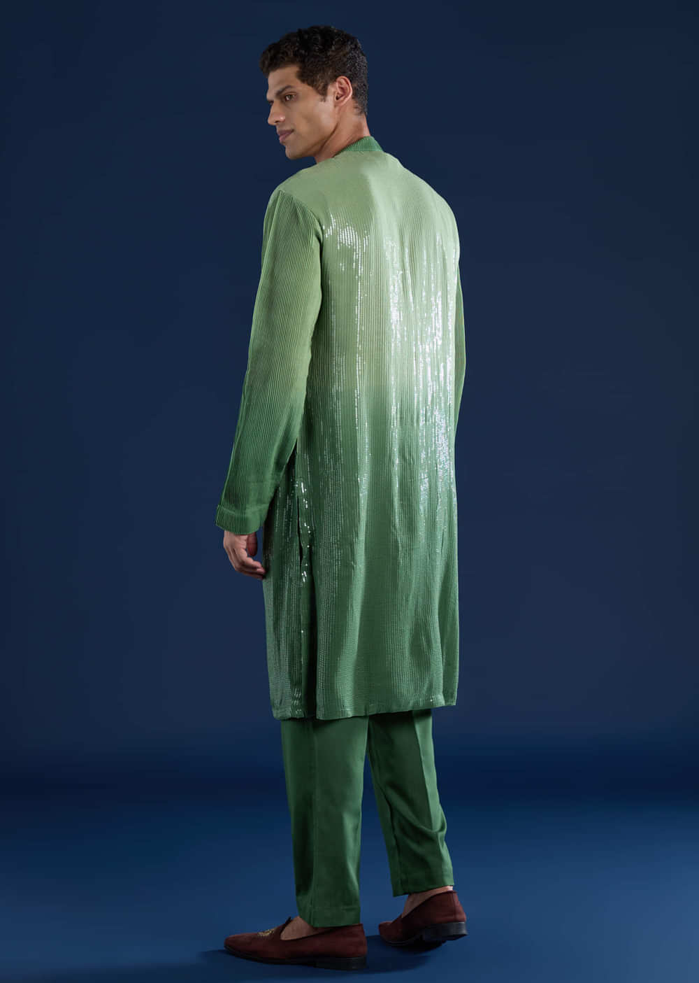 Green Sequin Work Mens Kurta and Pant Set