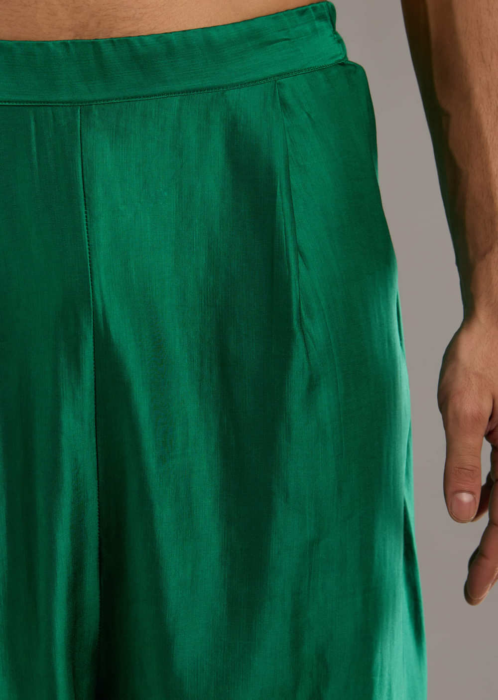 Green Silk Kurta Set For Men With Handwoven Jacquard Work