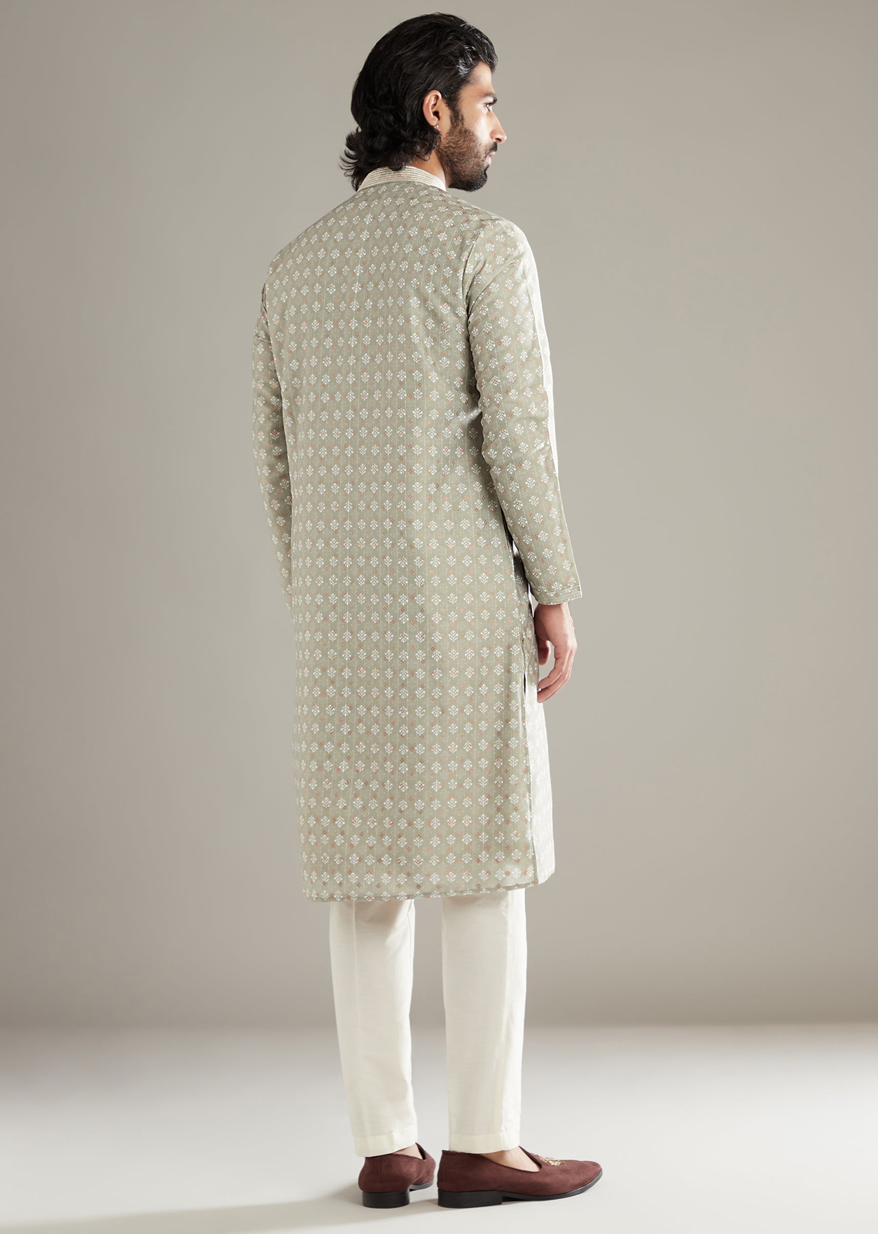 Fresh and versatile, this tea green art silk men’s kurta set carries printed motifs that sit cleanly on a smooth base. The tone feels calm yet festive-friendly. Reach for it at casual functions when you want effortless style that still reads considered. Awarded as the Most Trusted Brand, we're delivering styles you love, just as promised.