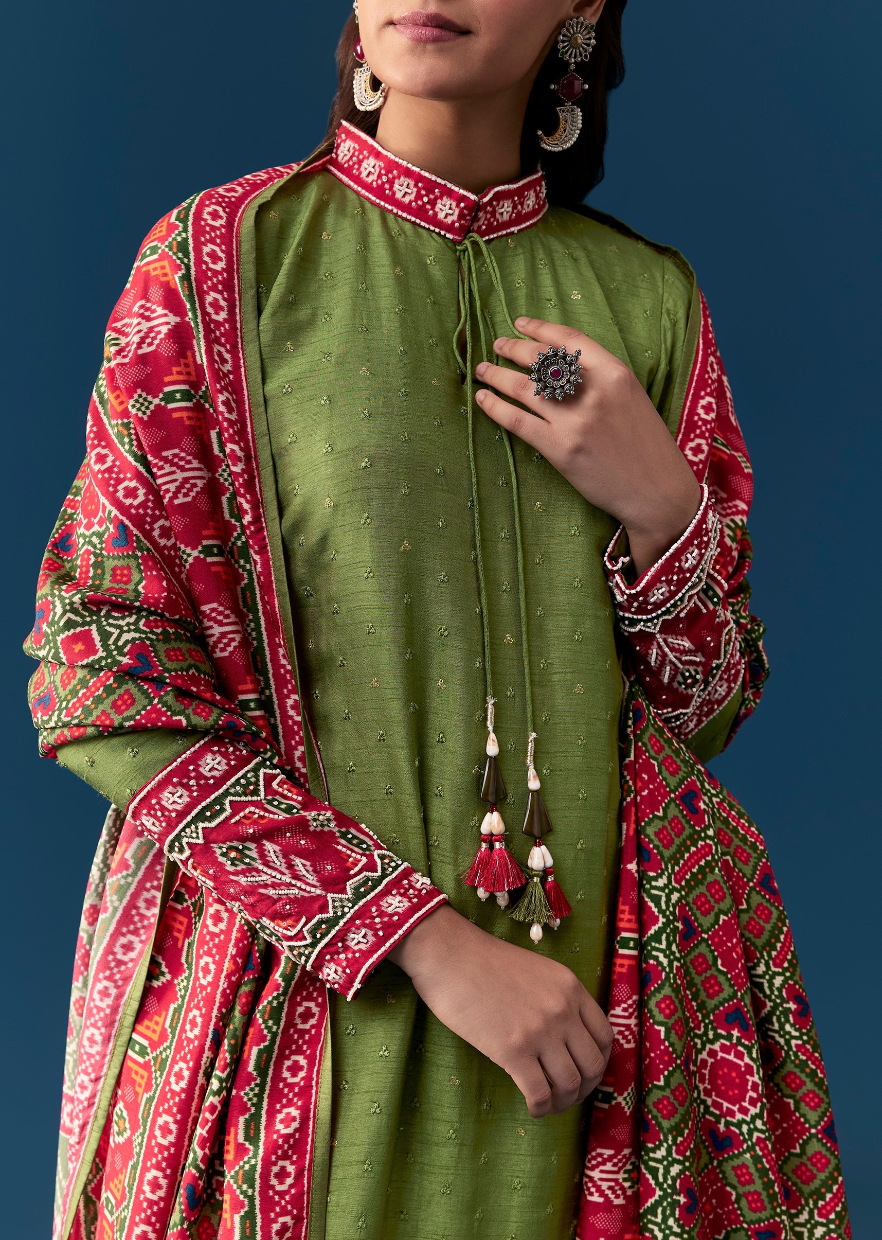 Green Silk Kurta Set With Resham Butti And Cut Dana Work