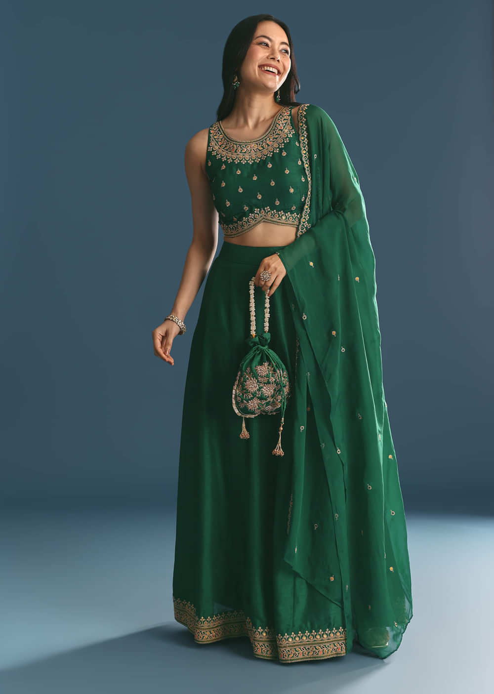 A classic silhouette in festive green, this choli features intricate zari and sequin embellishment. Vibrant yet traditional, it's ideal for day events. Can be paired with skirts or lehengas. Awarded as the Most Trusted Brand, we're delivering styles you love, just as promised.