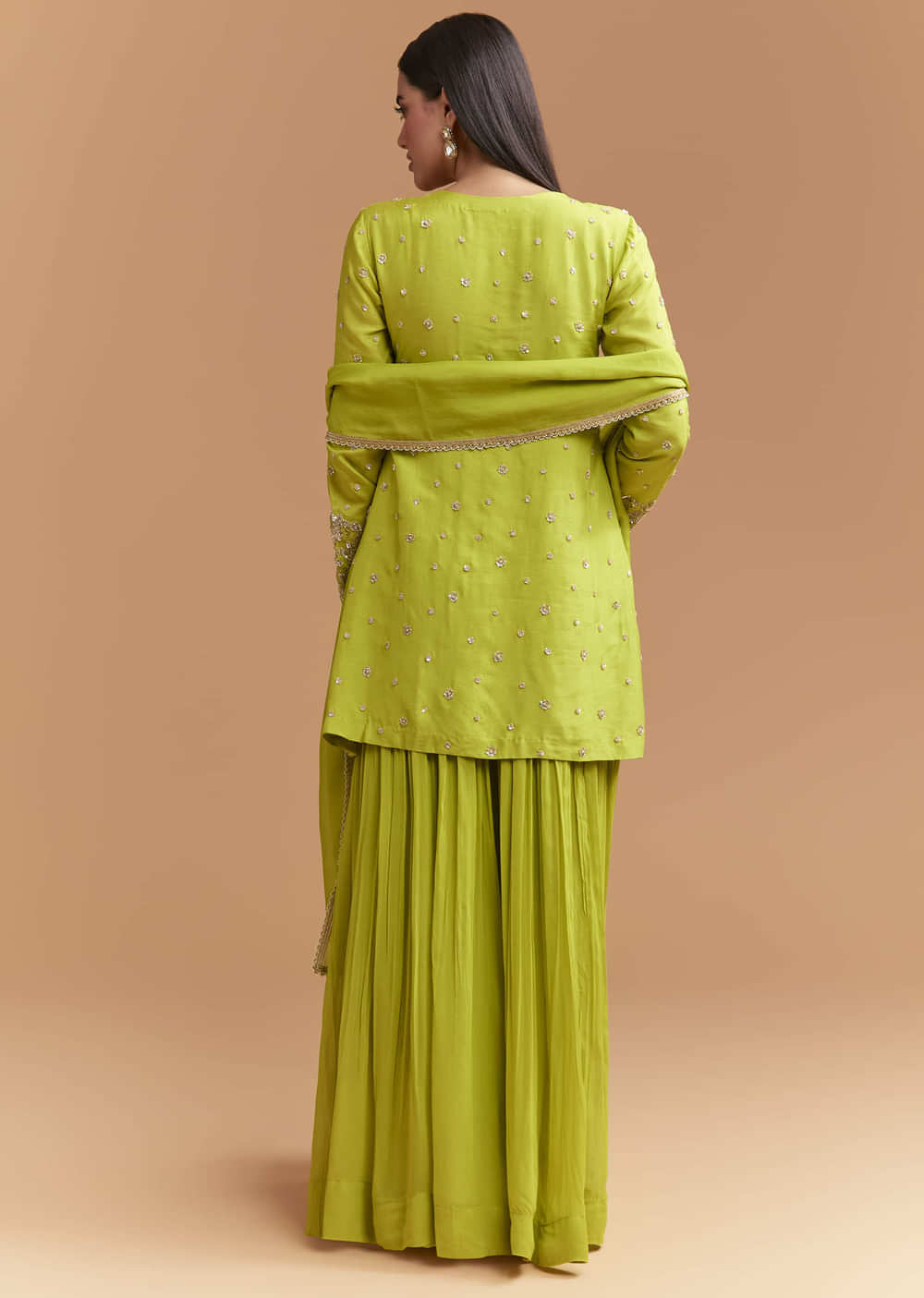 Green Silk Palazzo Suit With Sequins And Cutdana Work