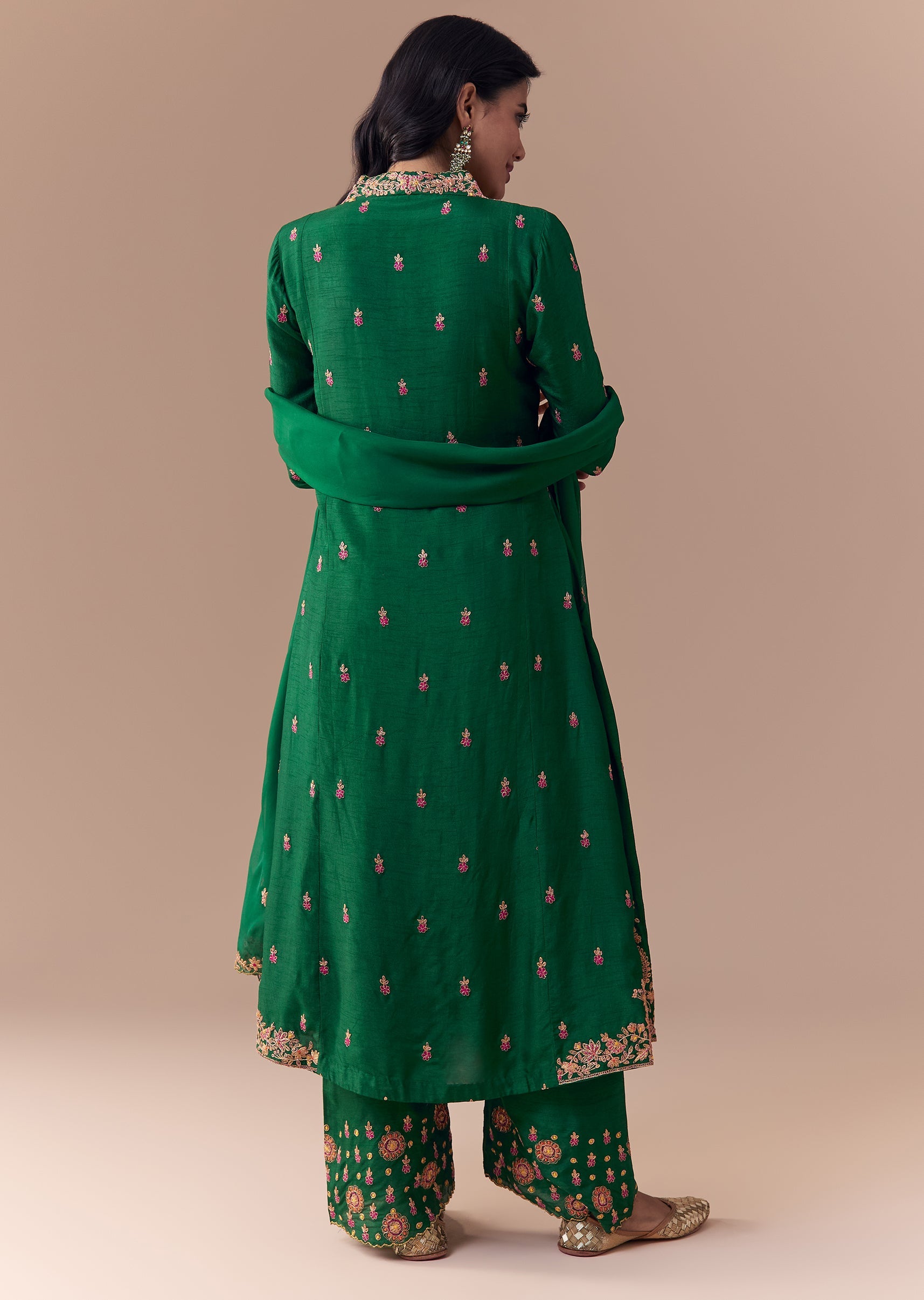 Green Silk Zari Embellished Anarkali Set