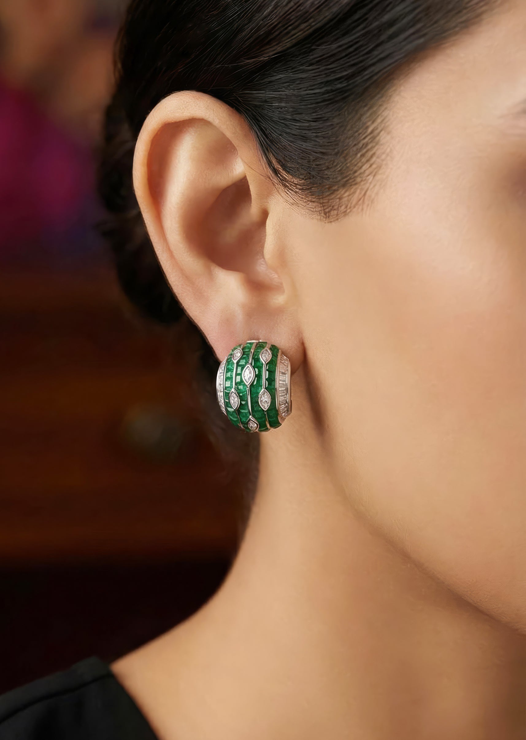 Pair them with a sleek cocktail gown or a shimmer saree to highlight their vibrant green sparkle.