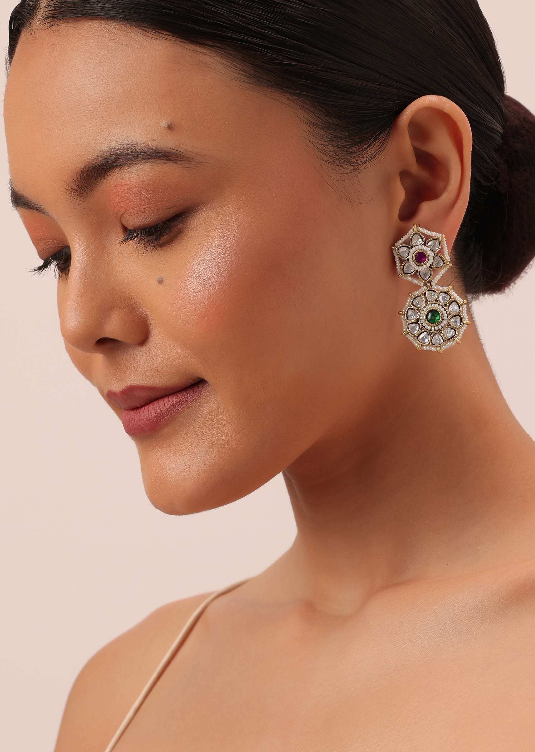 Achieve a splendid look by donning this temple choker set. Expertly crafted in mix metal, it features stunning floral and geometric motif pendant drops. The green beaded multi-string add to its opulent allure. Finished with exquisite Meenakari detailing and tiered danglers, this piece adds an elegant and timeless look to your outfits.Keep away from moisture, perfume, alcohol, and harsh chemicals.Spot clean only.Keep away from sharp objects. Awarded as the Most Trusted Brand, we're delivering styles you love, just as promised.