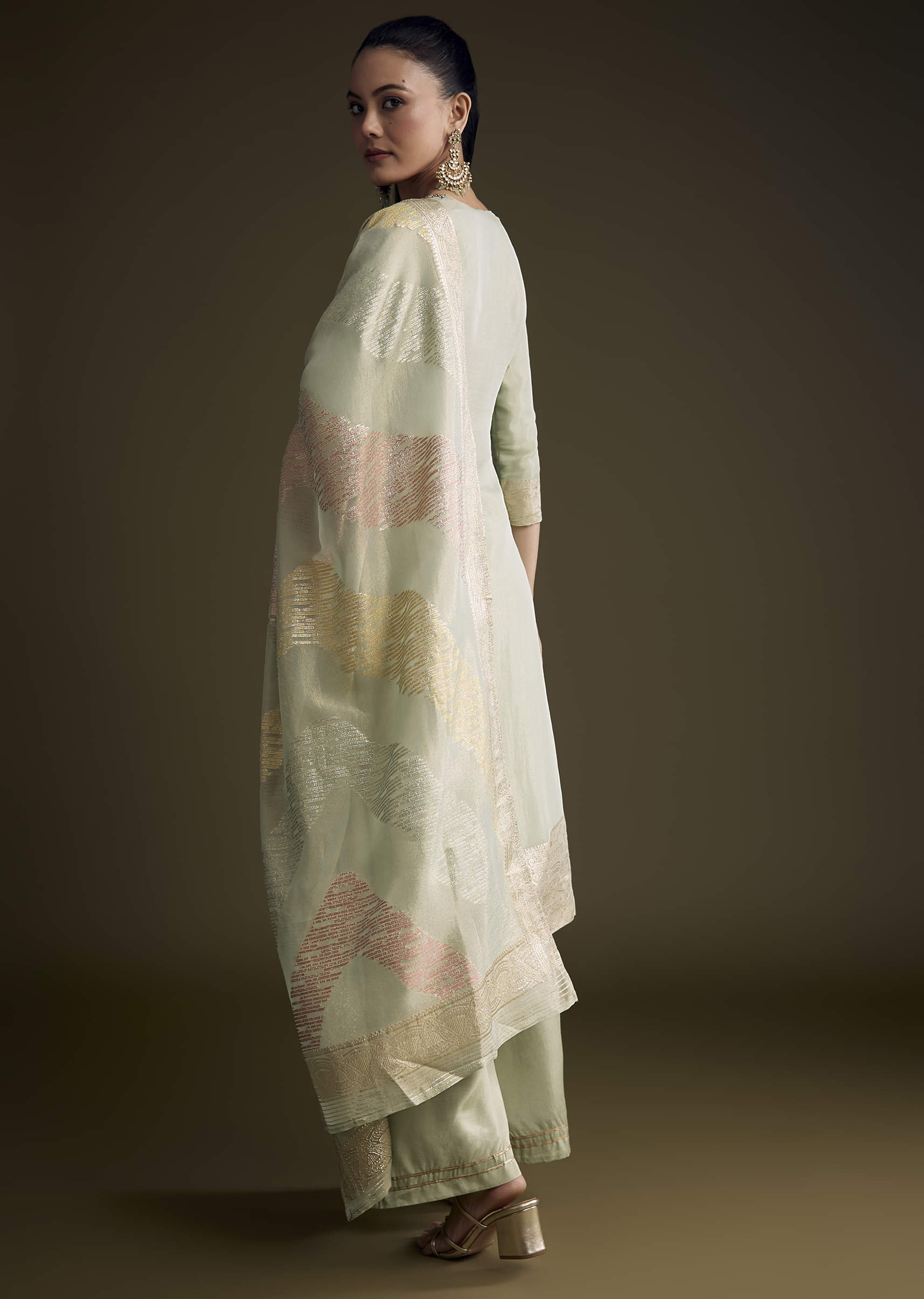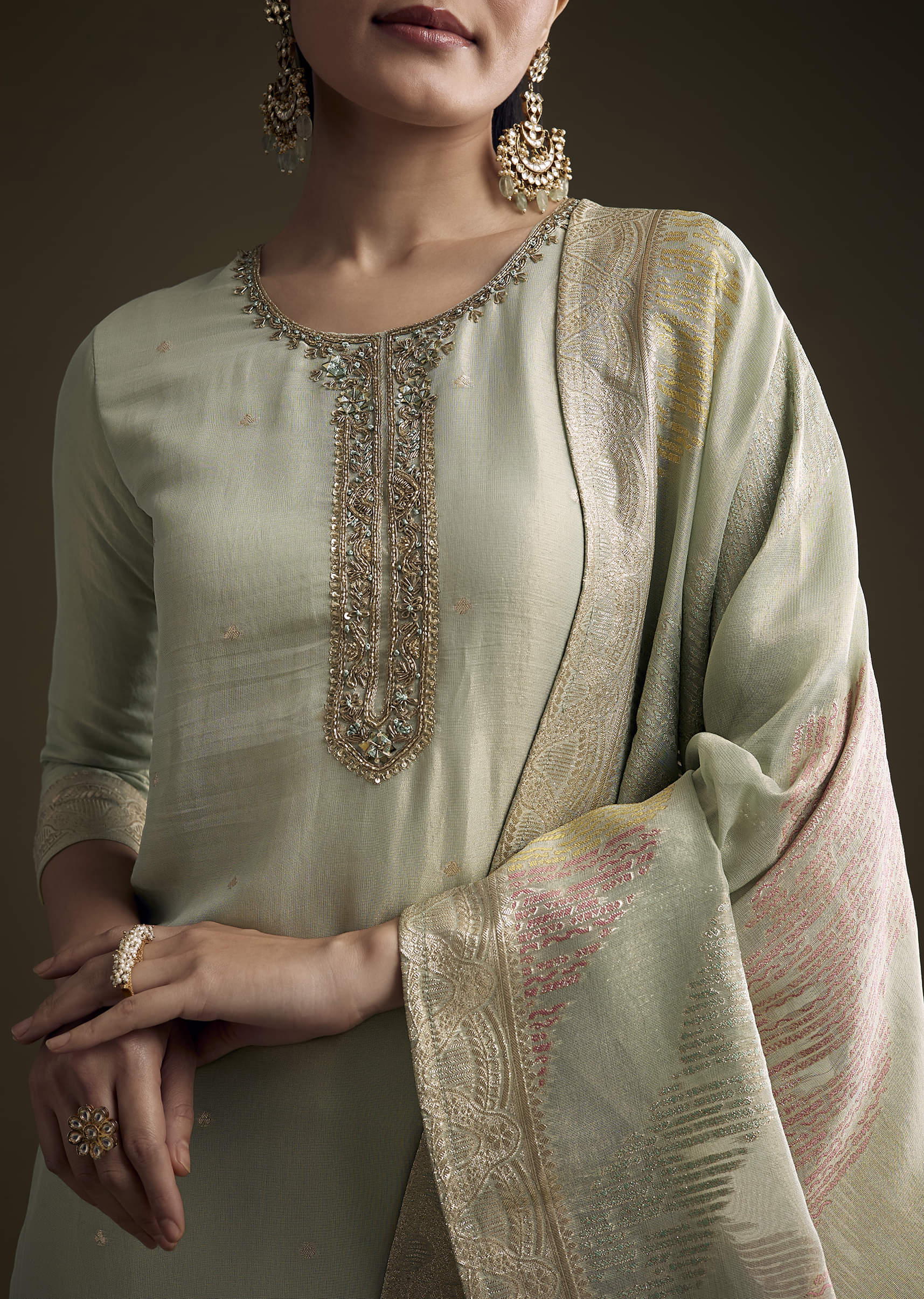 Green Tissue Kurta Set With Cutdana And Sequins Embroidery