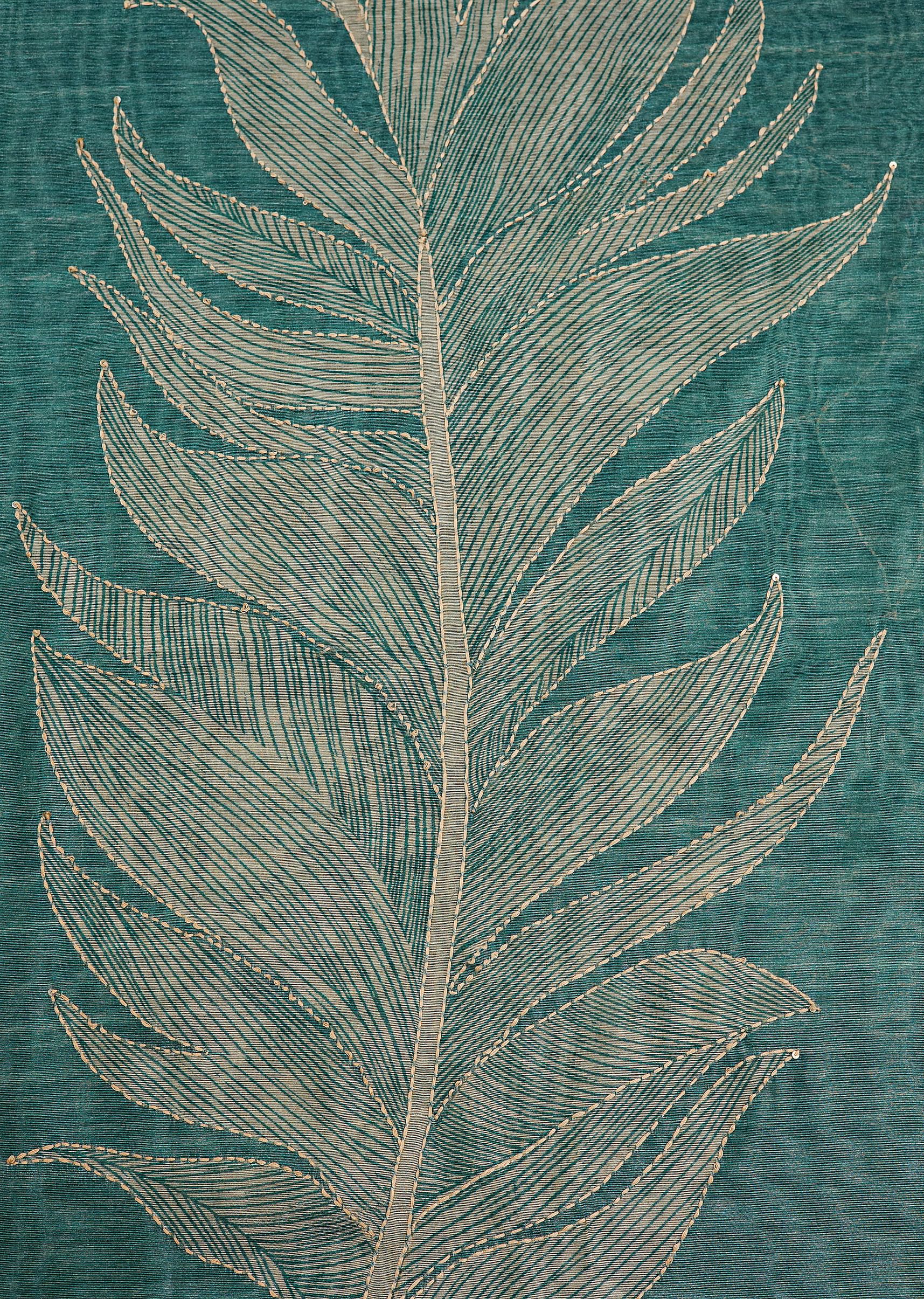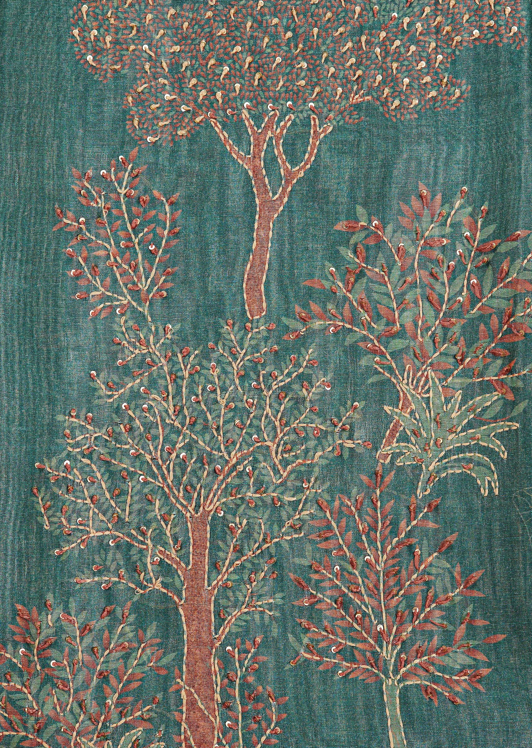 Experience the charm of handcrafted elegance with this green Tussar unstitched suit set. The kurta fabric features intricate kantha work and delicate sequins, beautifully accentuating the artistic printed design inspired... More Product Details