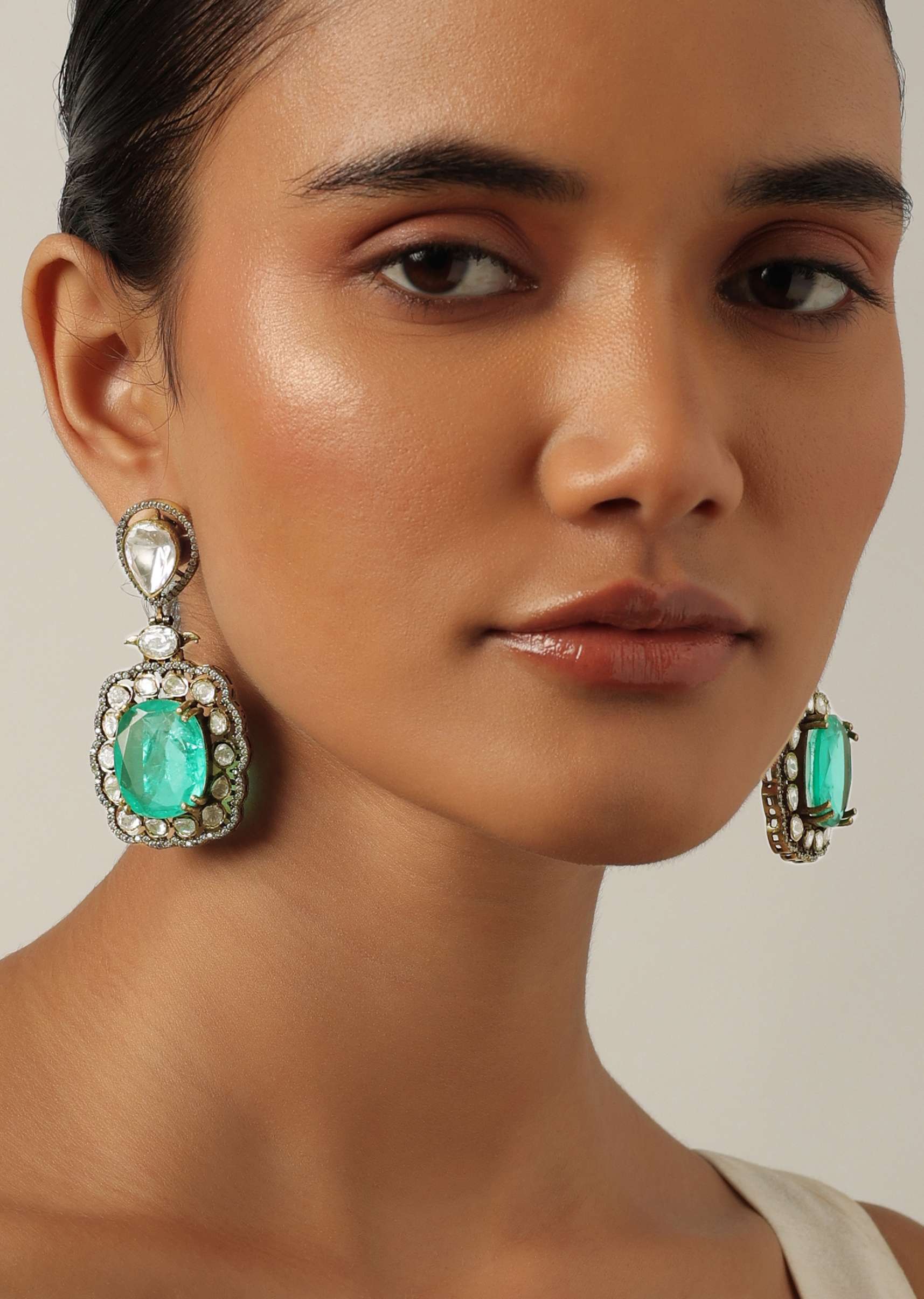 Featuring a royal design this luxurious pendant choker will add elegance to all your outfits. Studded with green emerald stones it features multistring beads. Embellished with white zirconia the necklace boasts of teardrop motif pendant drops. Paired with geometric danglers this set of two makes for a magnificent addition. Keep away from moisture perfume alcohol and harsh chemicals.Spot clean only.Keep away from sharp objects. Awarded as the Most Trusted Brand, we're delivering styles you love, just as promised.