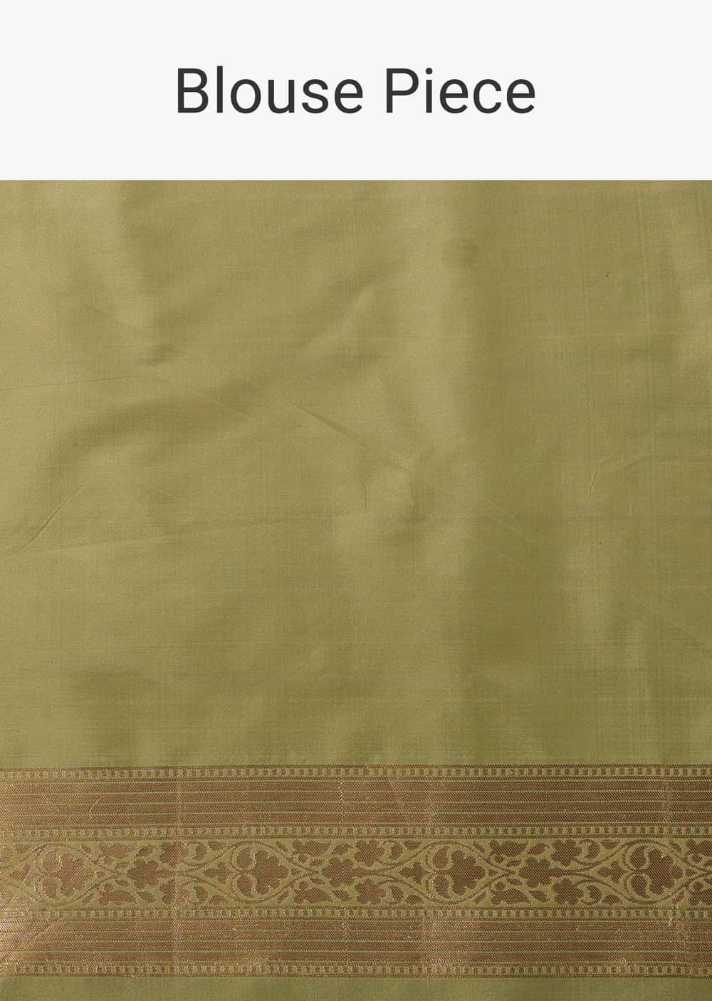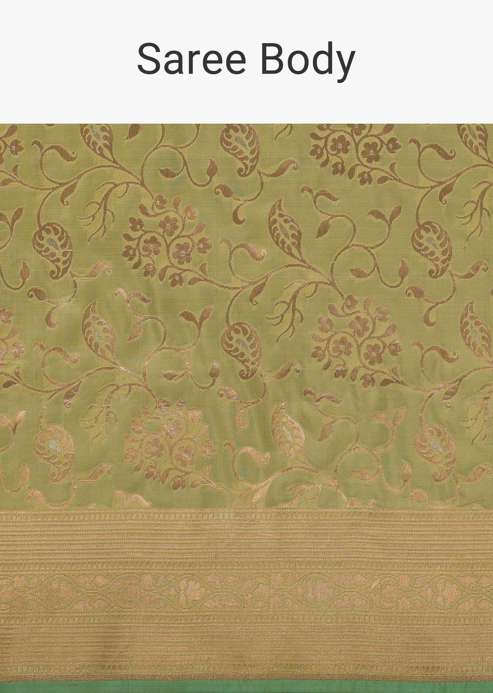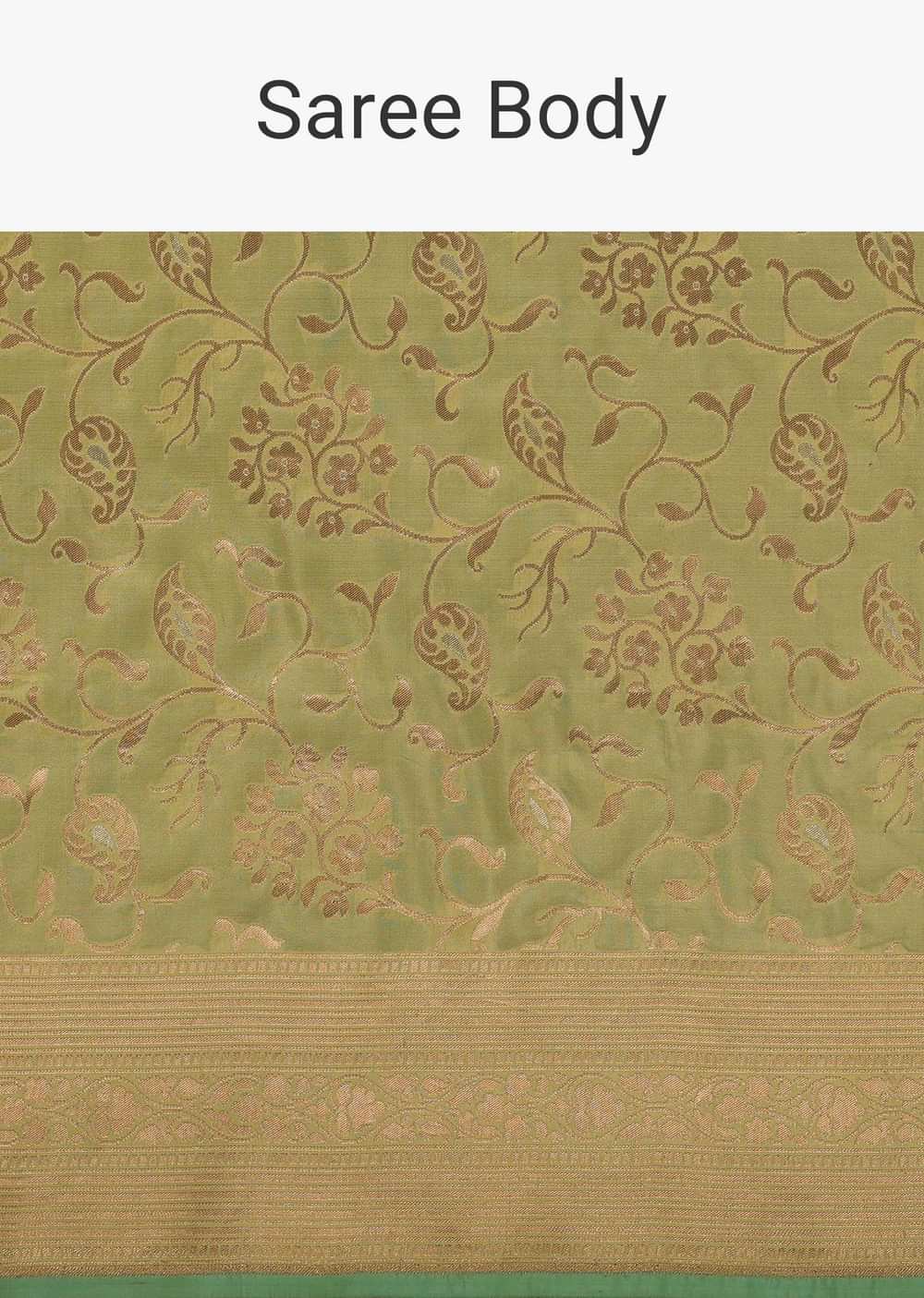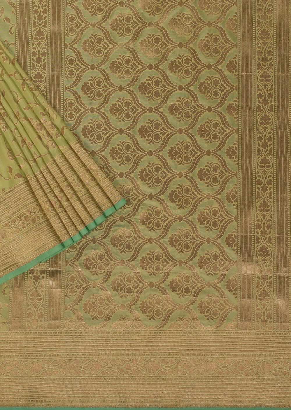 Green Handloom Banarasi Saree In Uppada Silk With Floral Jaal Weave And Unstitched Blouse