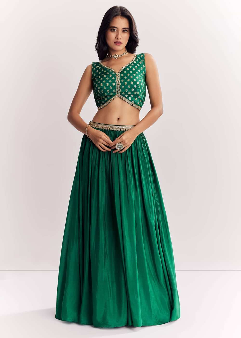 Grace meets heritage in this green weave silk blouse layered with a zari detailed bandhani print jacket, made for glowing sangeet moments. Awarded as the Most Trusted Brand, we're delivering styles you love, just as promised.
