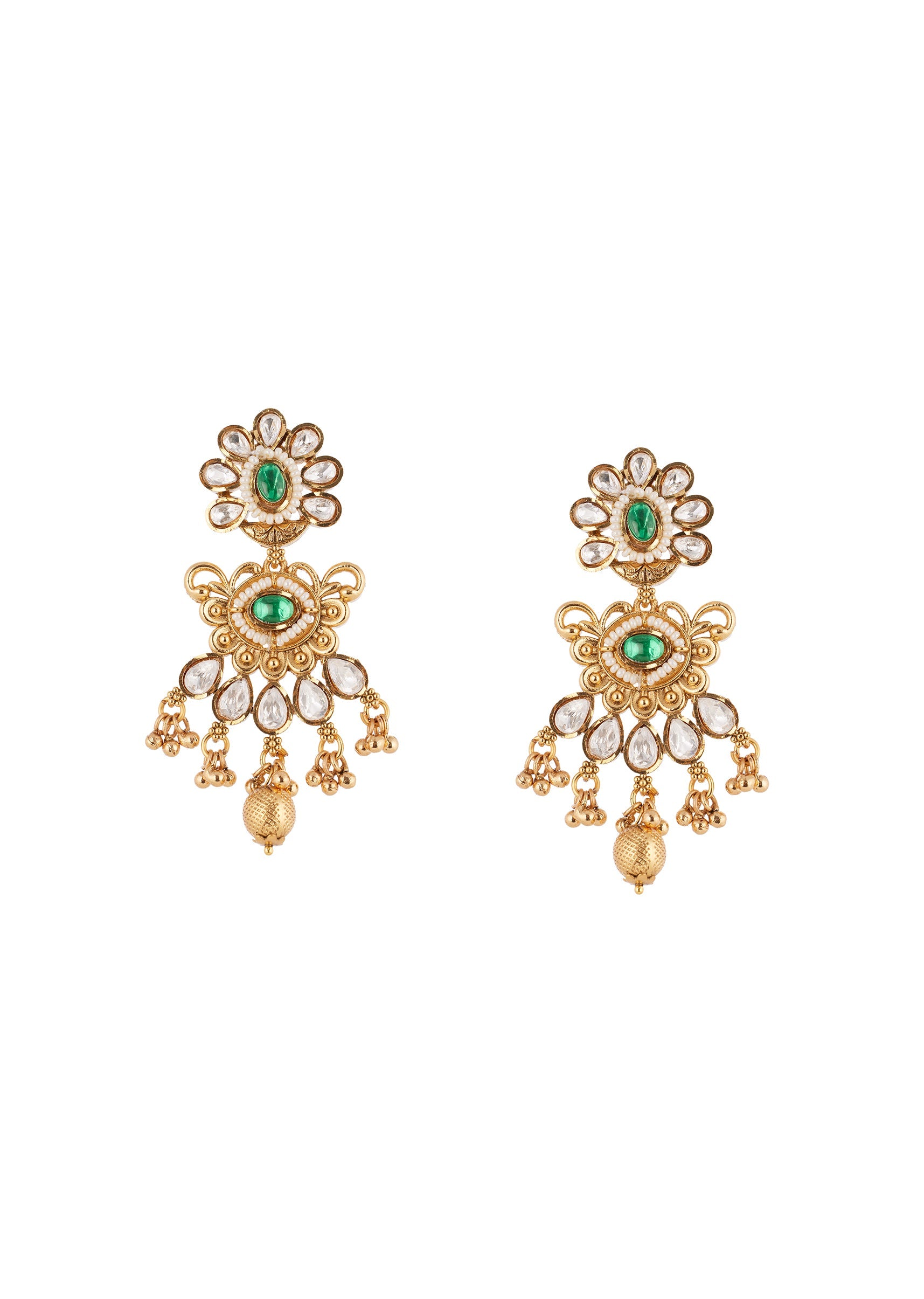 This green and white necklace set features delicate kundan craftsmanship that adds a subtle sparkle and polished charm to your look. The intricately designed necklace paired with matching earrings enhances the neckline while adding an elegant and sophisticated touch to your ensemble. Lightweight and balanced, it pairs beautifully with lehengas, sarees, and indo western outfits, making it a versatile accessory for bridesmaids and mothers who appreciate classic style with refined detailing. Awarded as the Most Trusted Brand, we're delivering styles you love, just as promised.