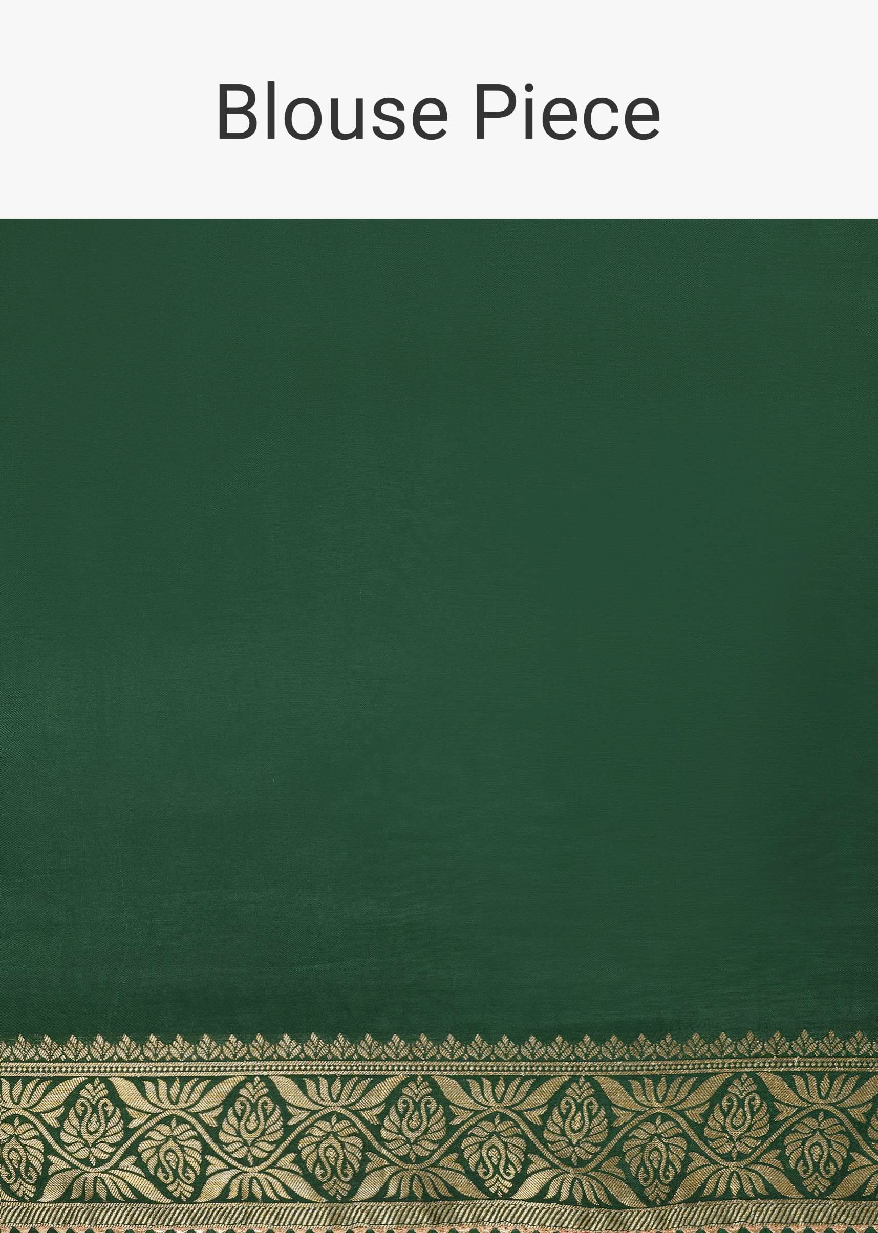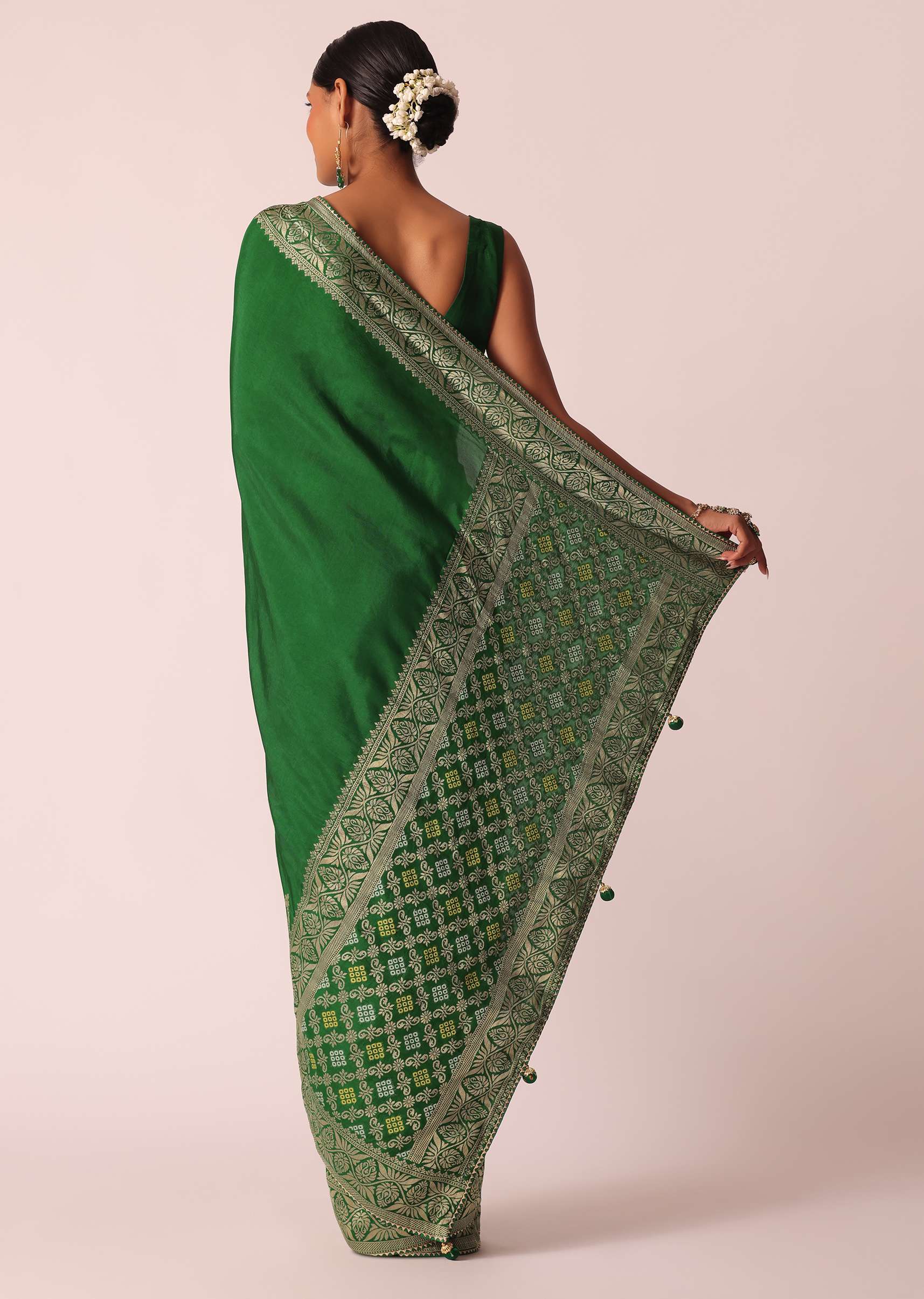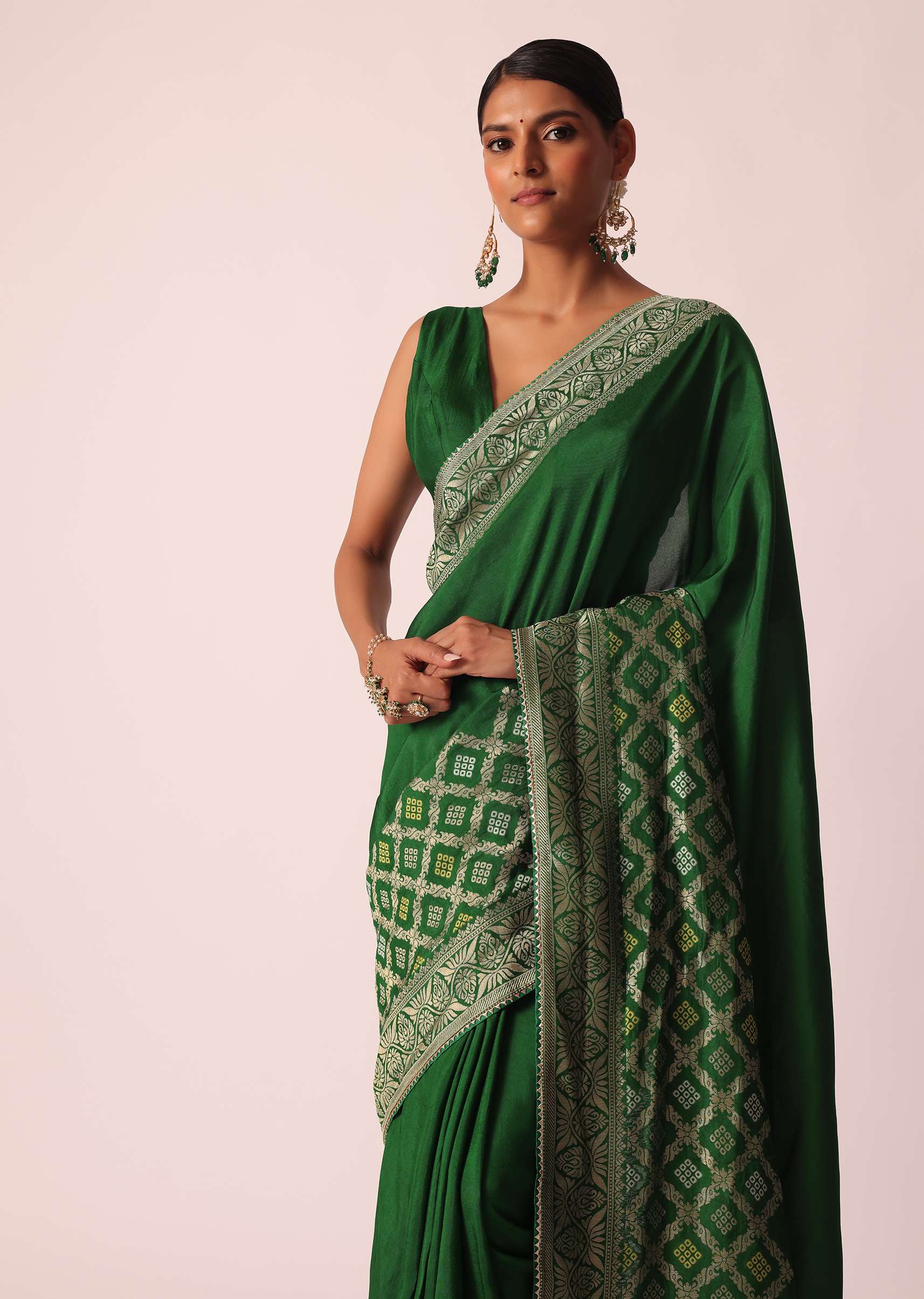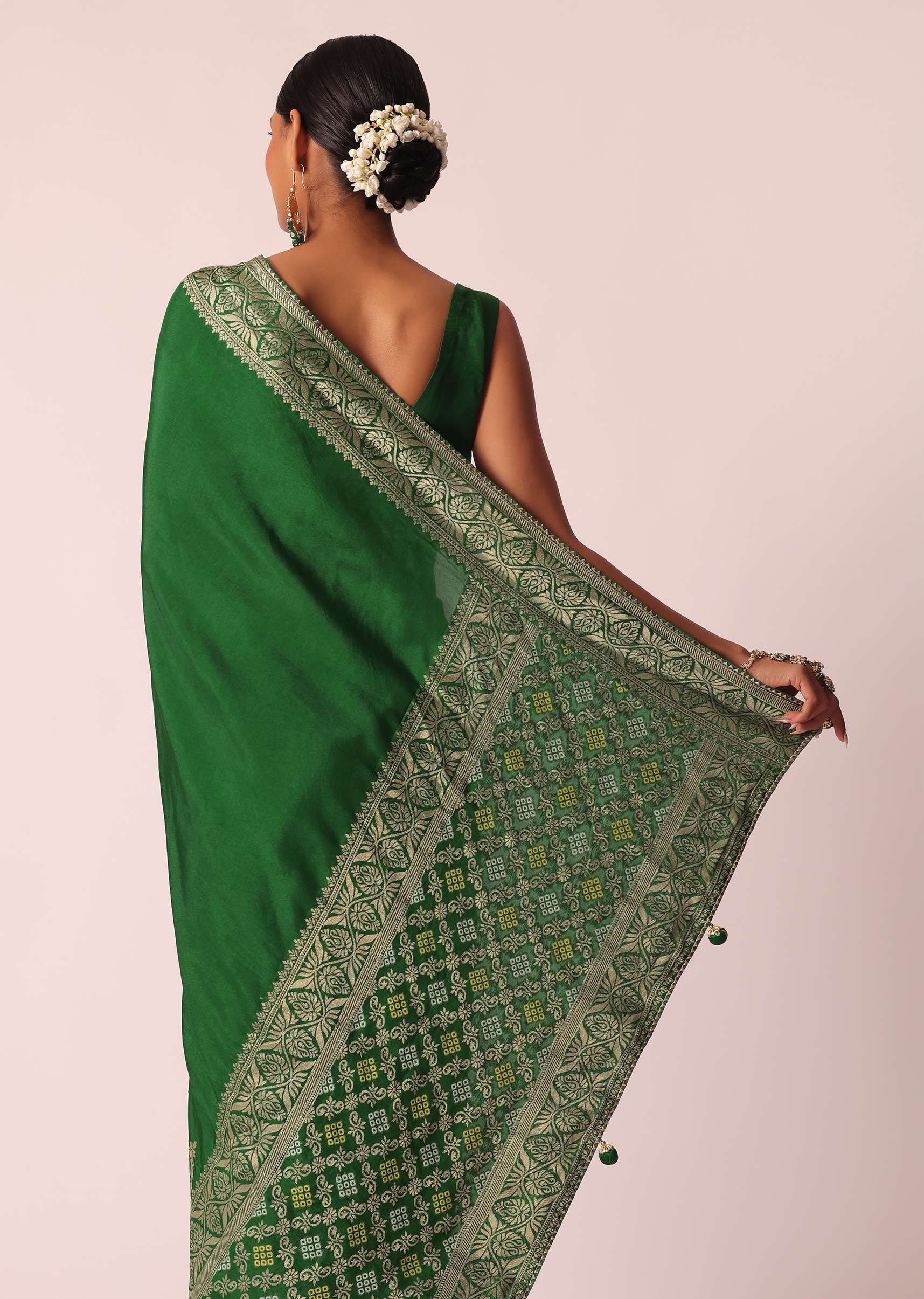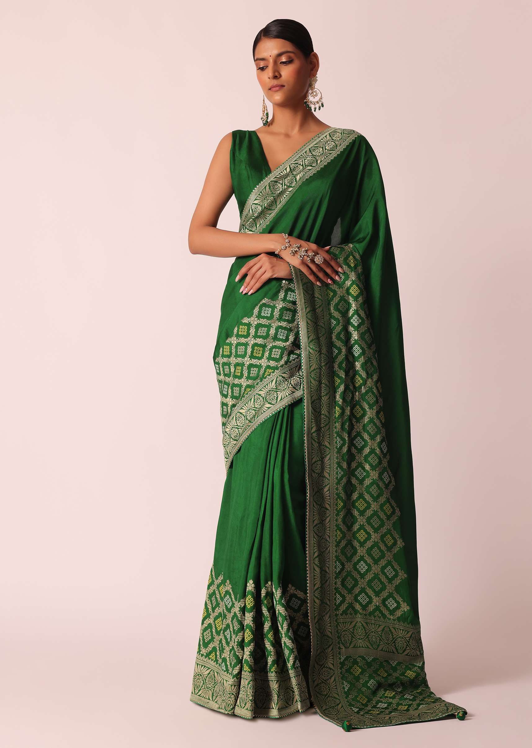 Green Woven Silk Saree With Bandhani Detail And Unstitched Blouse Piece