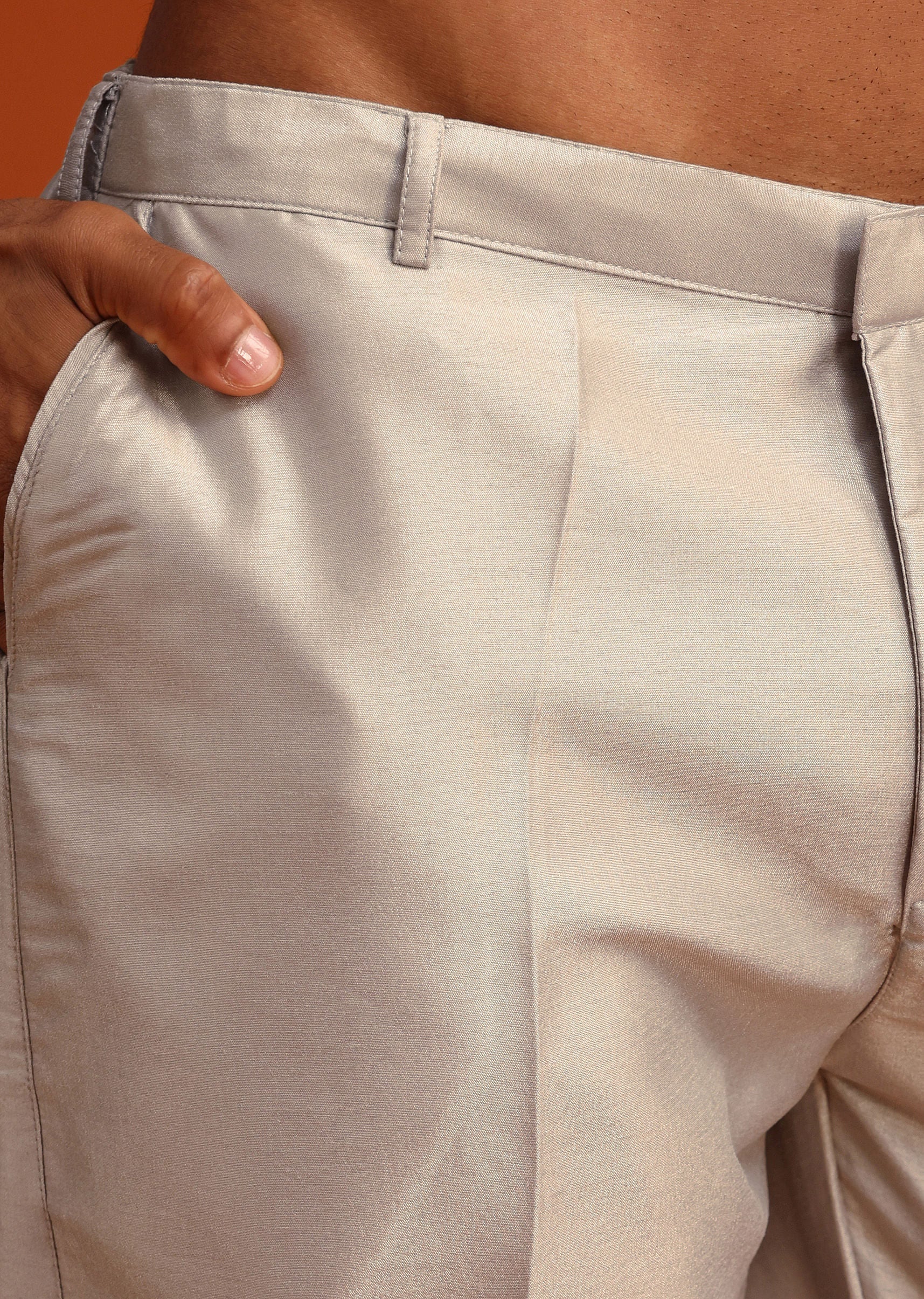 A timeless piece that will add to your versatile traditional collection is this resplendent jacket and kurta set. Crafted in a grey hue, the opulent raw silk jacket is enhanced... More Product Details