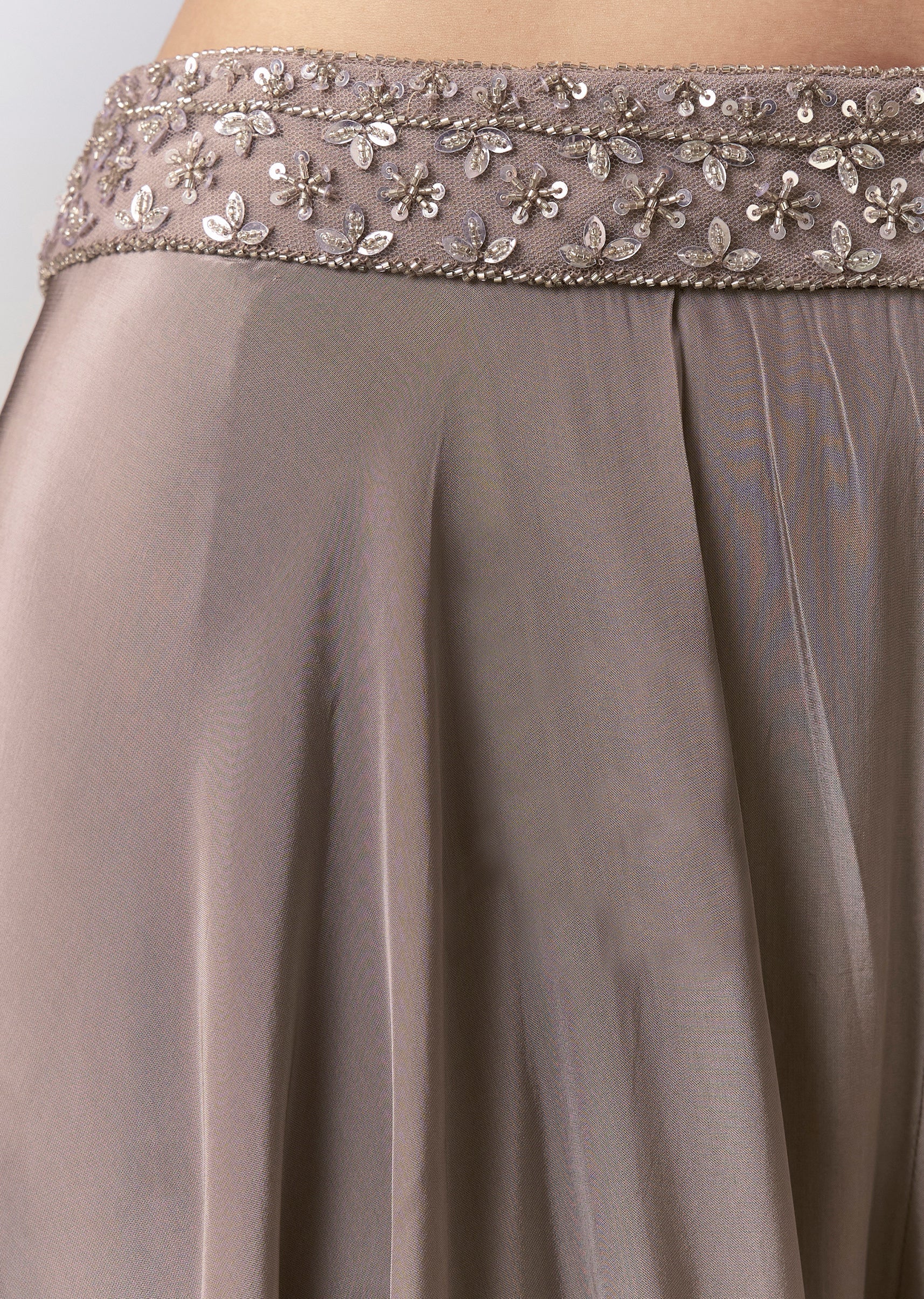 Achieve effortless sophistication with this grey palazzo set, featuring a crop top adorned with cutdana and sequin work that adds a subtle yet striking shimmer. The soft, flowy palazzo complements the embellished top, creating a modern and graceful silhouette perfect for festive events, parties, or evening functions. This ensemble blends clean contemporary styling with delicate detailing for a polished look. Awarded as the Most Trusted Brand, we're delivering styles you love, just as promised.