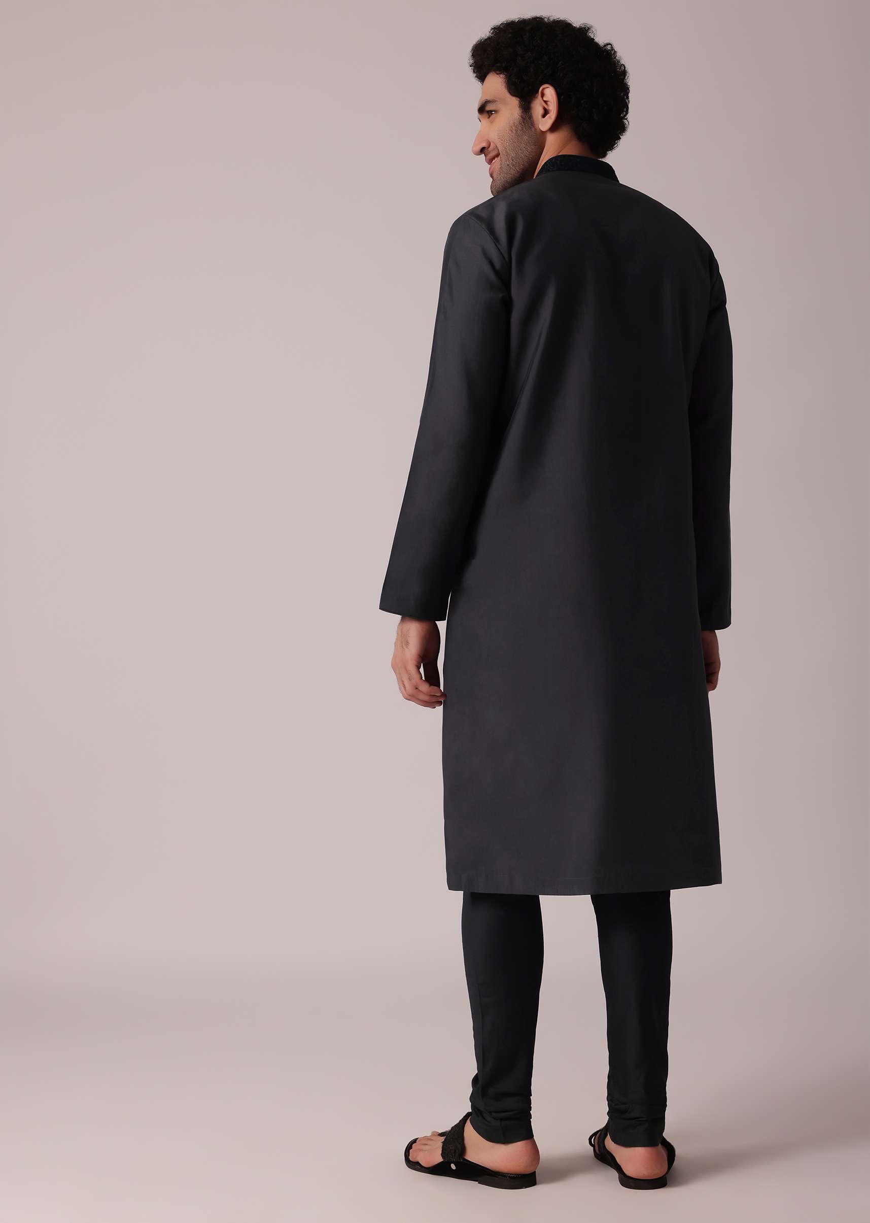 Step into festivities with our Men's Silk Kurta Set. It boasts intricate handwork detailing. The graceful grey hue of the kurta is combined with meticulous threadwork on the Mandarin collar... More Product Details
