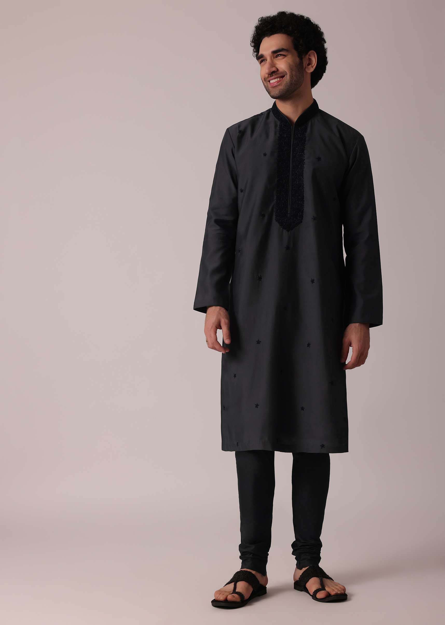Grey Festive Silk Kurta Set With Intricate Handwork