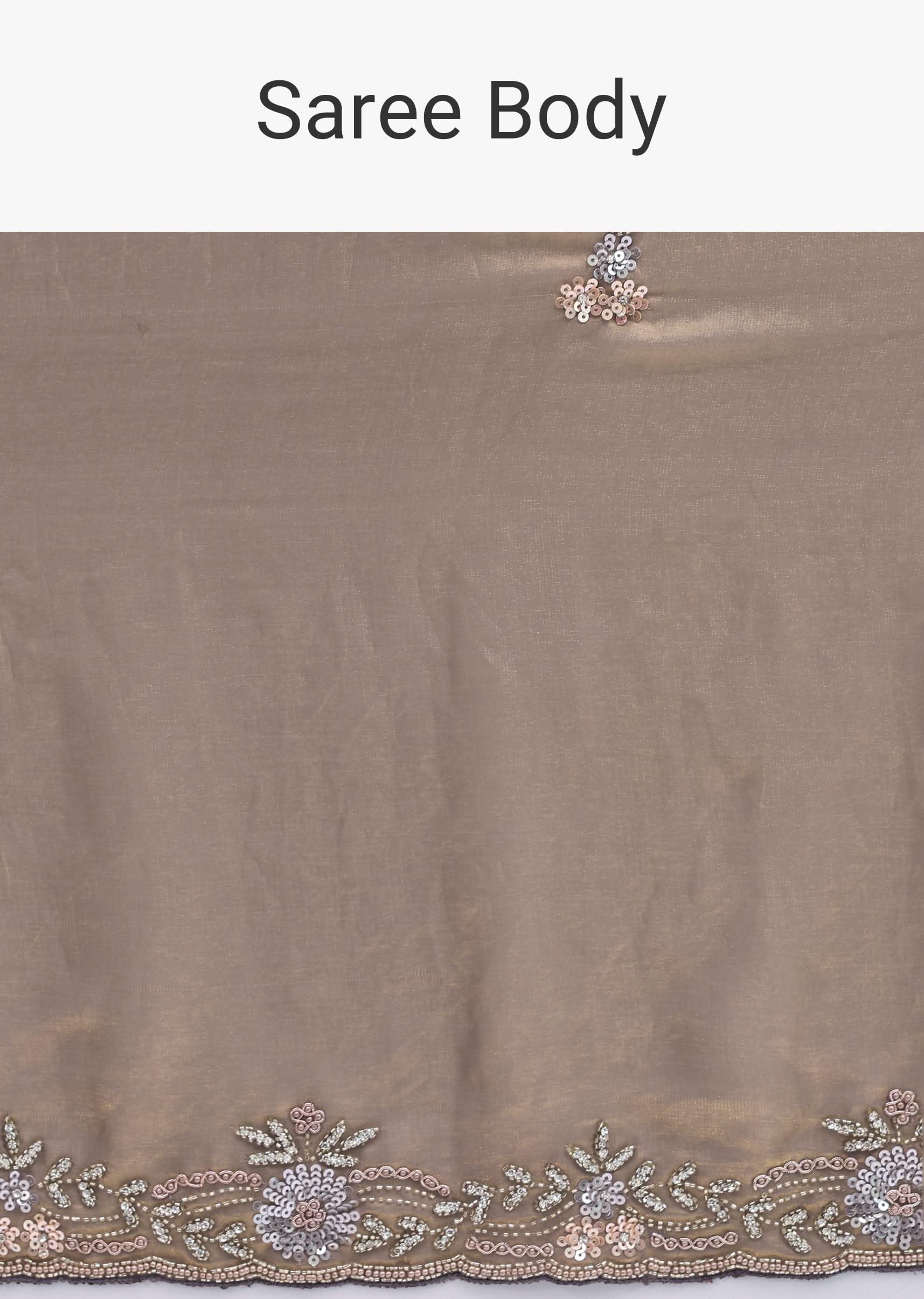 Grey Gold Satin Saree In Sequins With Unstitched Blouse