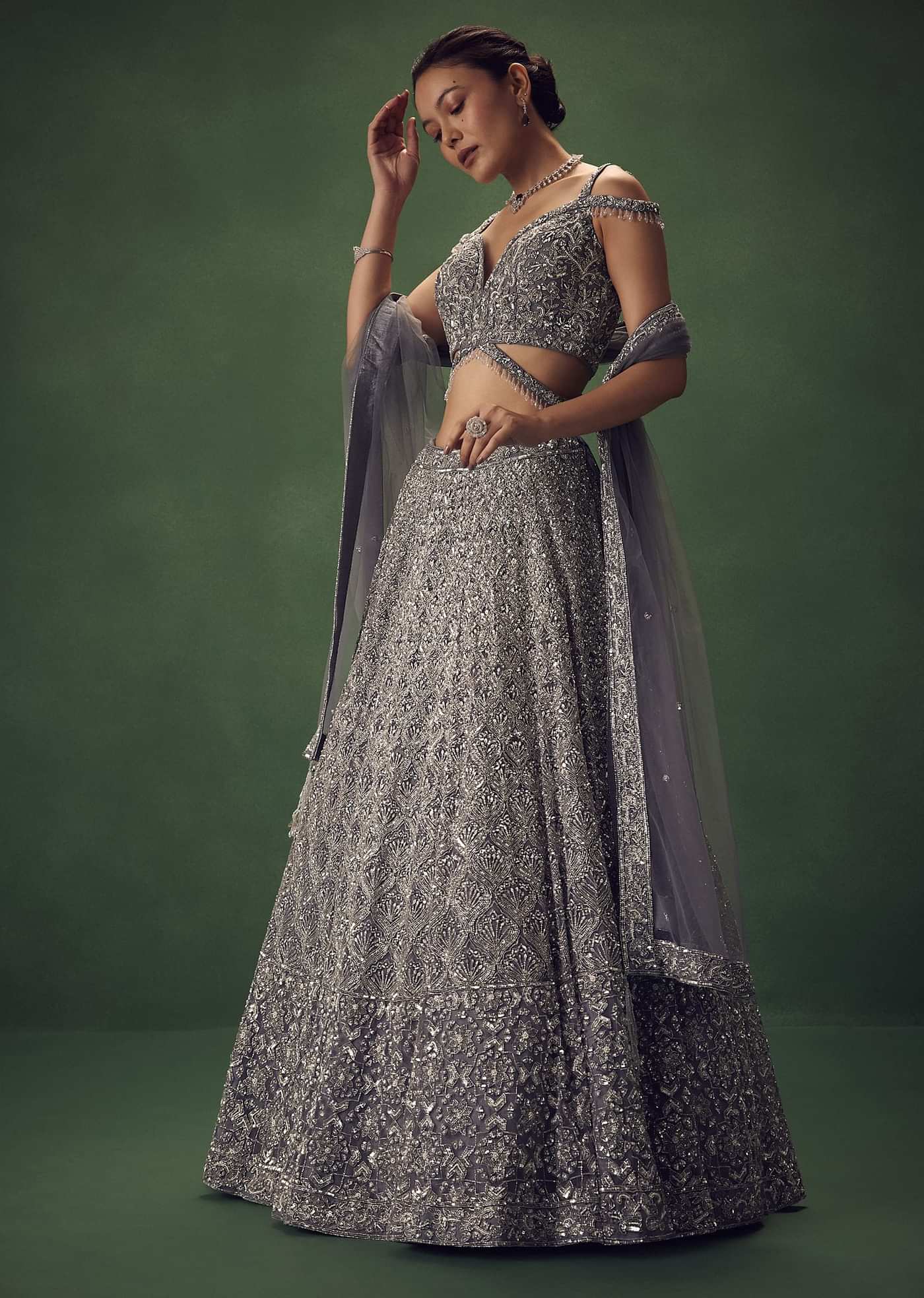 Grey Hand Embroidered Sequin Work Lehenga Set