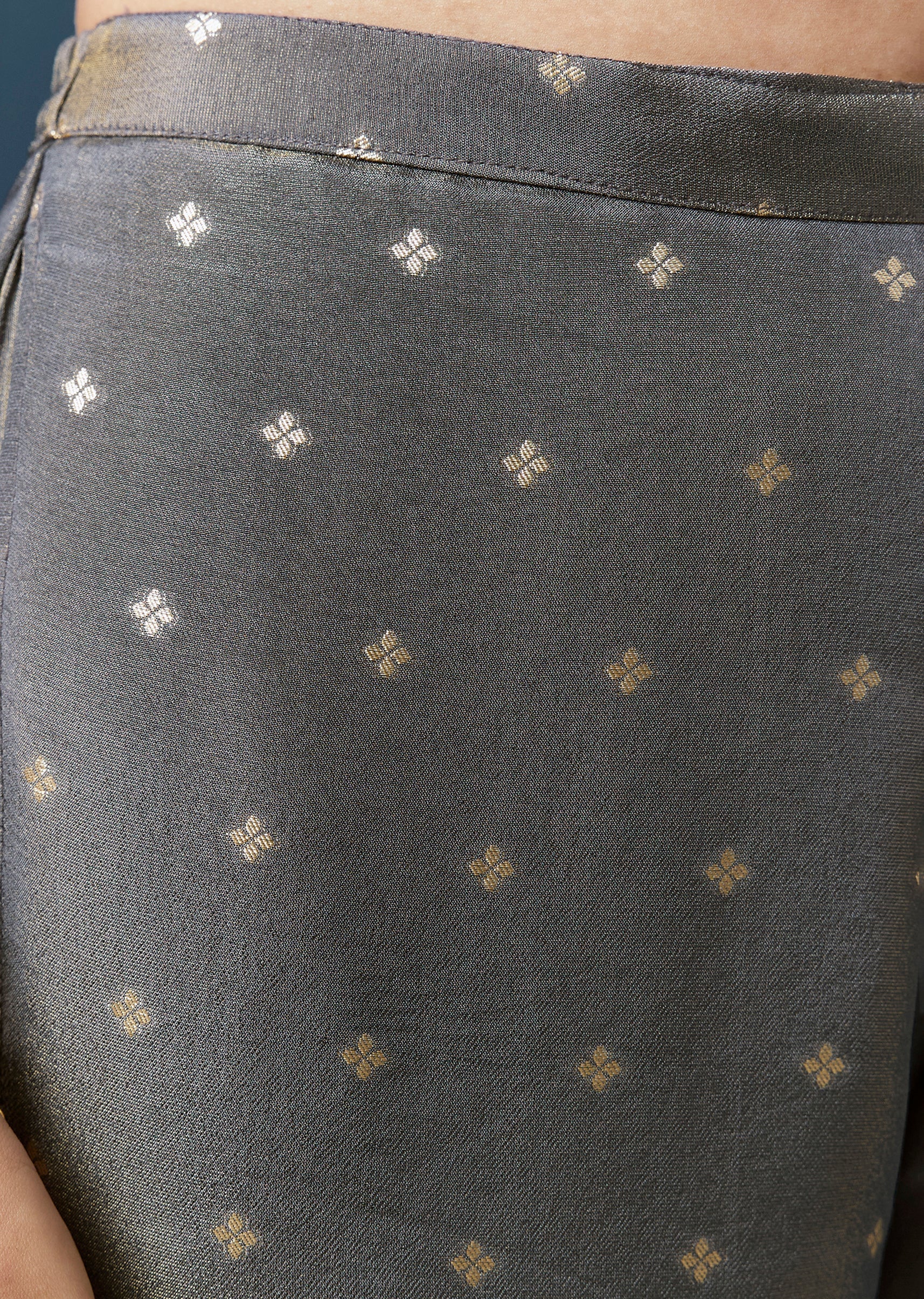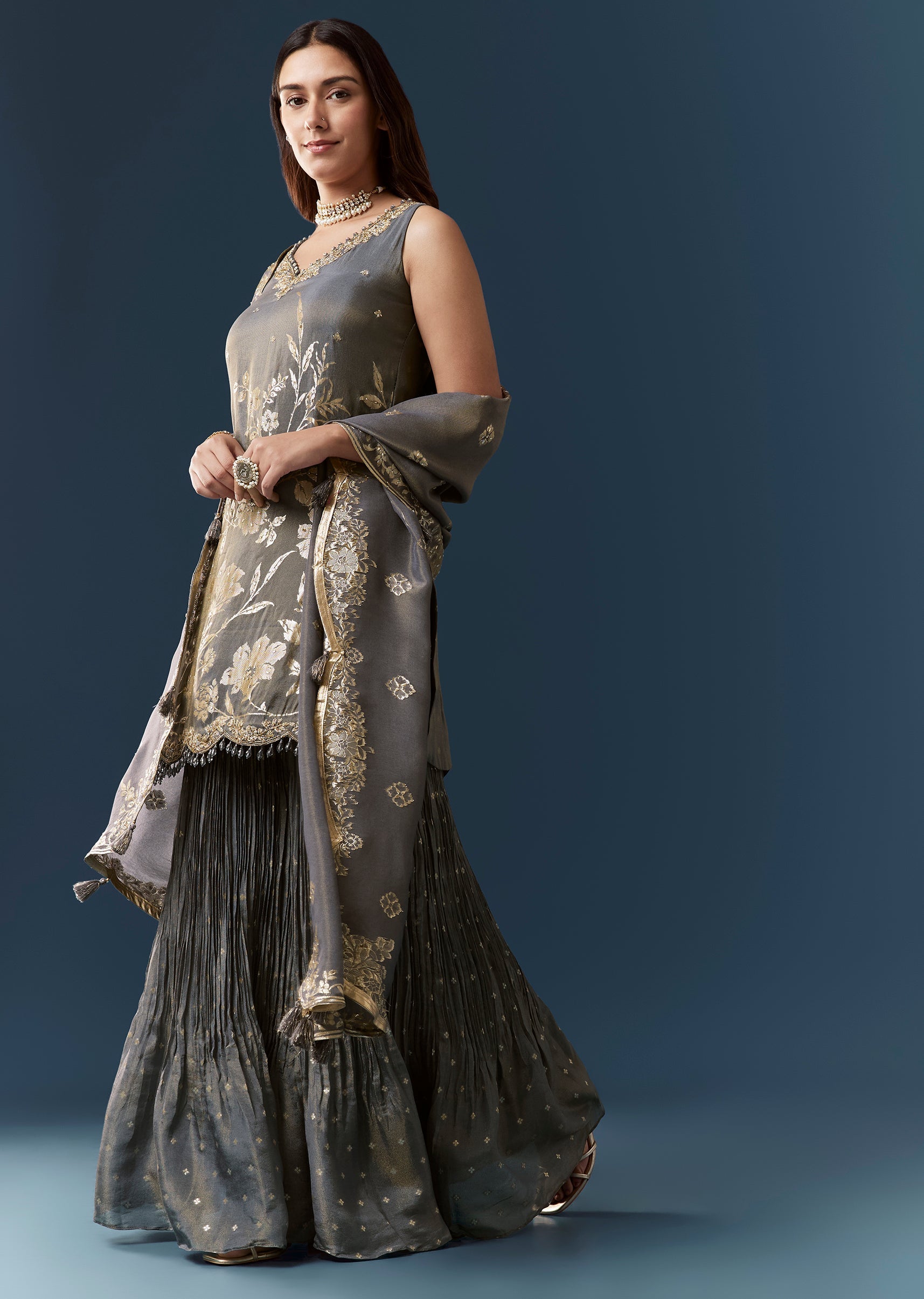 Grey Jacquard Weave Stone Work Kurta Sharara Set