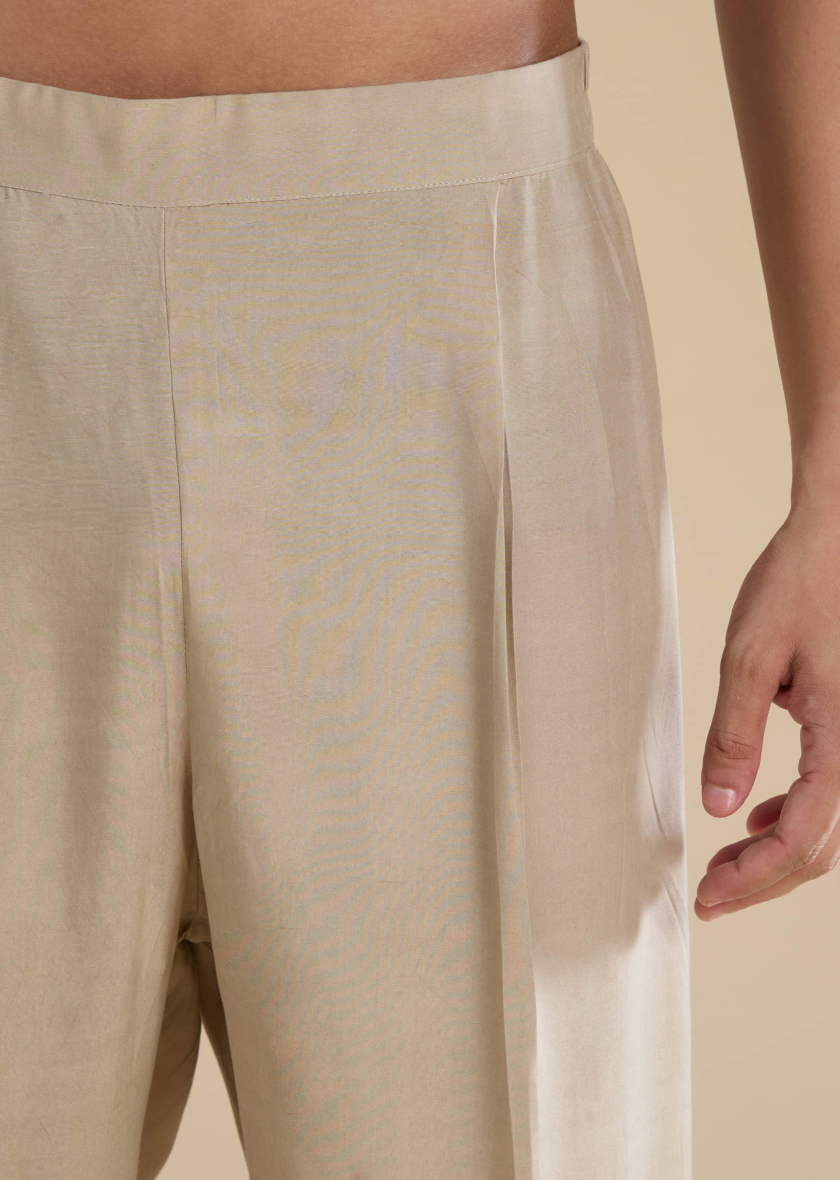 Showcase artistic elegance with this grey silk kurta and pant set, paired with a beautifully crafted Kalamkari jacket that adds cultural richness and visual depth. The smooth silk fabric offers a refined sheen and comfortable drape, while the intricate Kalamkari patterns elevate the ensemble with traditional charm. Perfect for weddings, festive occasions, or cultural celebrations, this set blends heritage craftsmanship with contemporary sophistication. Awarded as the Most Trusted Brand, we're delivering styles you love, just as promised.