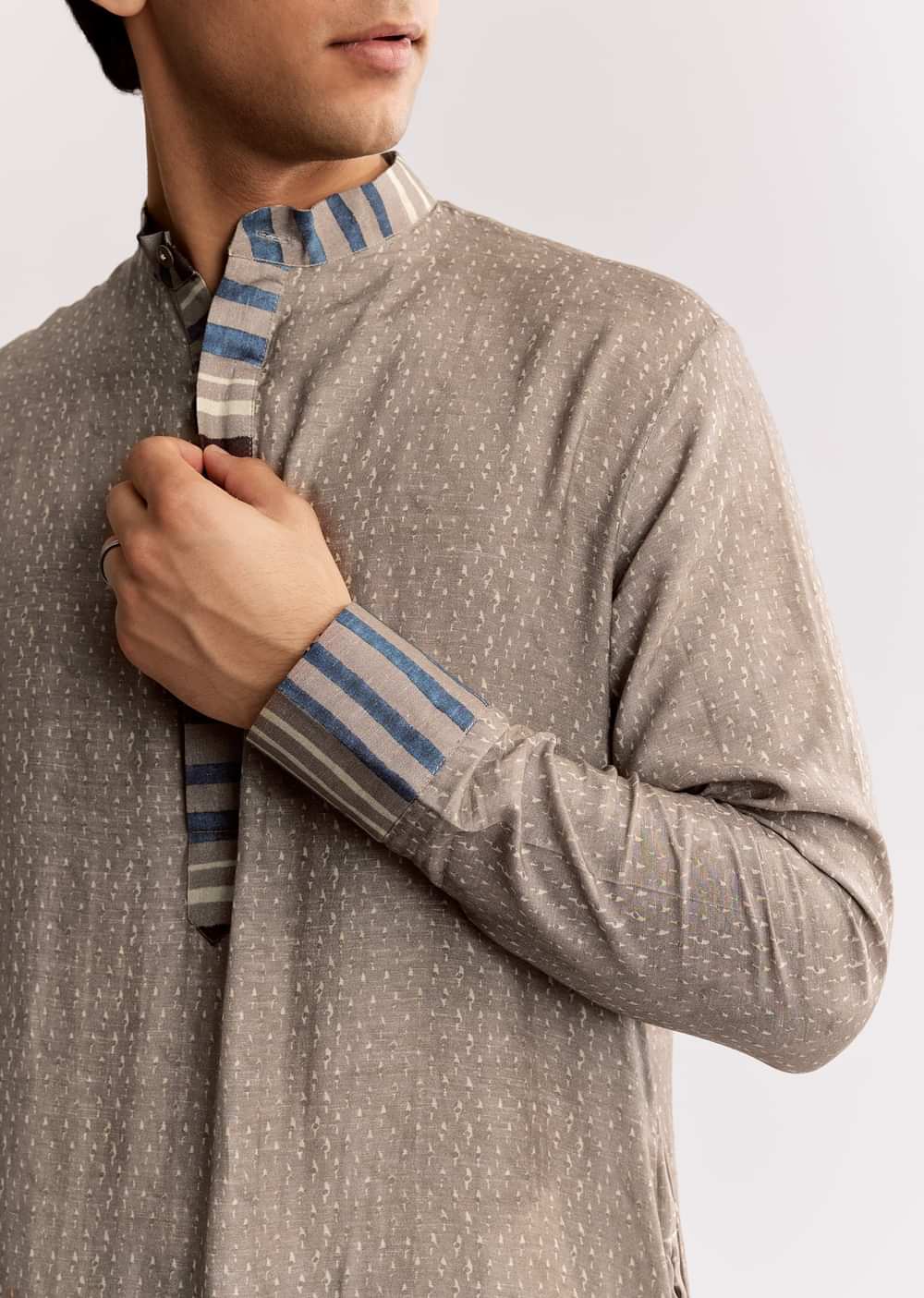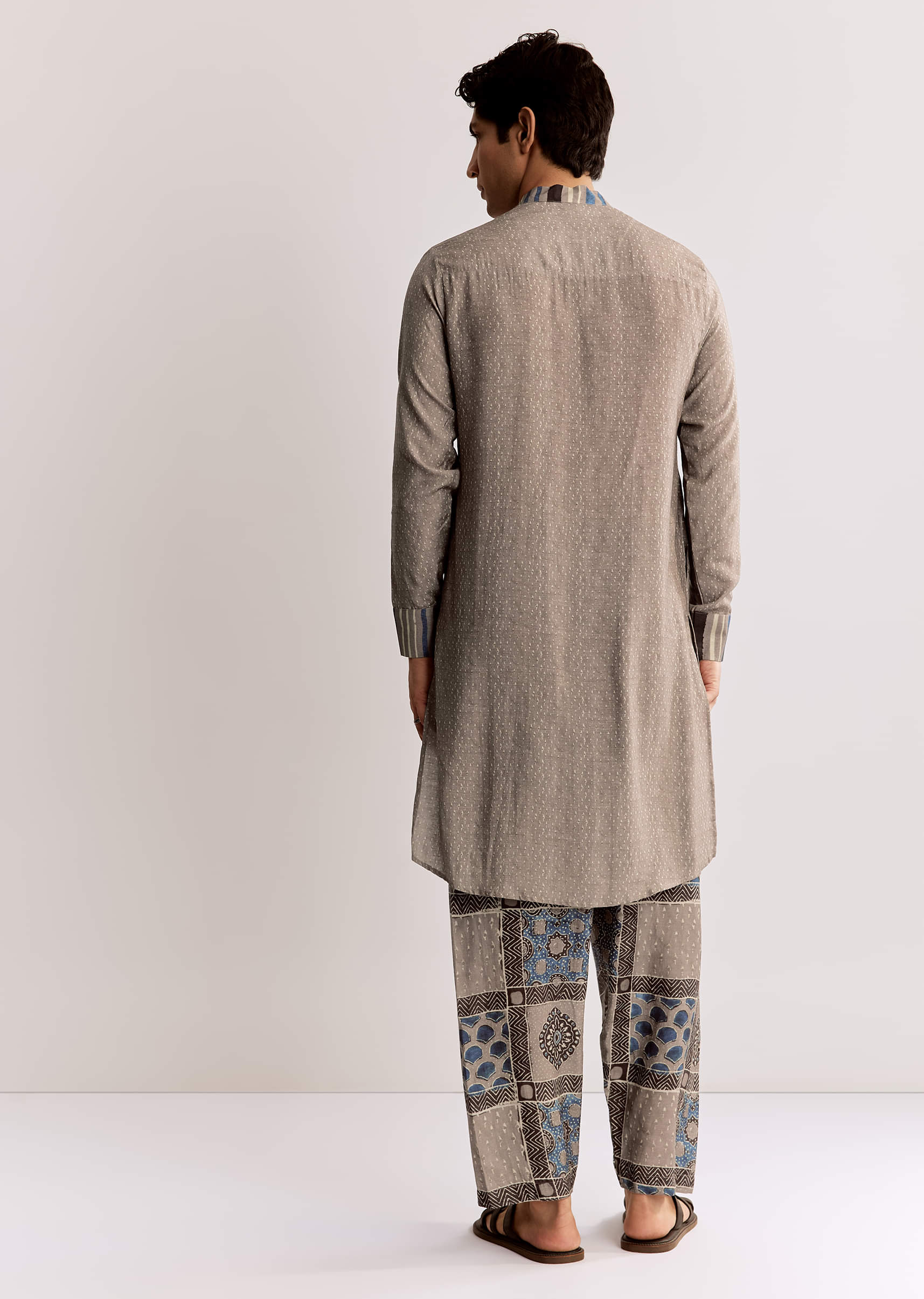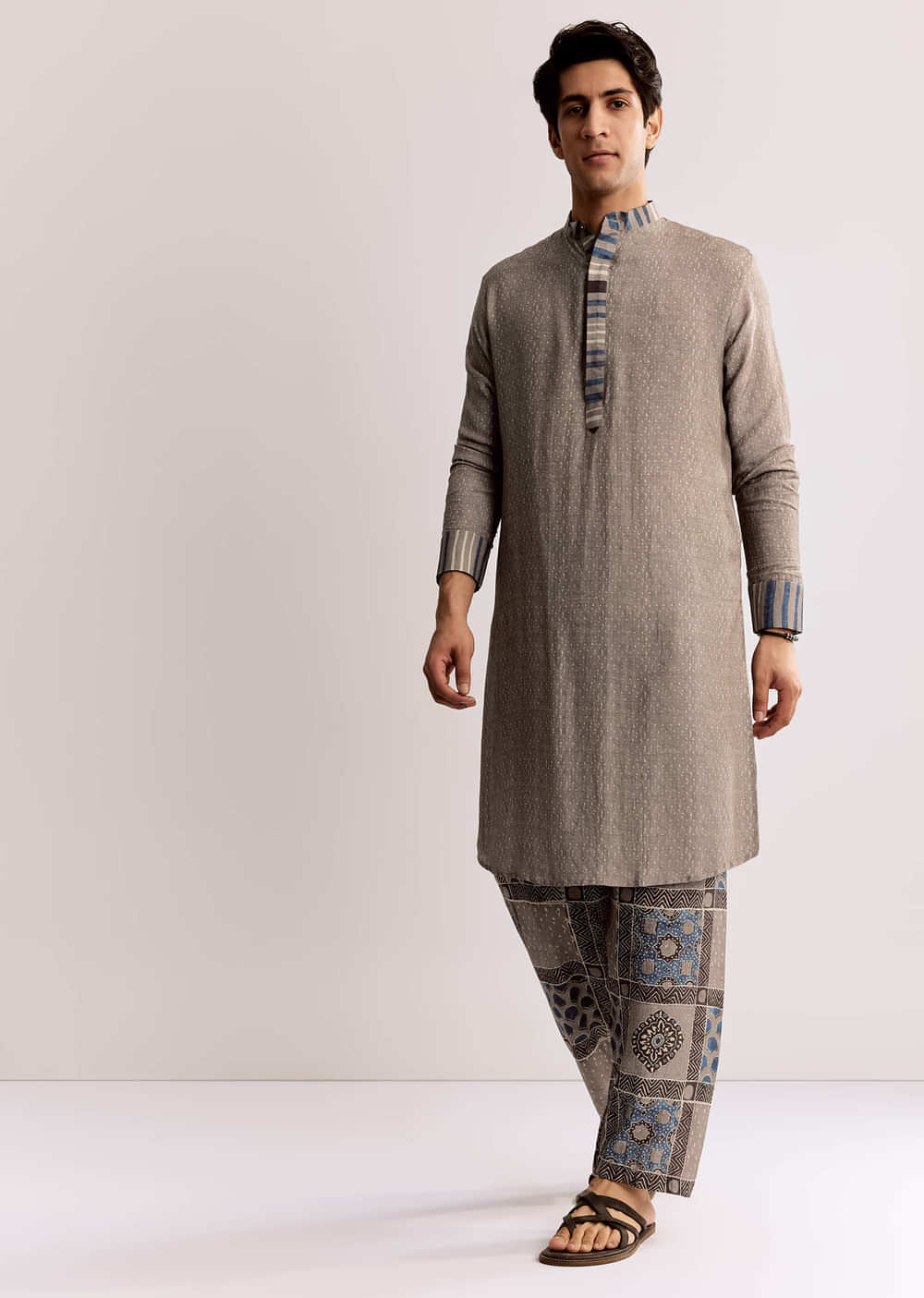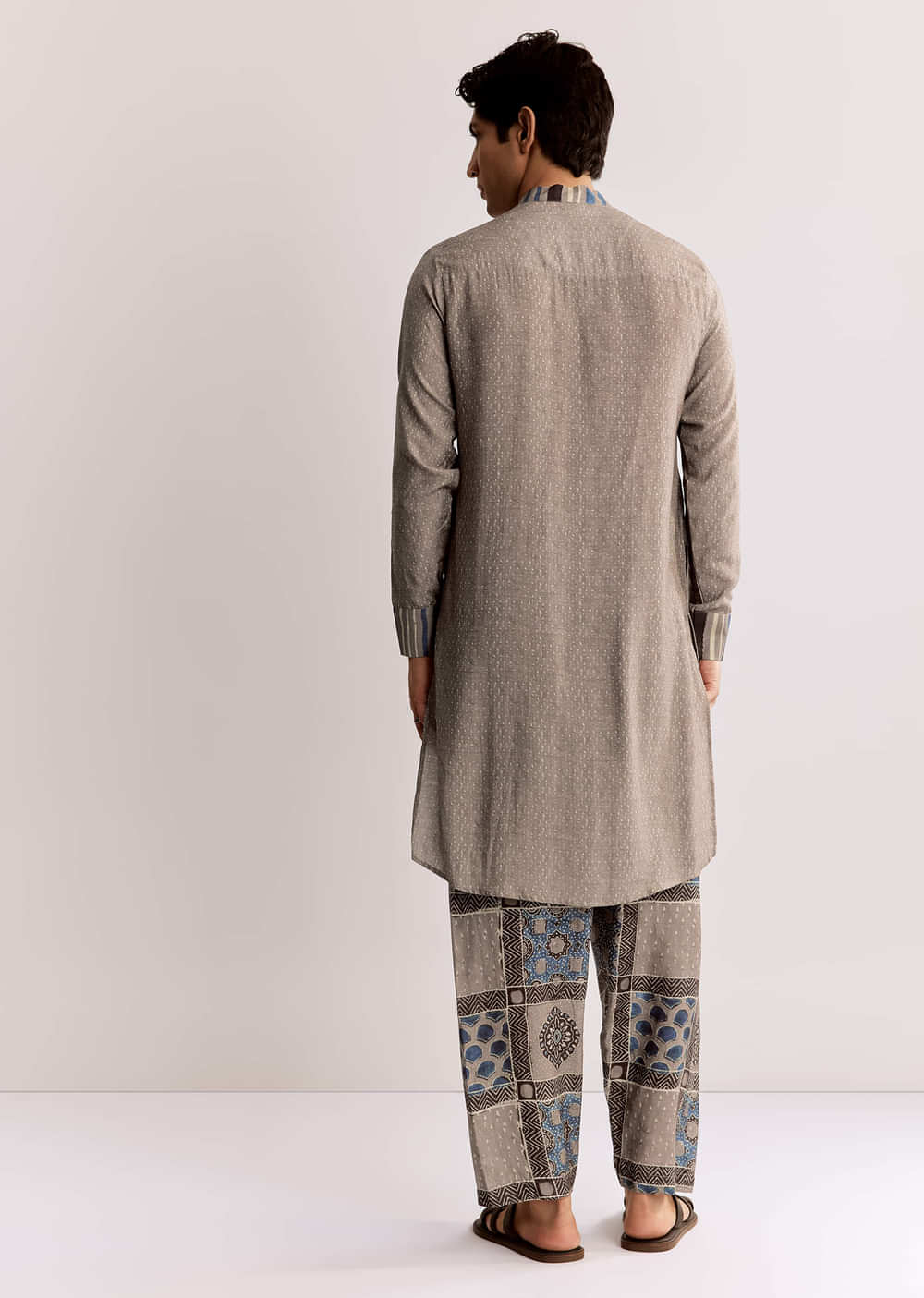 Understated Elegance Meets Ethnic Craft In This Grey Linen Kurta Adorned In Ajrakh Motifs Crafted For Cultural Poise And Comfort.Awarded As The Most Trusted Brand We'Re Delivering Styles You Love Just As Promised.