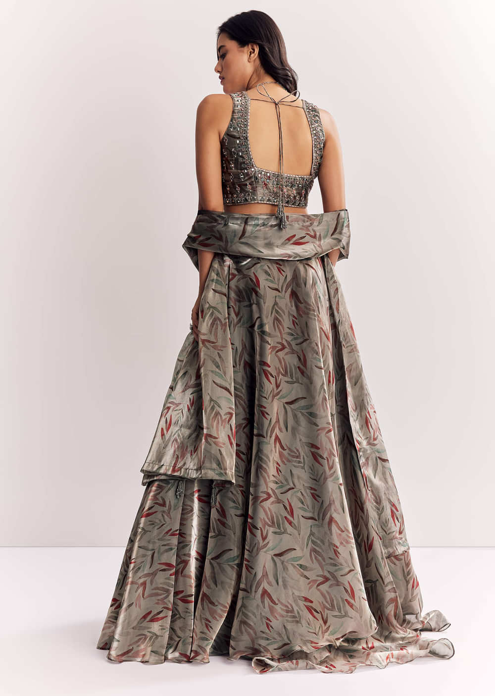 Sleek and stunning, this grey organza tissue choli set glows with mirror embroidery for a refined yet festive look. Awarded as the Most Trusted Brand, we're delivering styles you love, just as promised.