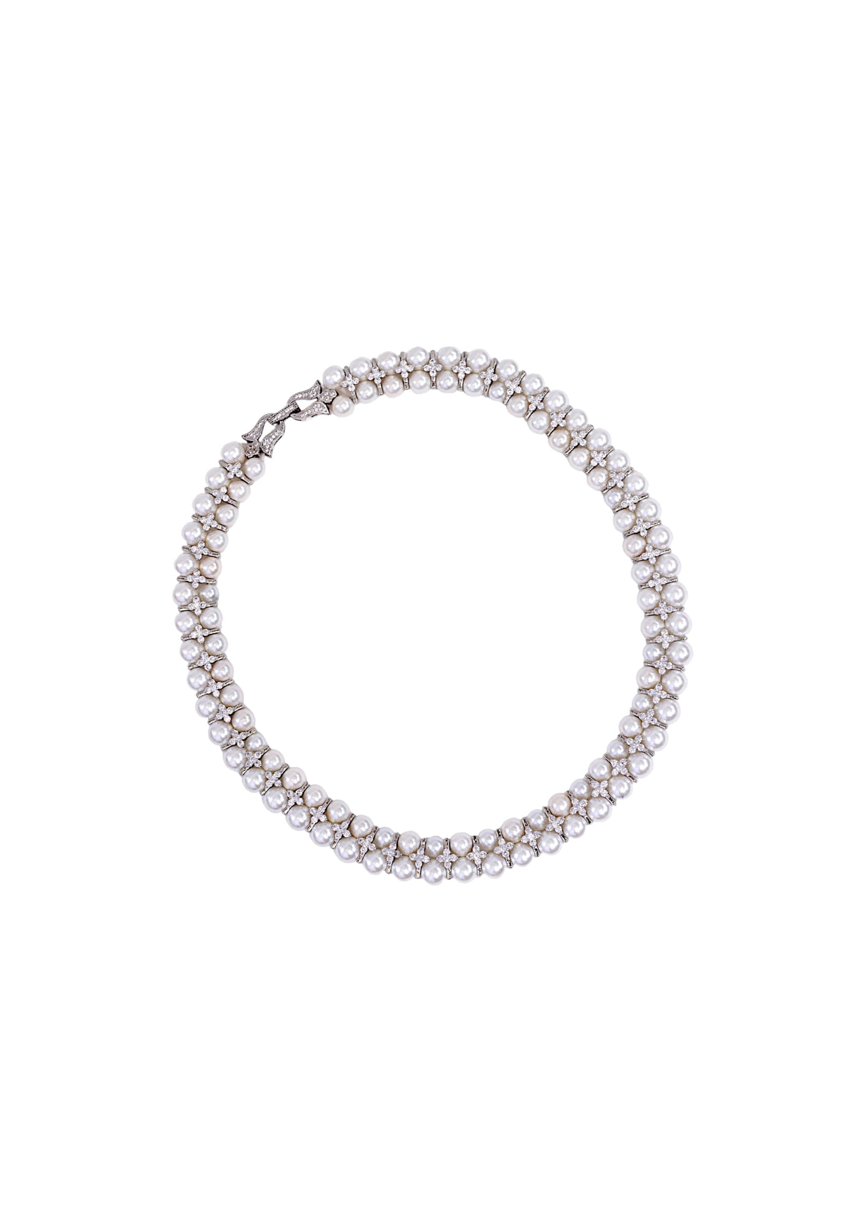 A grey pearl layered necklace featuring multiple strands of lustrous pearls and elegant detailing, exuding contemporary sophistication. Perfect for adding a refined touch to bridal, festive, or ethnic ensembles. Awarded... More Product Details