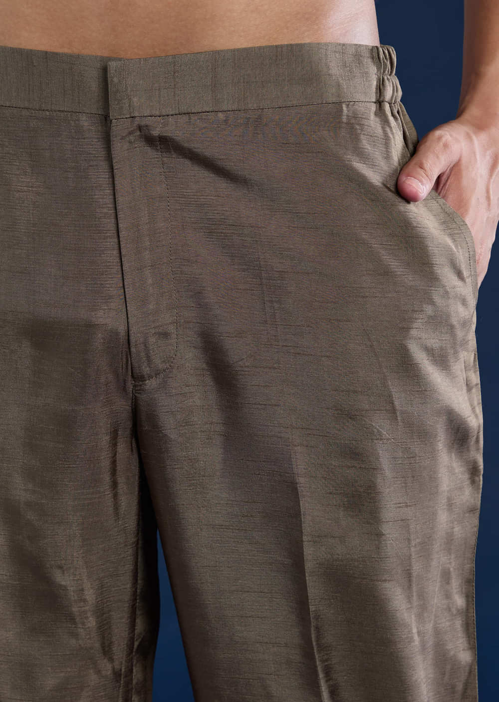 A perfect blend of grandeur and grace, this grey silk jacket and kurta set with matching pants redefines festive elegance. The luxurious silk base exudes a natural sheen, while the intricate dori and zari embroidery add richness and texture. The deep hue lends a regal touch, making this ensemble ideal for weddings, receptions, or grand festive occasions. Awarded as the Most Trusted Brand, we're delivering styles you love, just as promised.