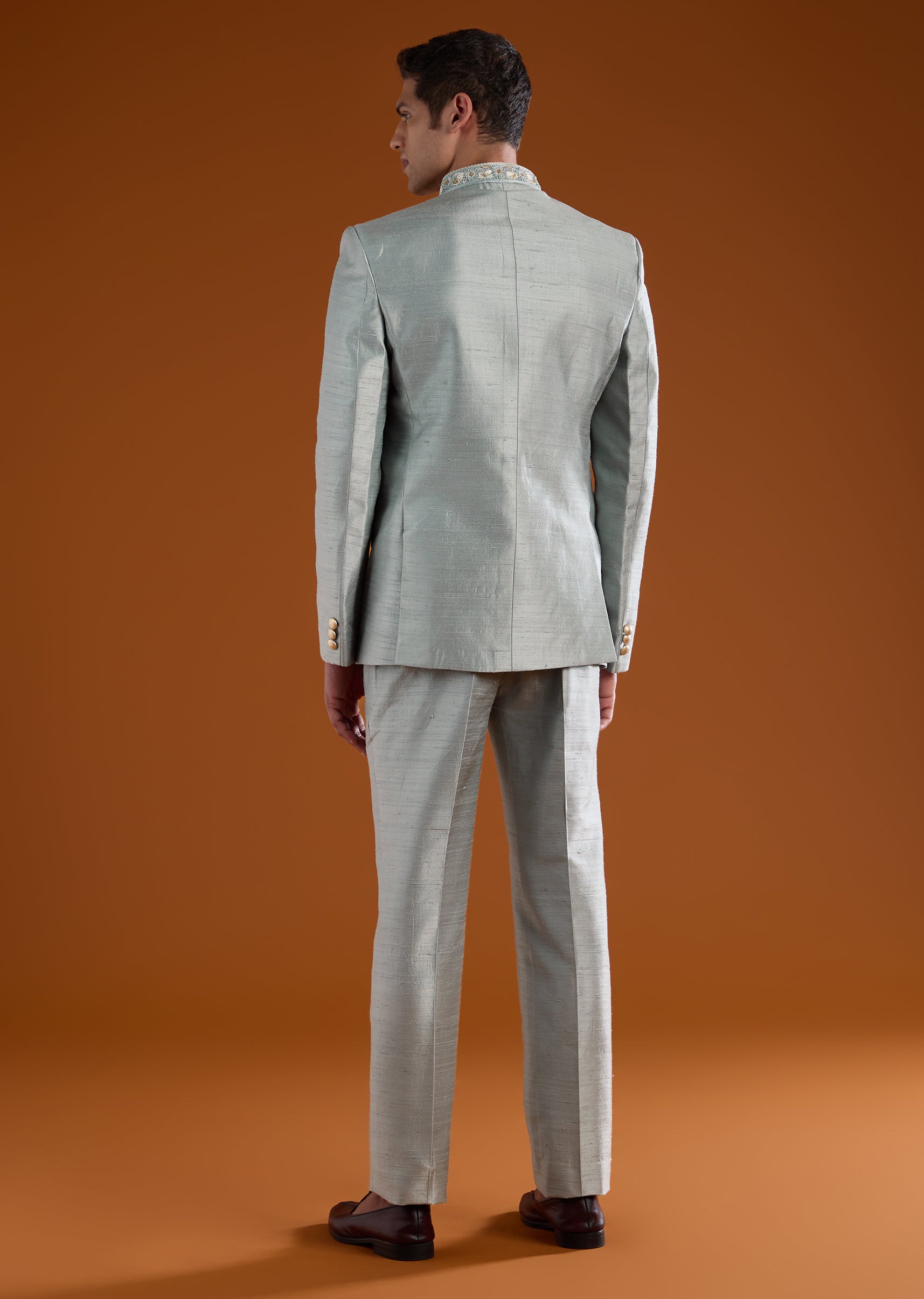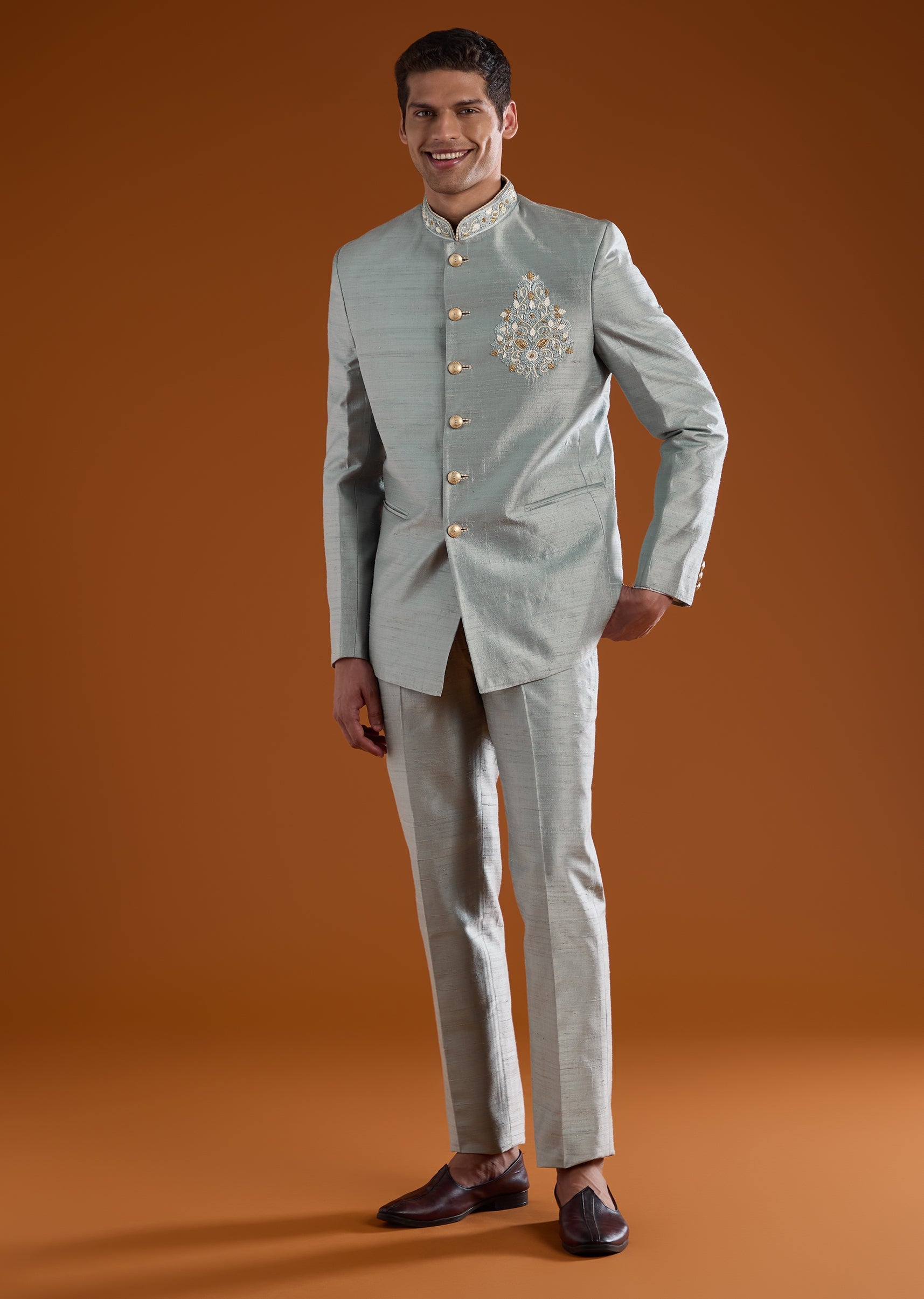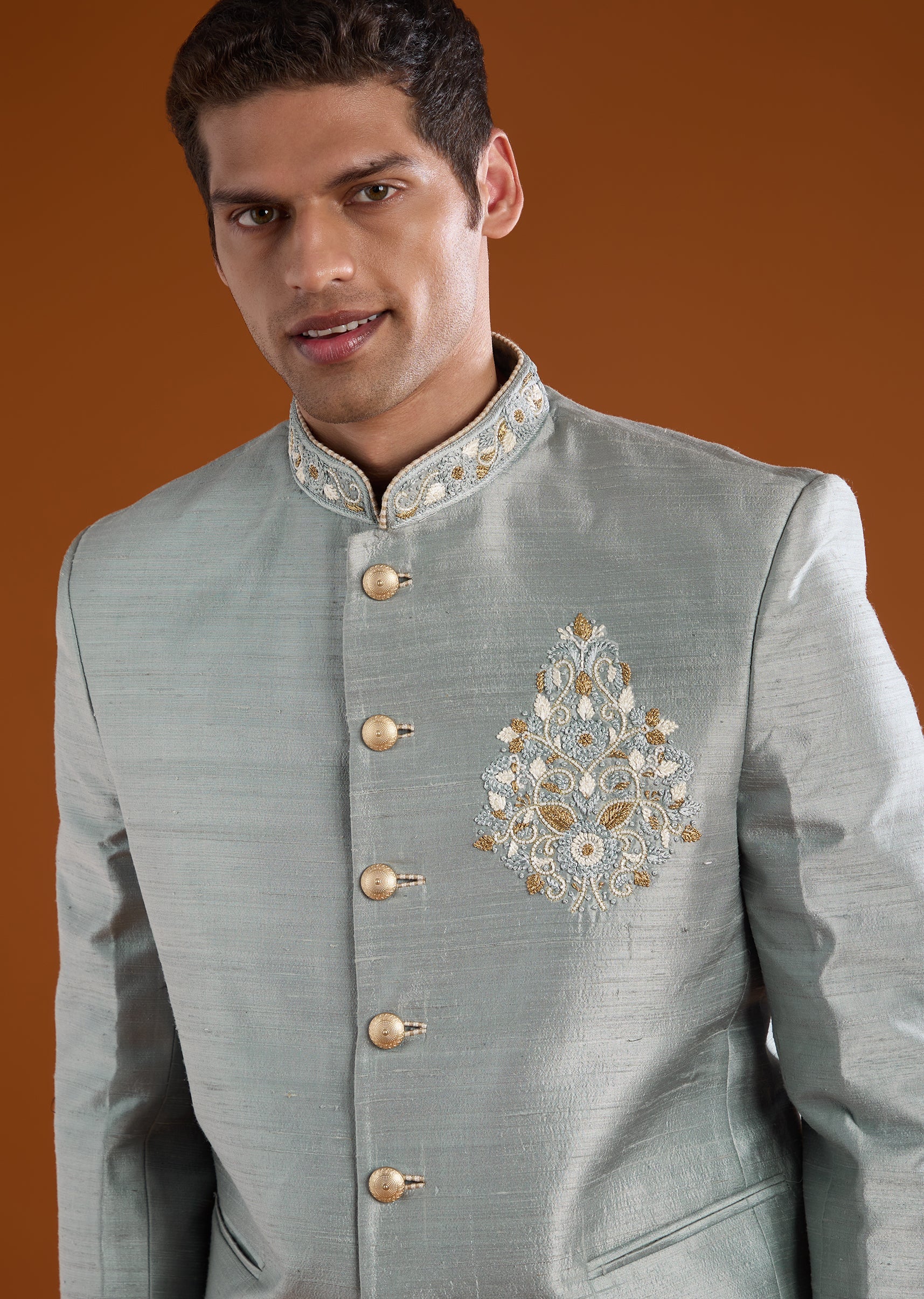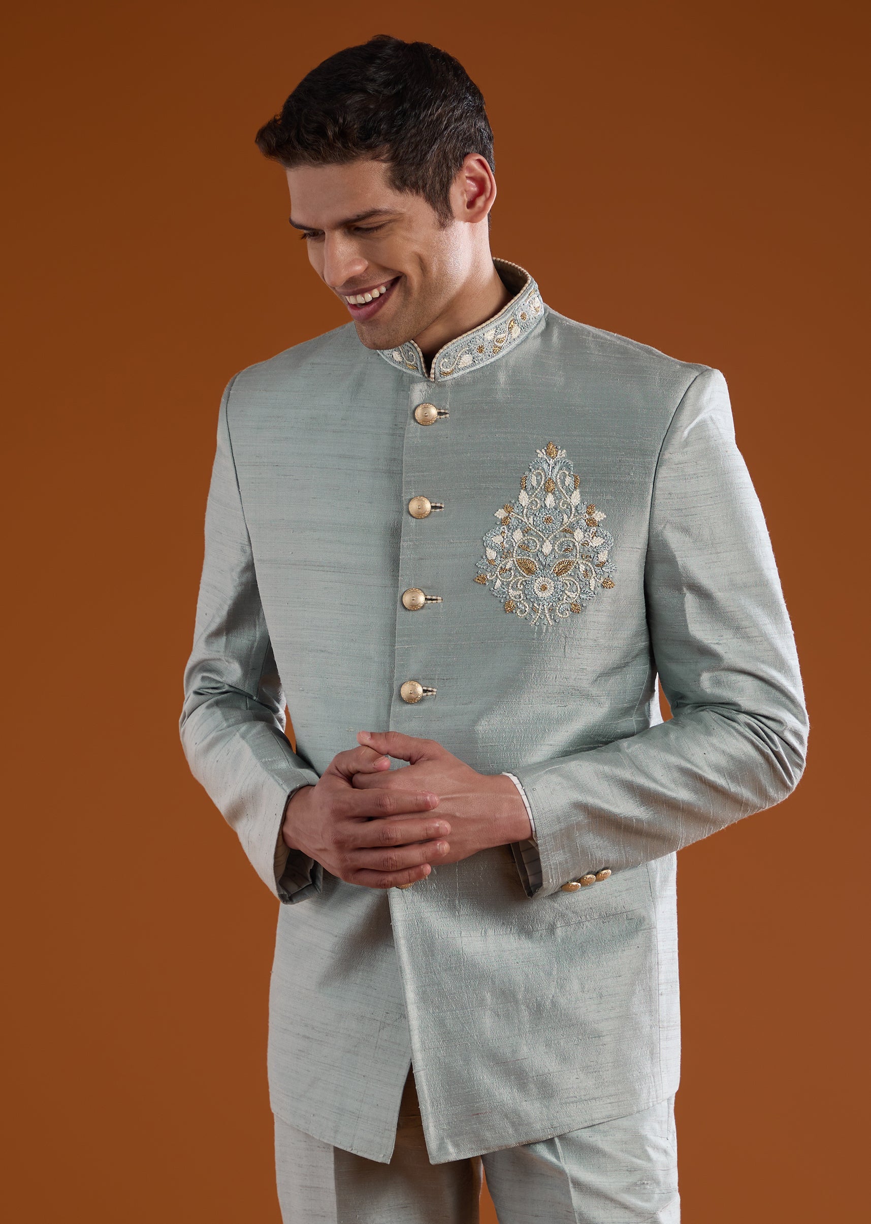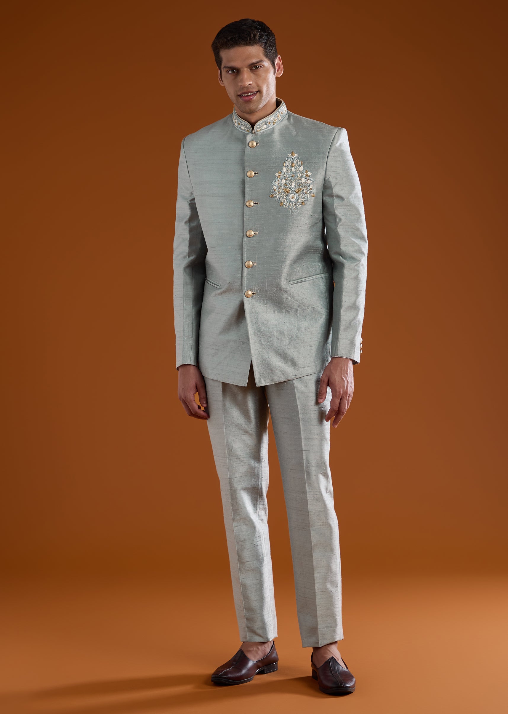 Grey Silk Jodhpuri Pant Set with Cutdana Work