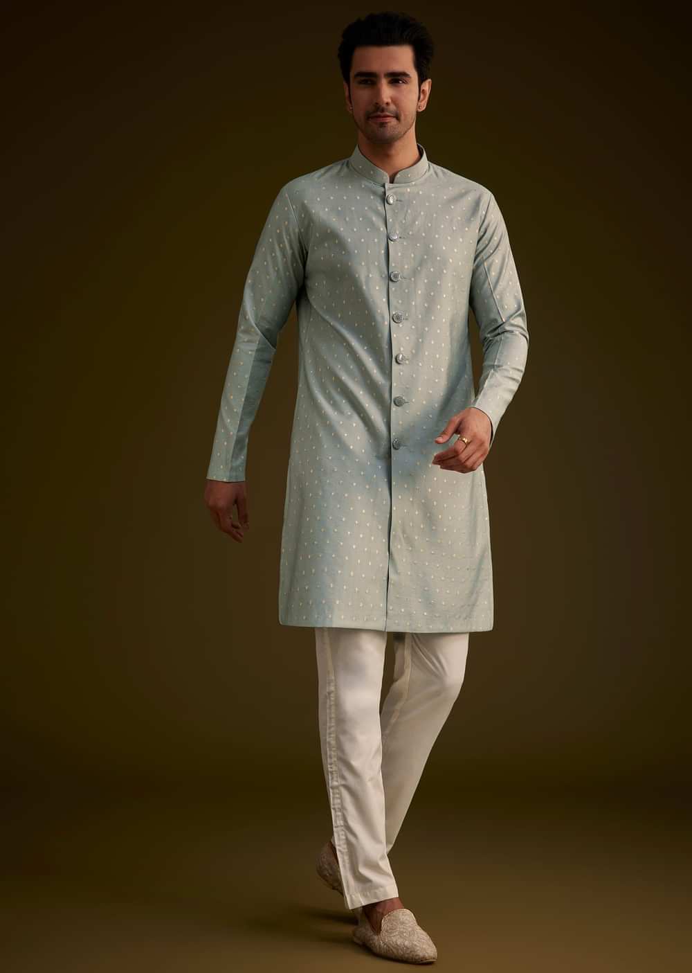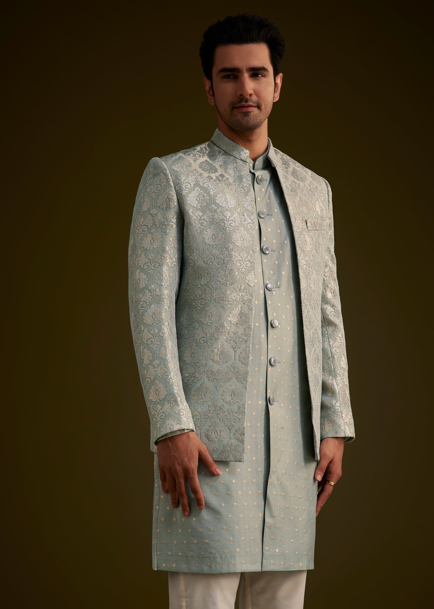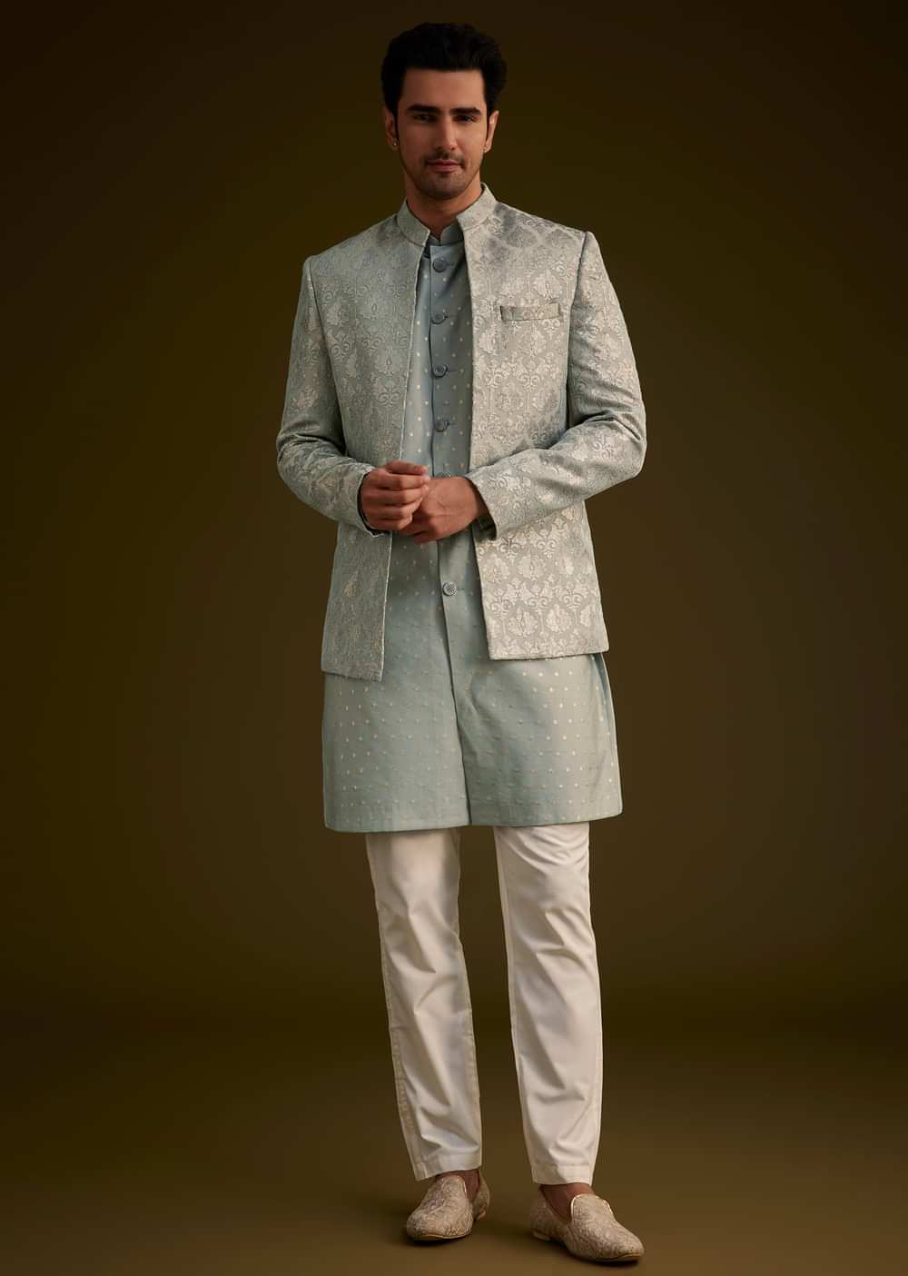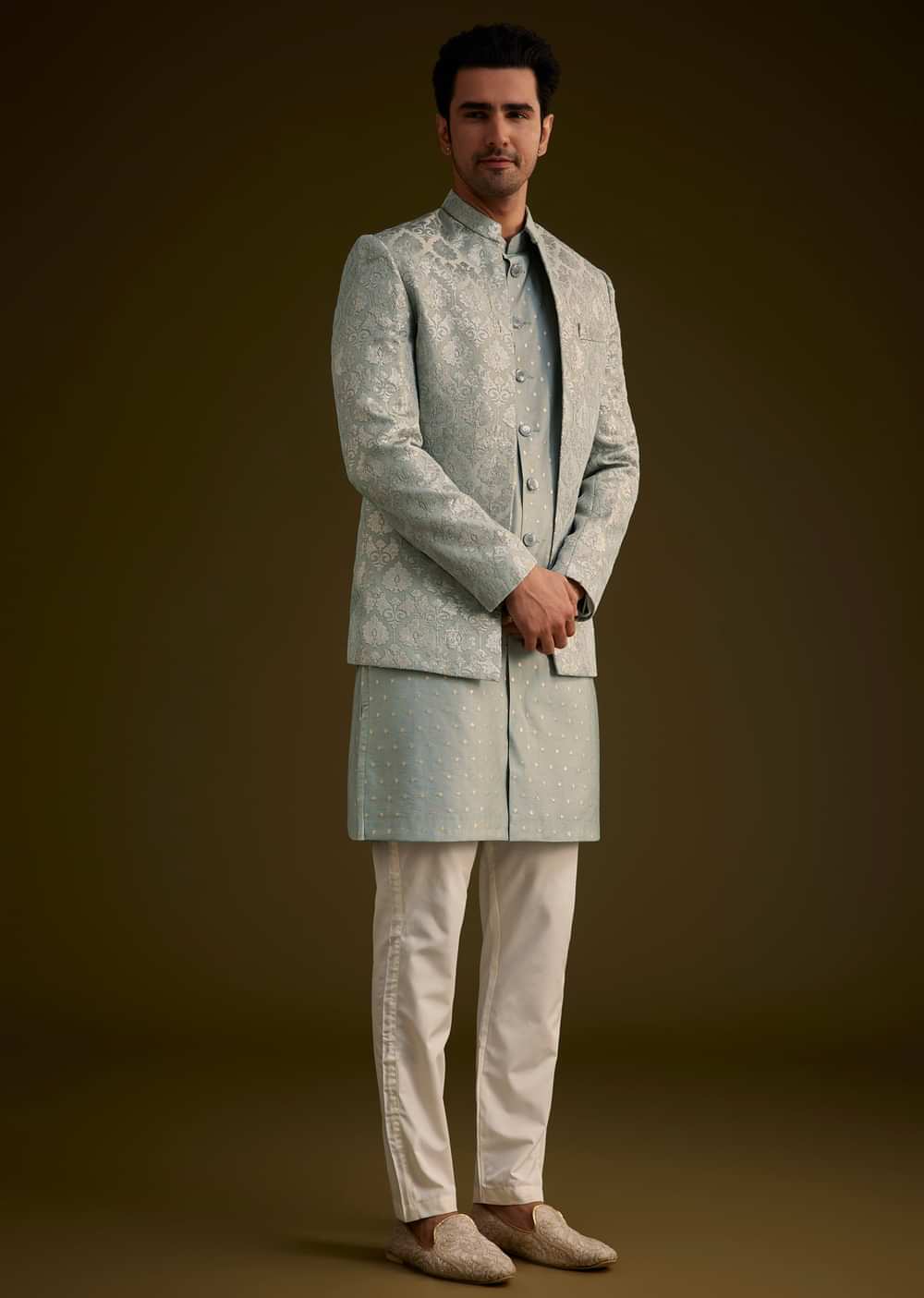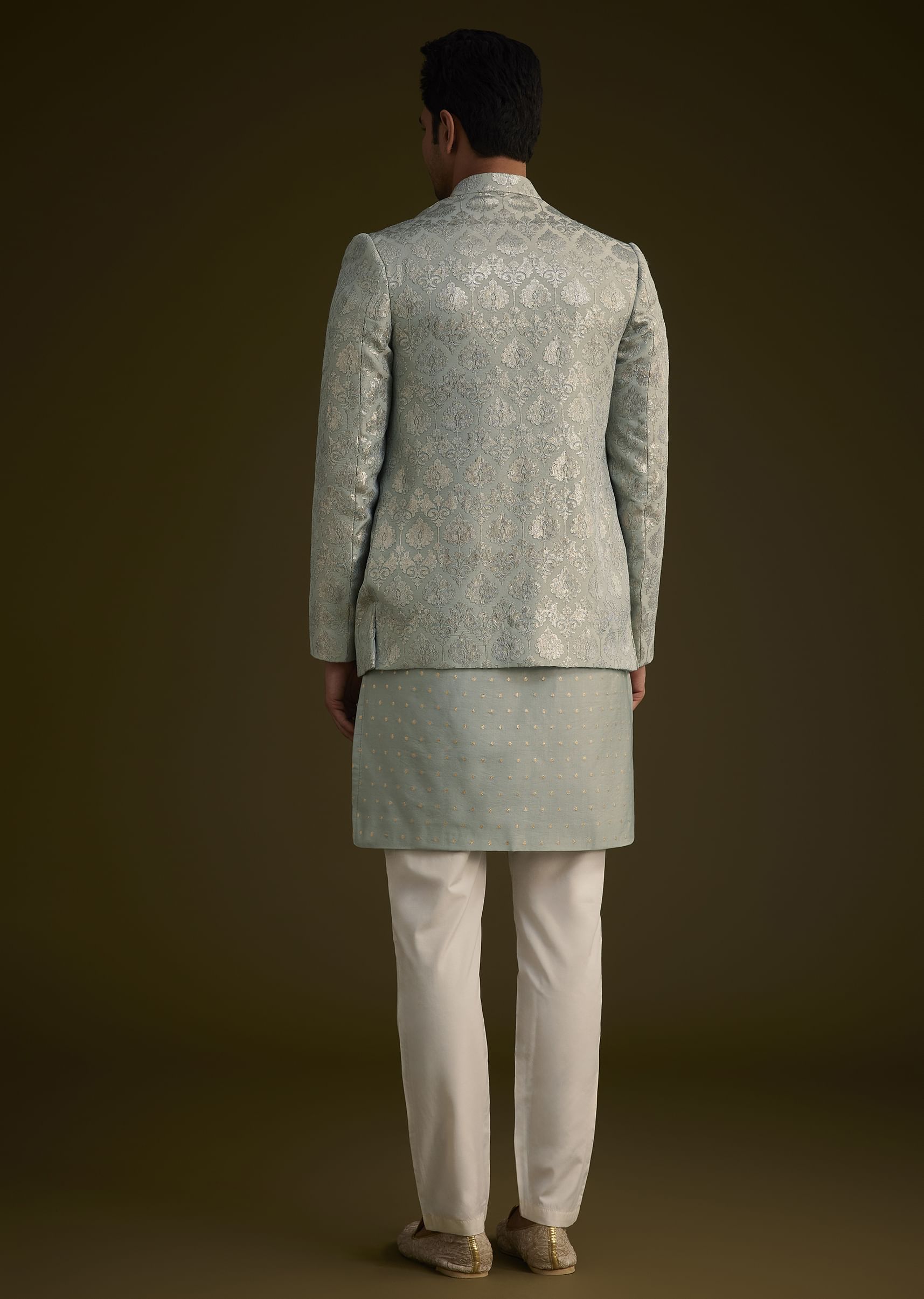 Grey Silk Jodhpuri Suit Featuring Foil Print