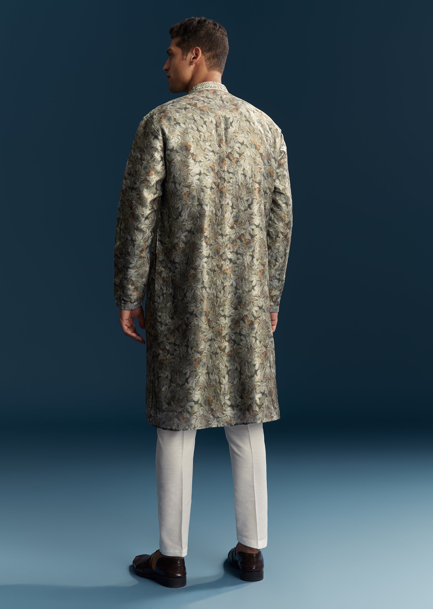 Elegant and subtle, this grey men’s kurta set in soft pastels is perfect for festive occasions and casual celebrations. Crafted in smooth silk fabric, it features intricate thread work paired... More Product Details