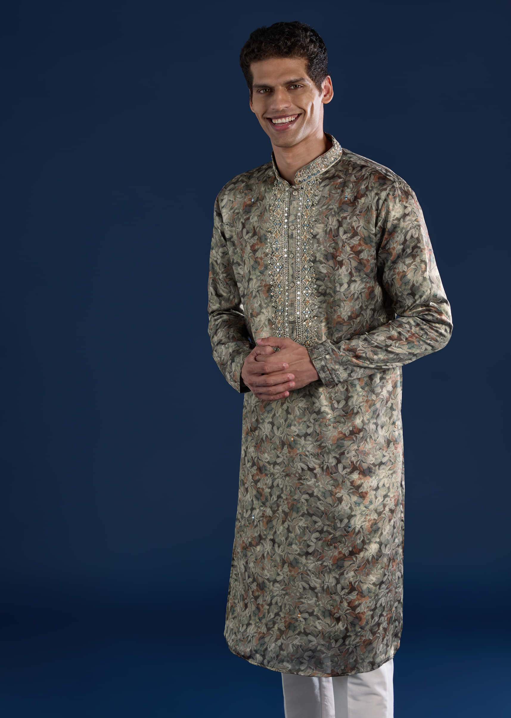 Grey Silk Mirror Work Mens Kurta and Pant Set