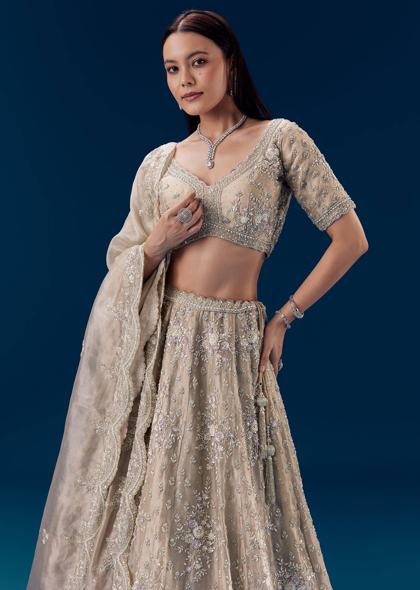 Grey Silk Sequin Embellished Bridal Lehenga Set