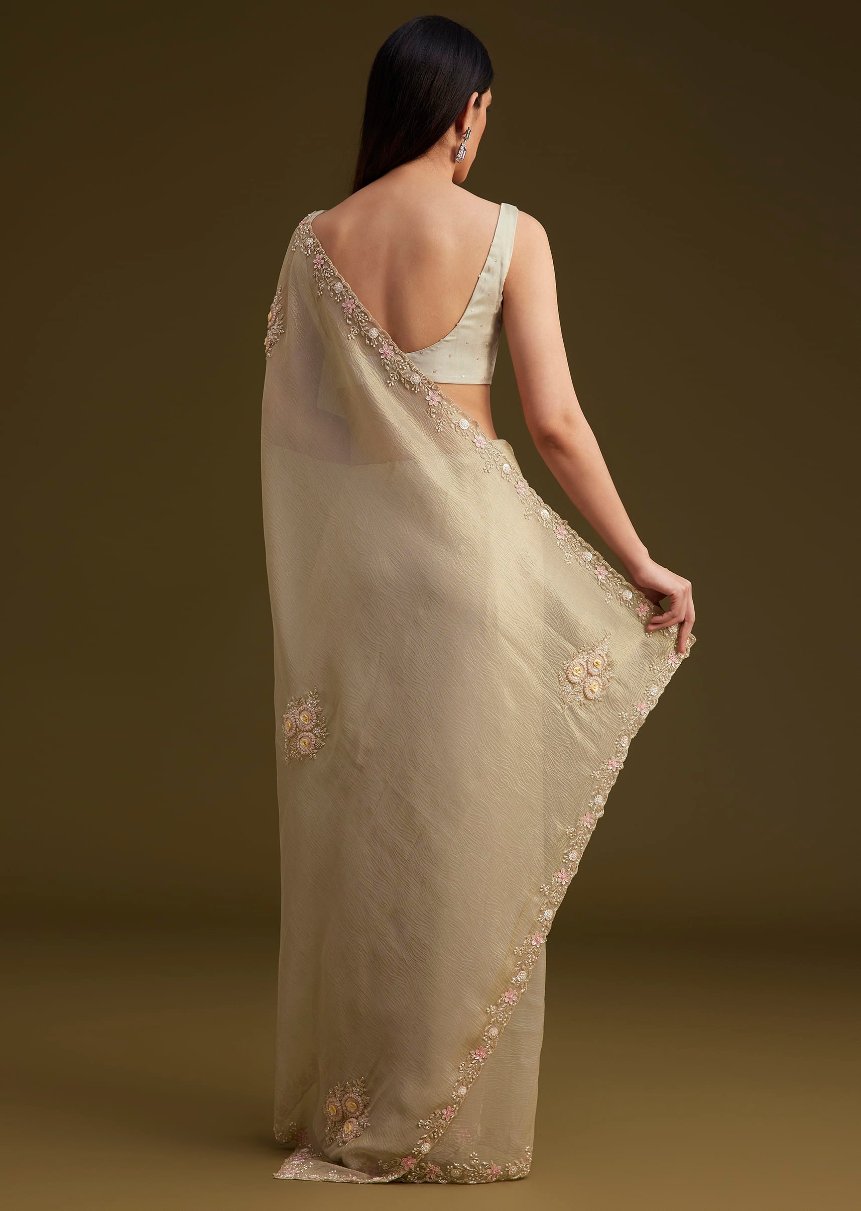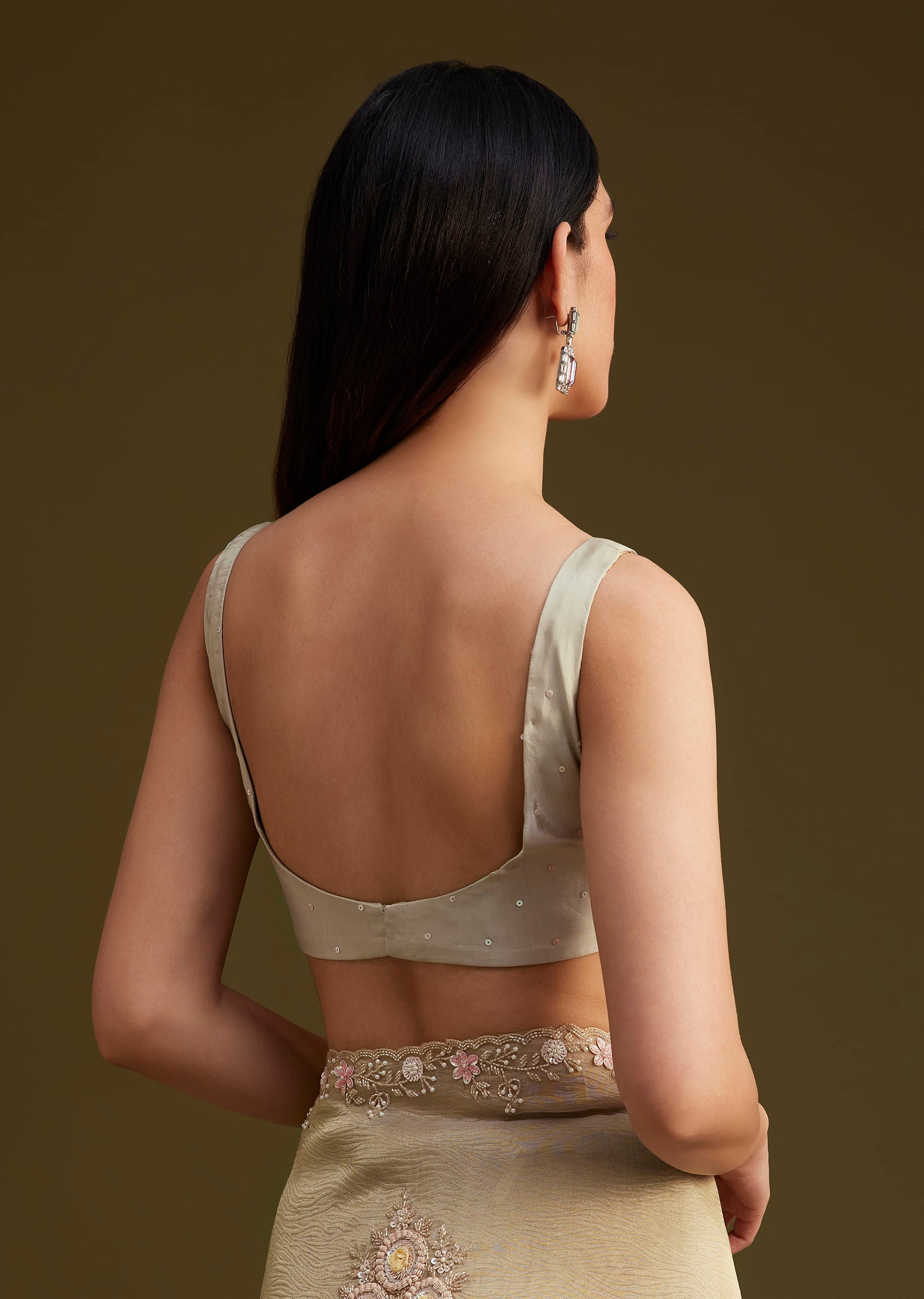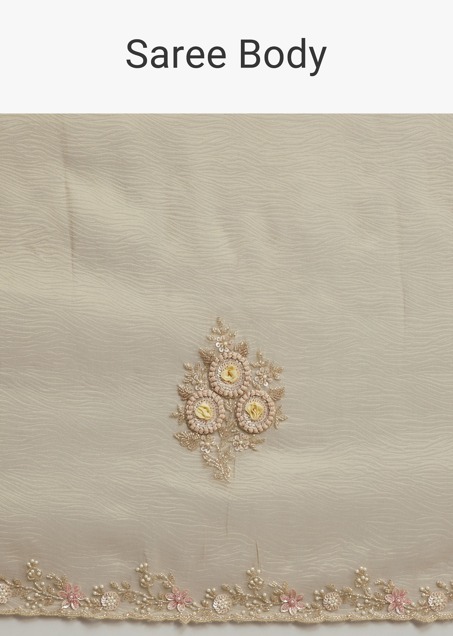 Gracefully drape yourself in this grey tissue saree, beautifully embroidered with sequins and cutdana that add a touch of shimmer and elegance to your look. The intricate embroidery on the... More Product Details