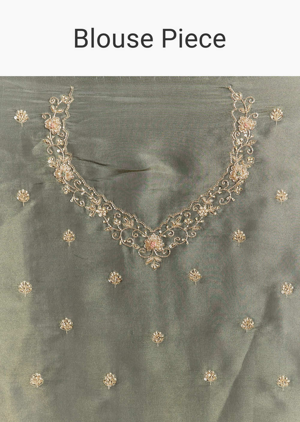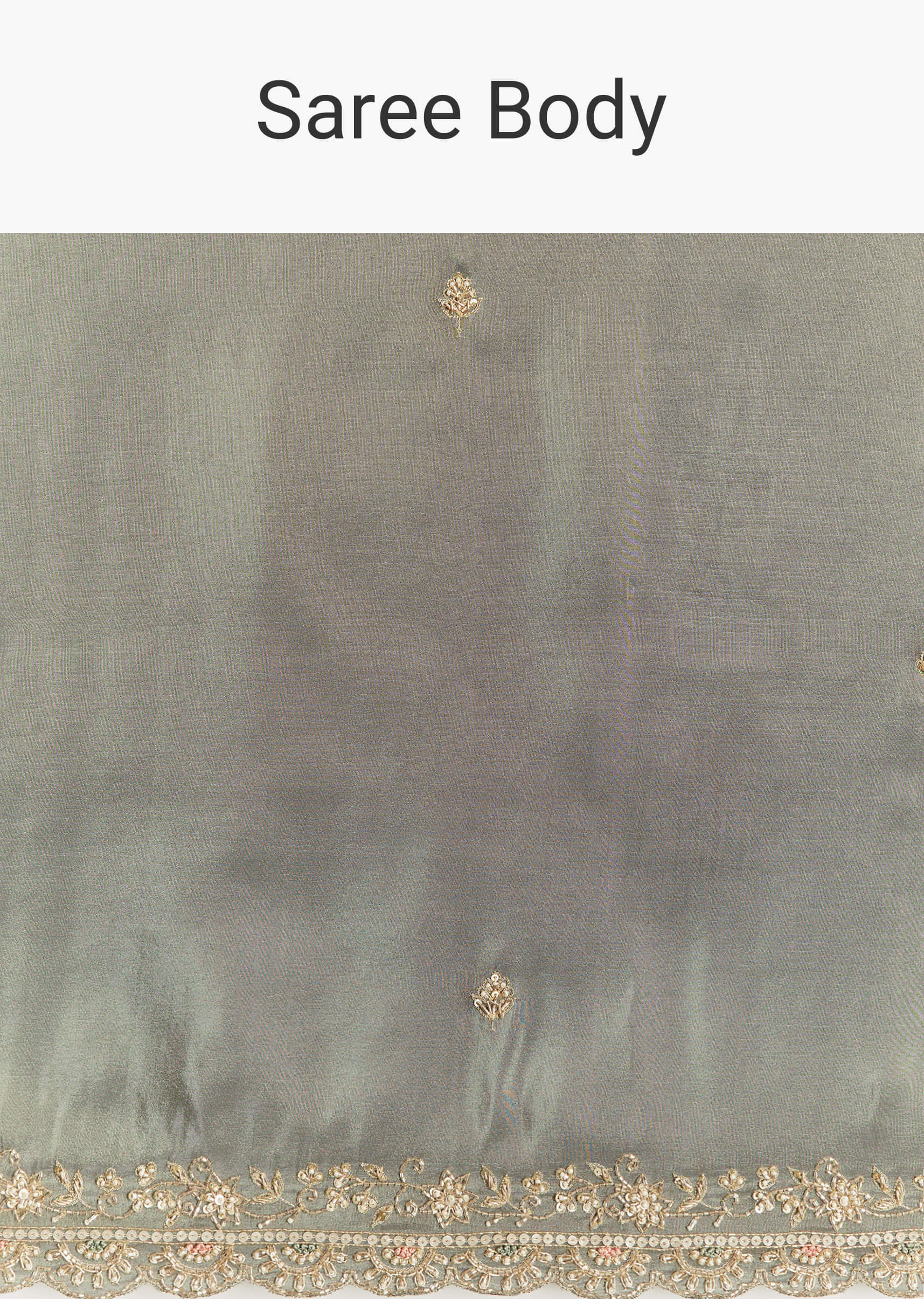 Greyish Blue Tissue Saree With French Knot Resham Embroidery