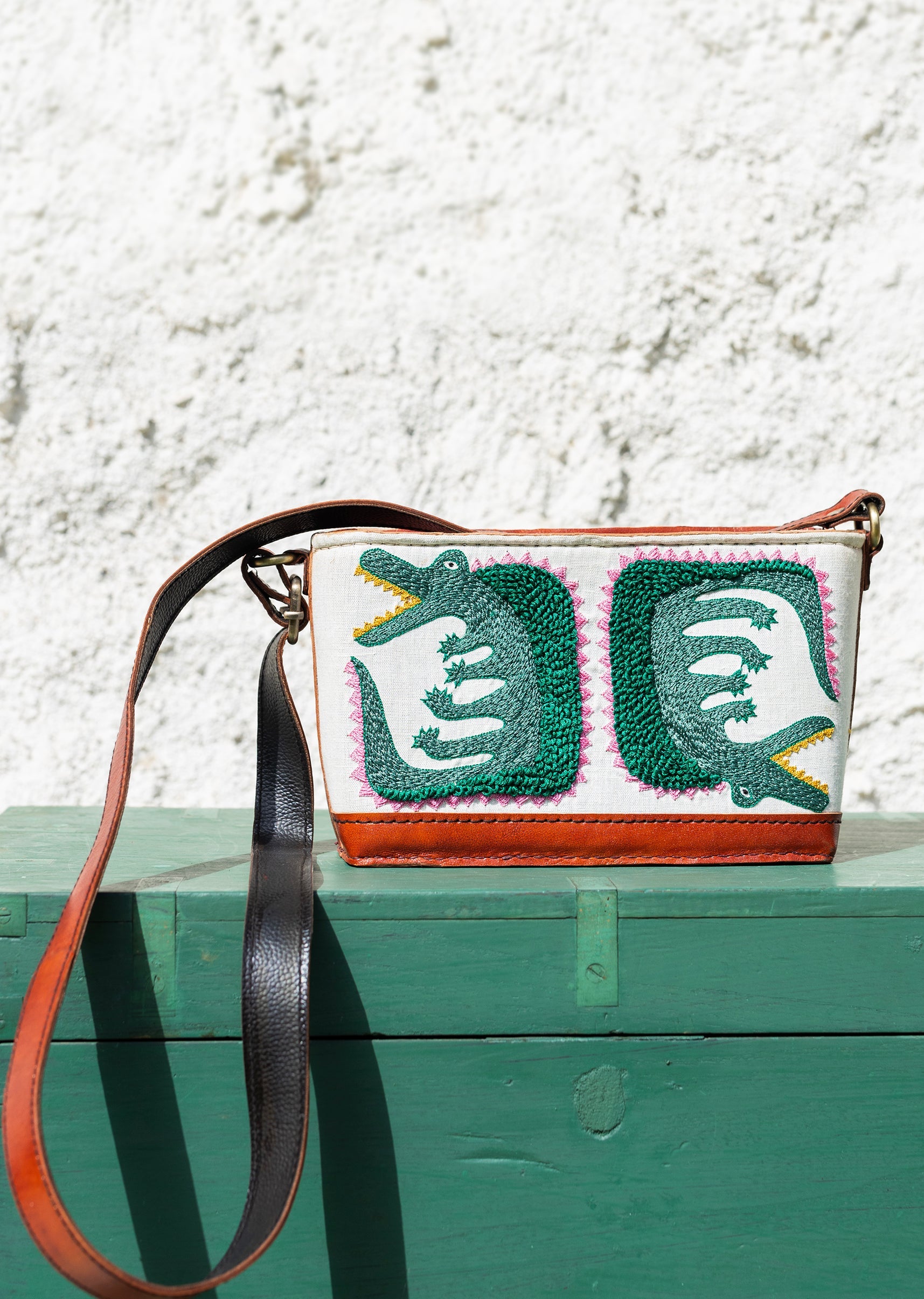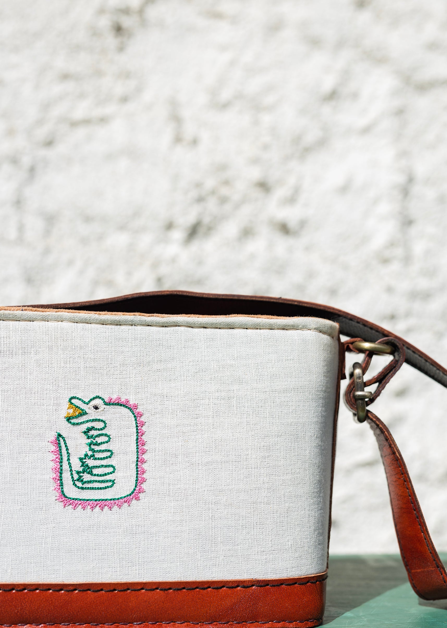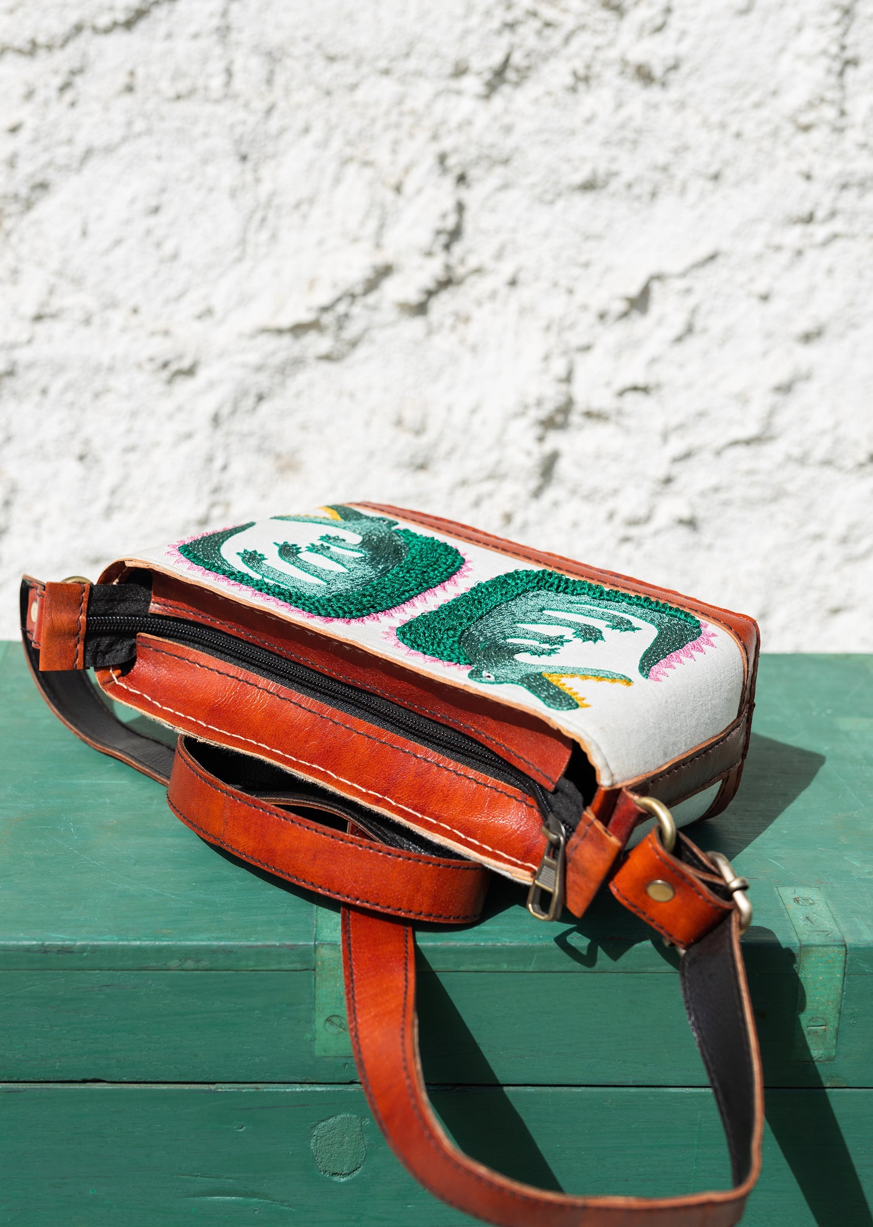 A unique leather bag featuring one-of-a-kind hand embroidery, thoughtfully designed by our team and intricately crafted by skilled artisans. The front and back showcase different embroidered motifs, adding to its... More Product Details