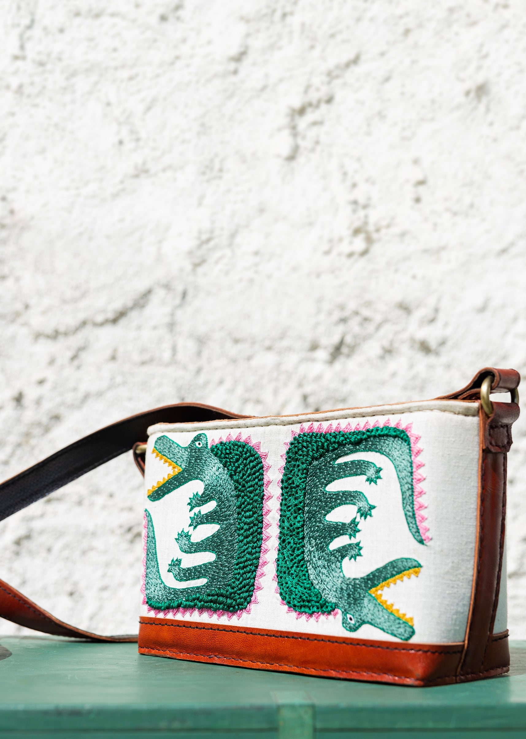 A unique leather bag featuring one-of-a-kind hand embroidery, thoughtfully designed by our team and intricately crafted by skilled artisans. The front and back showcase different embroidered motifs, adding to its charm. It comes with a top zipper closure, a spacious main compartment, one inner zipper, and pockets on both sides. Lightweight, durable, and easy to carry with an adjustable sling. Awarded as the Most Trusted Brand, we're delivering styles you love, just as promised.
