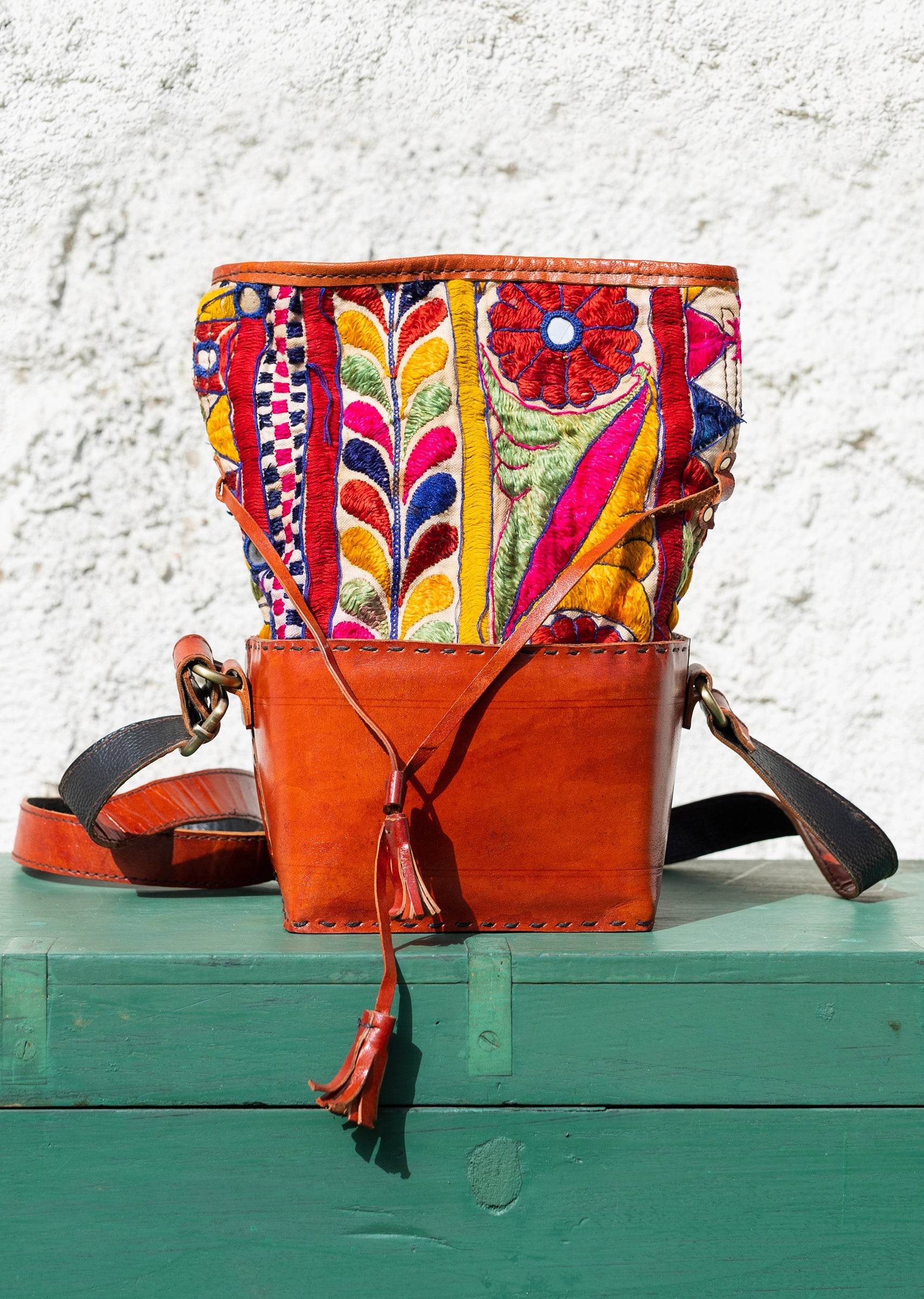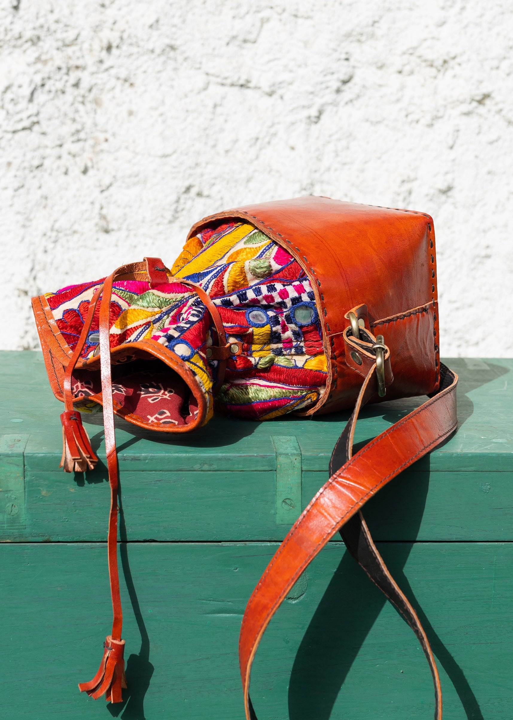 Hand-embroidered and handcrafted leather bags that are completely unique and designed for everyone. Created in a potli/pouch-inspired shape, each piece features colourful Kutchi traditional embroidery on the top — with... More Product Details