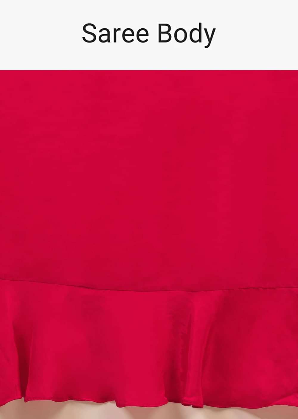 - Hot pink saree in crepe with a ruffle frill on the pallu.